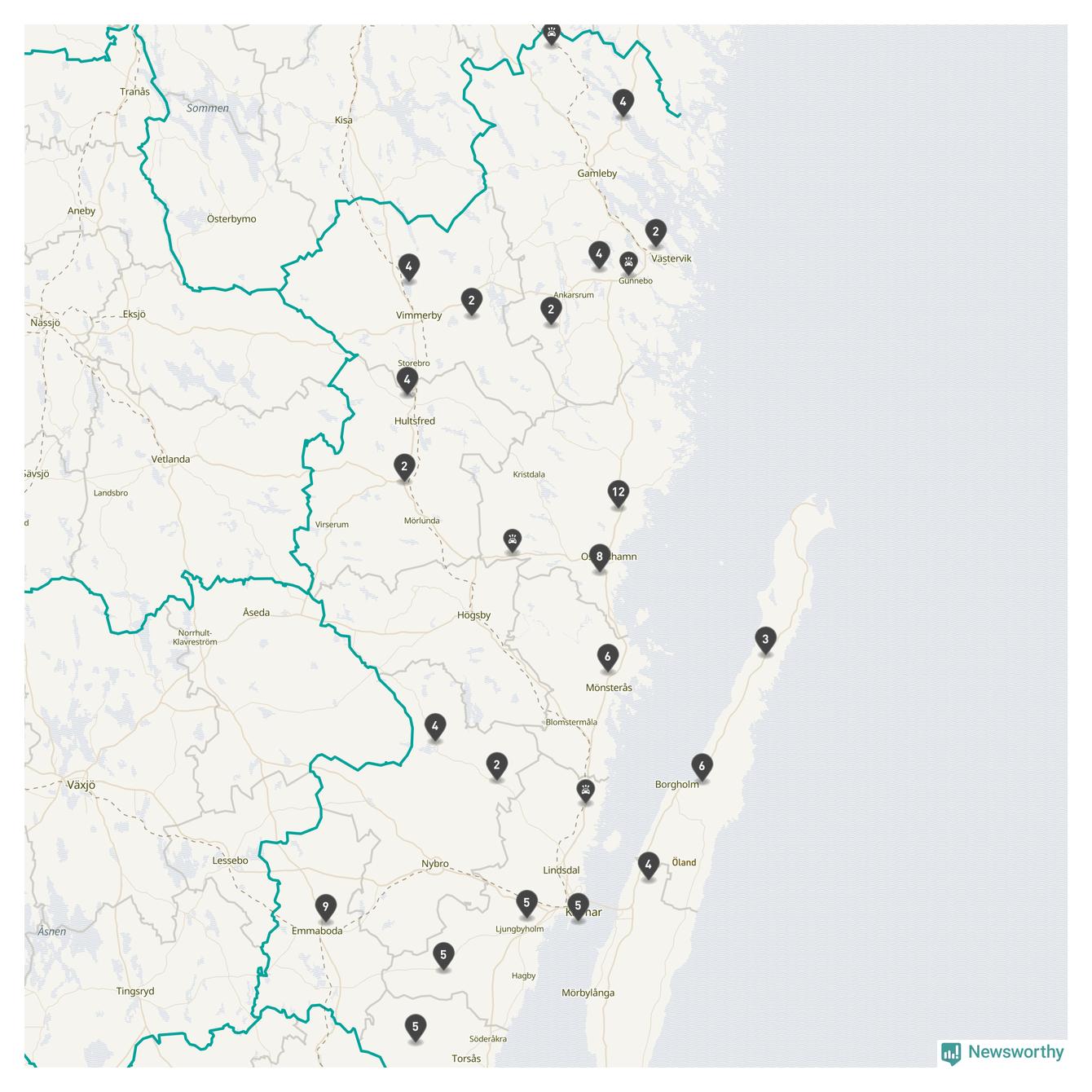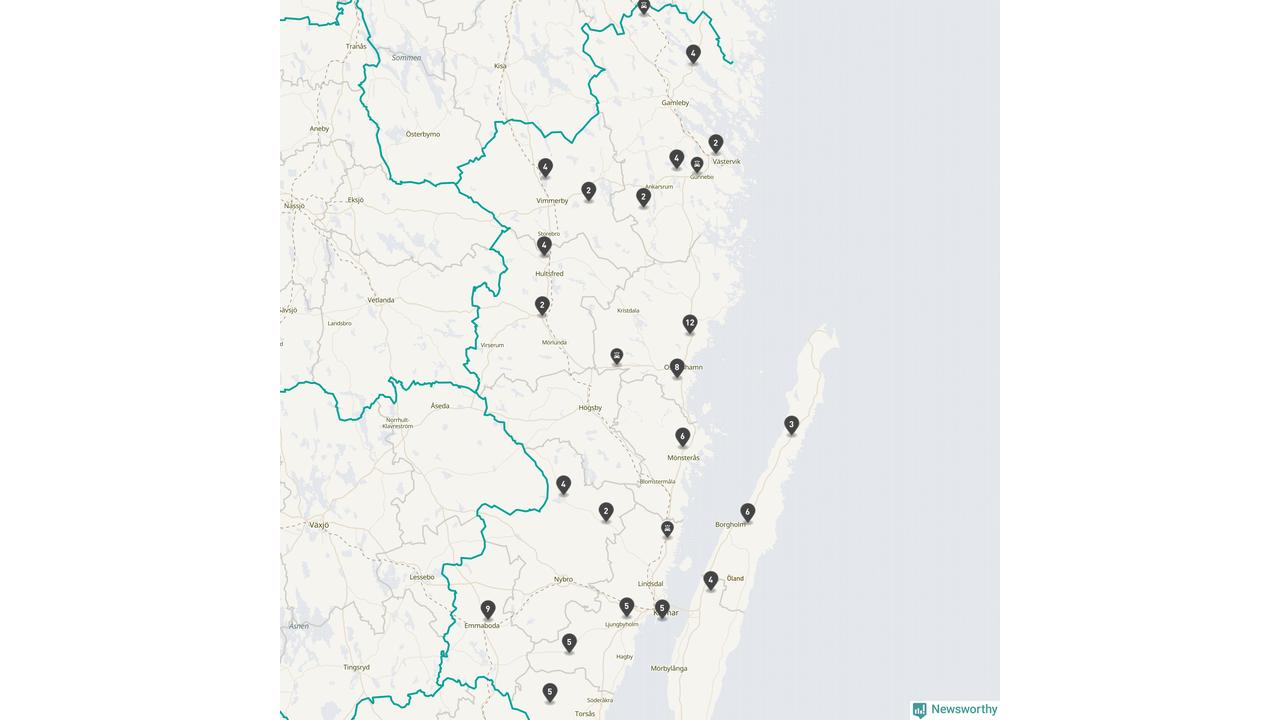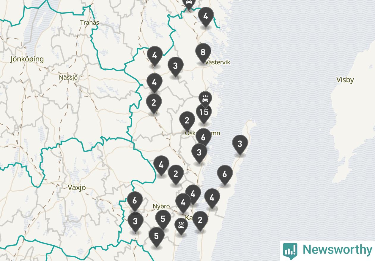 Av förra veckans viltolyckor inträffade 21 längs eller nära E22. Det är också där flest viltolyckor brukat rapporteras det senaste decenniet.