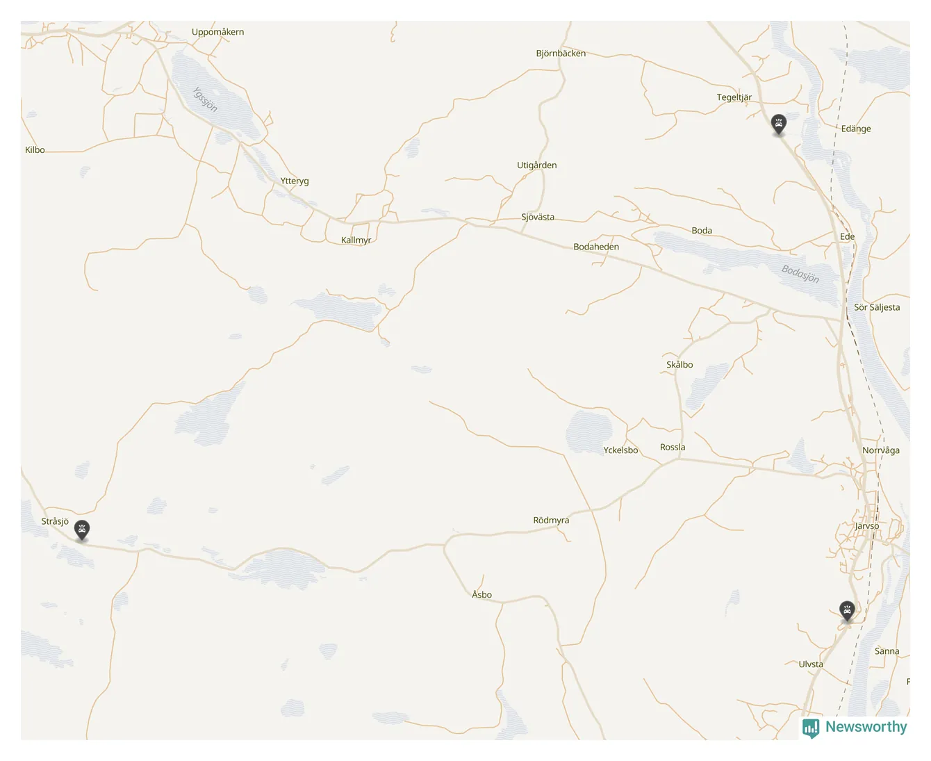 Här inträffade viltolyckorna i Ljusdal förra veckan