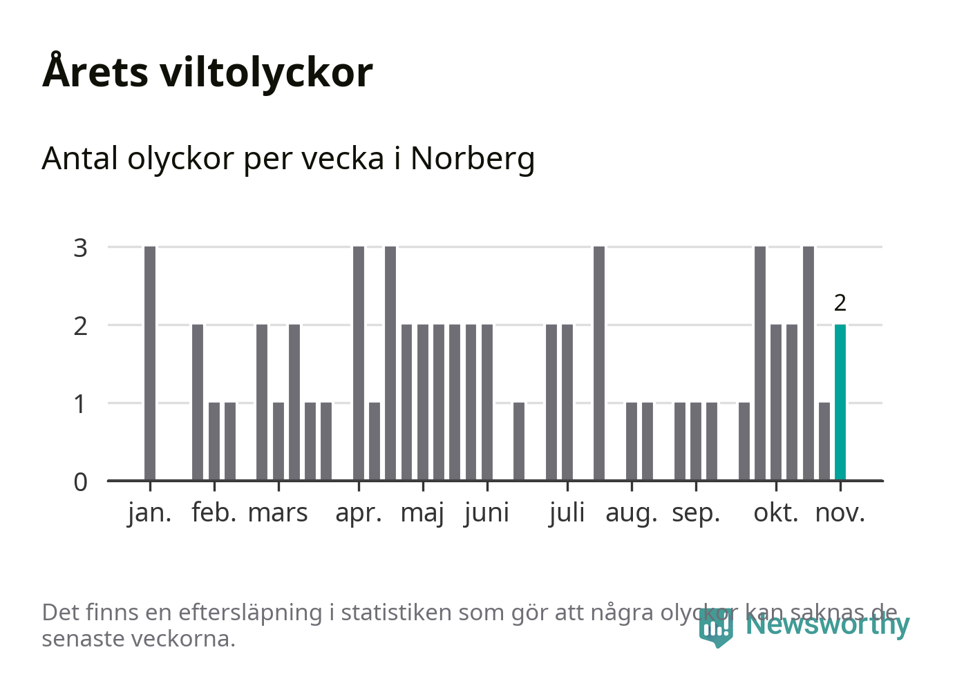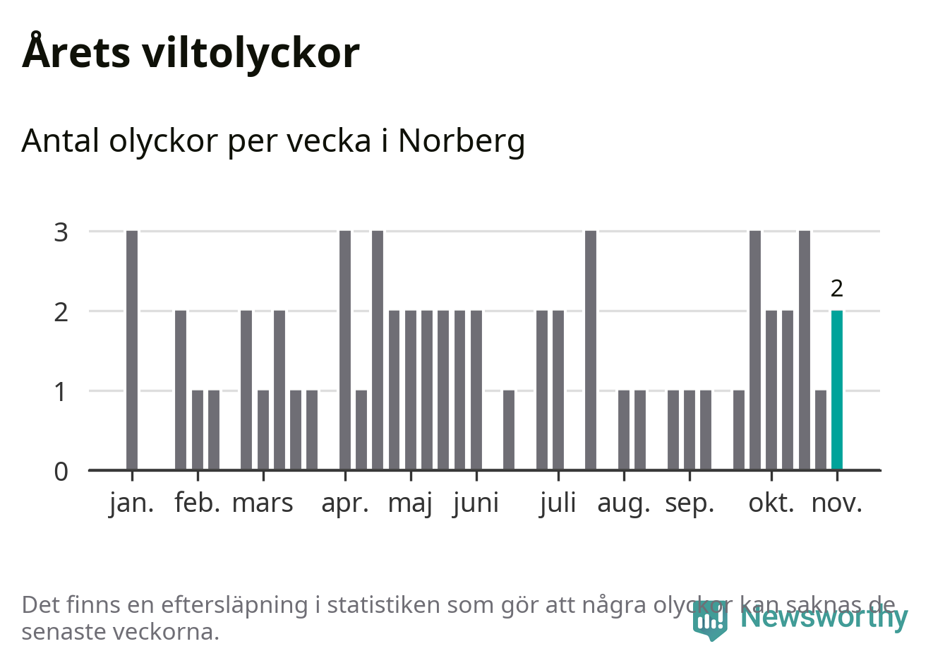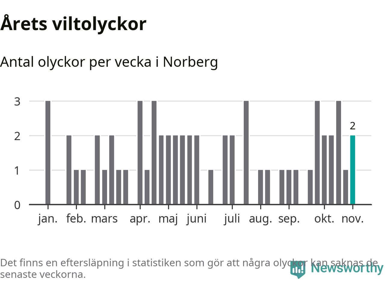 Hittills har två viltolyckor rapporterats in i Norbergs kommun från vecka 45. Se listan här.