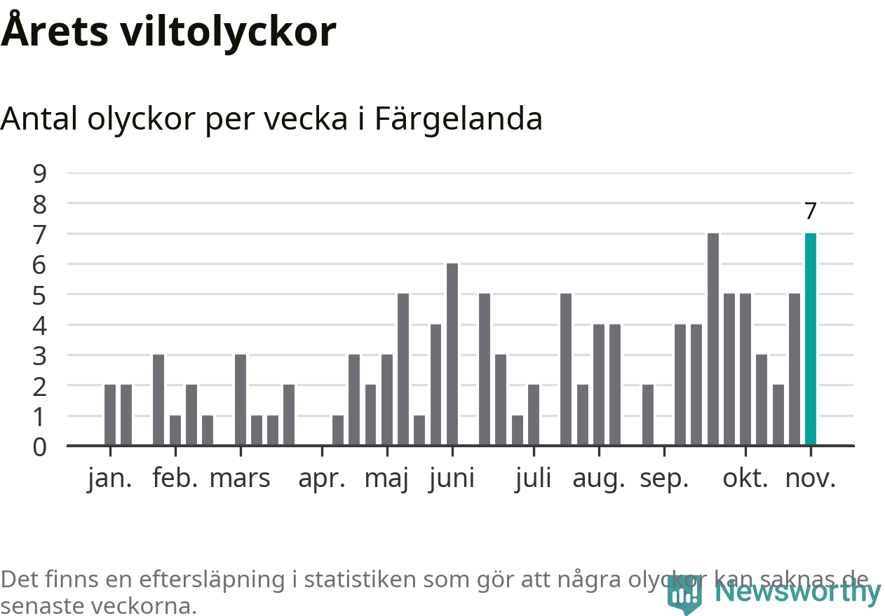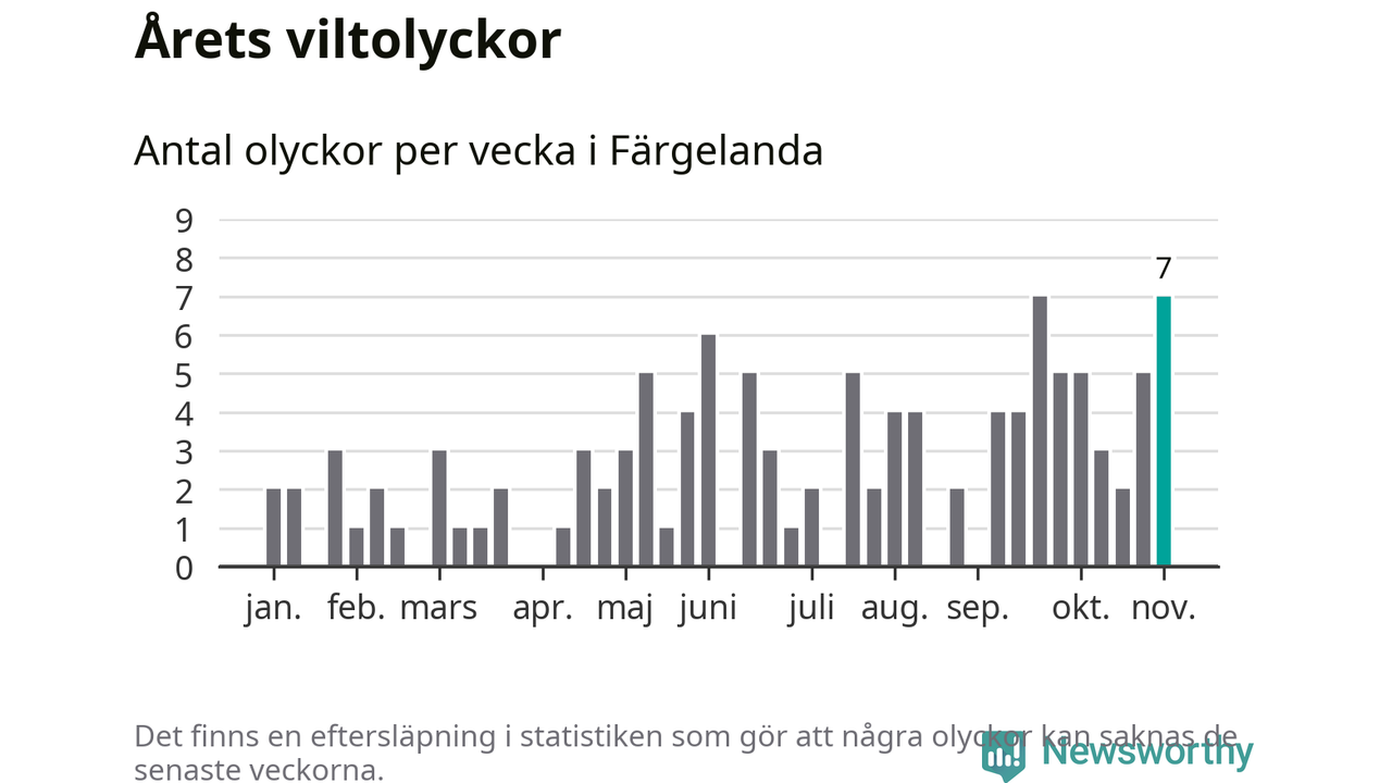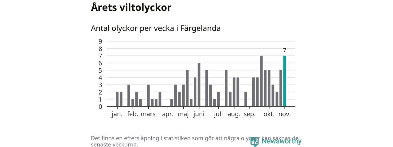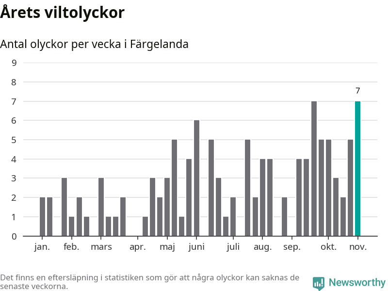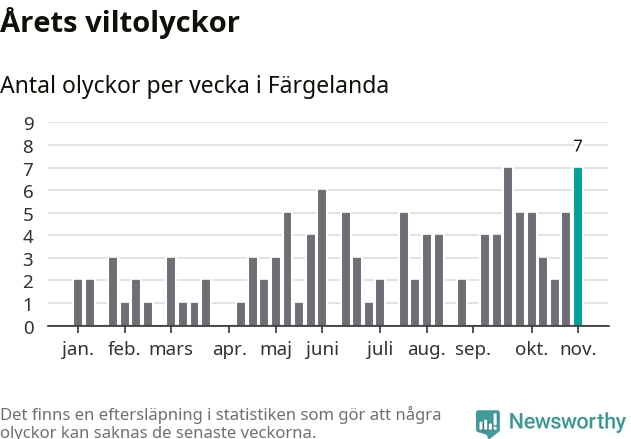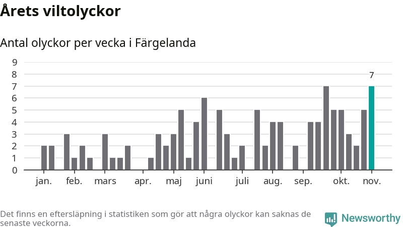 Sju olyckor på en enda vecka är däremot ovanligt många. Bara fyra gånger tidigare sedan 2015 har det skett