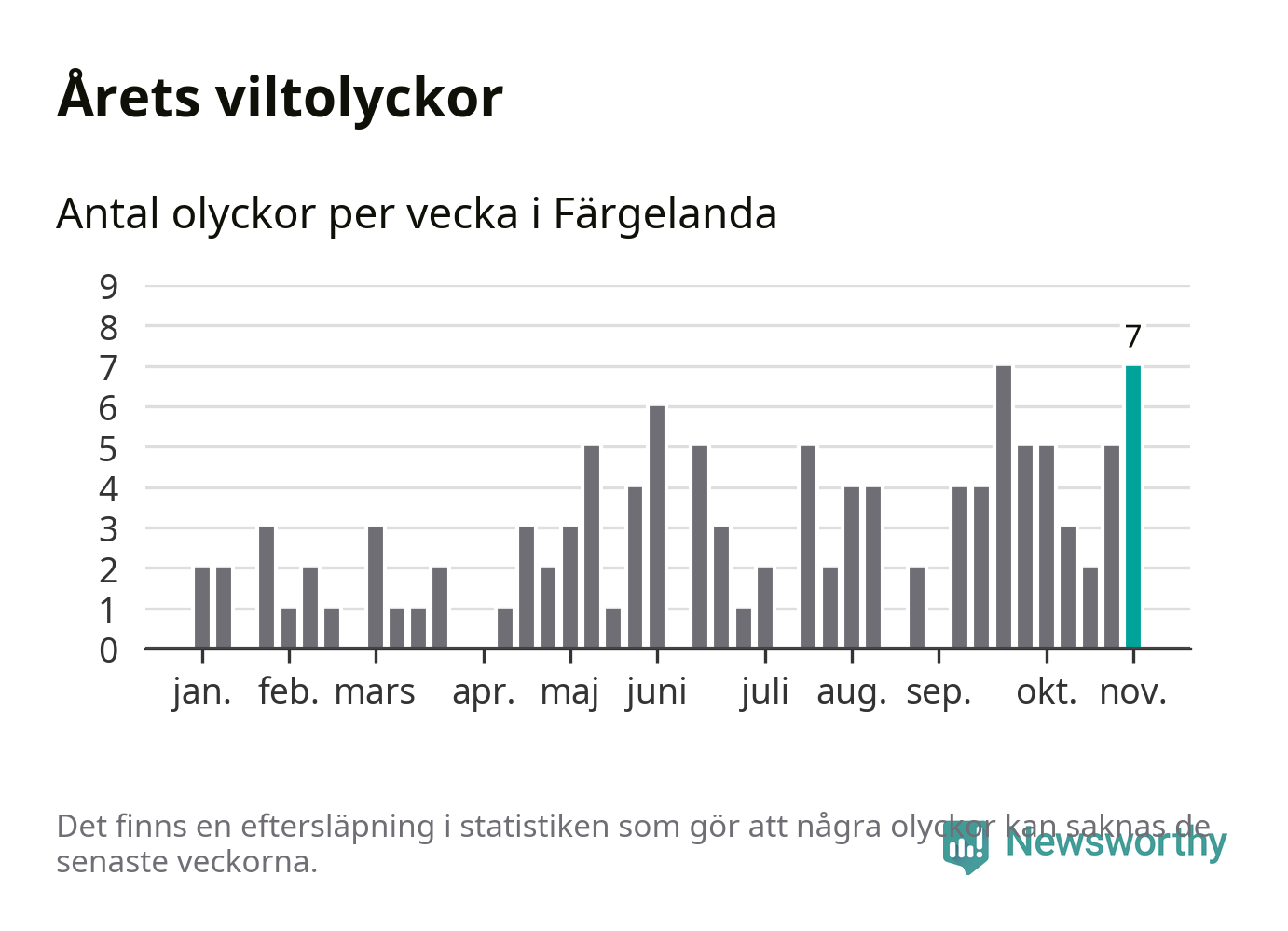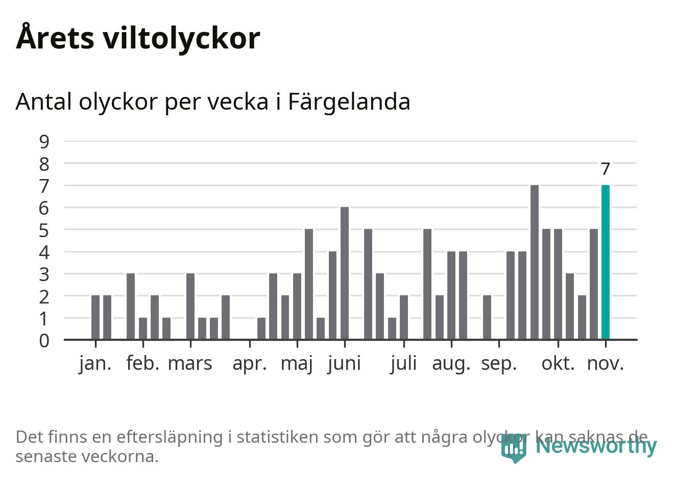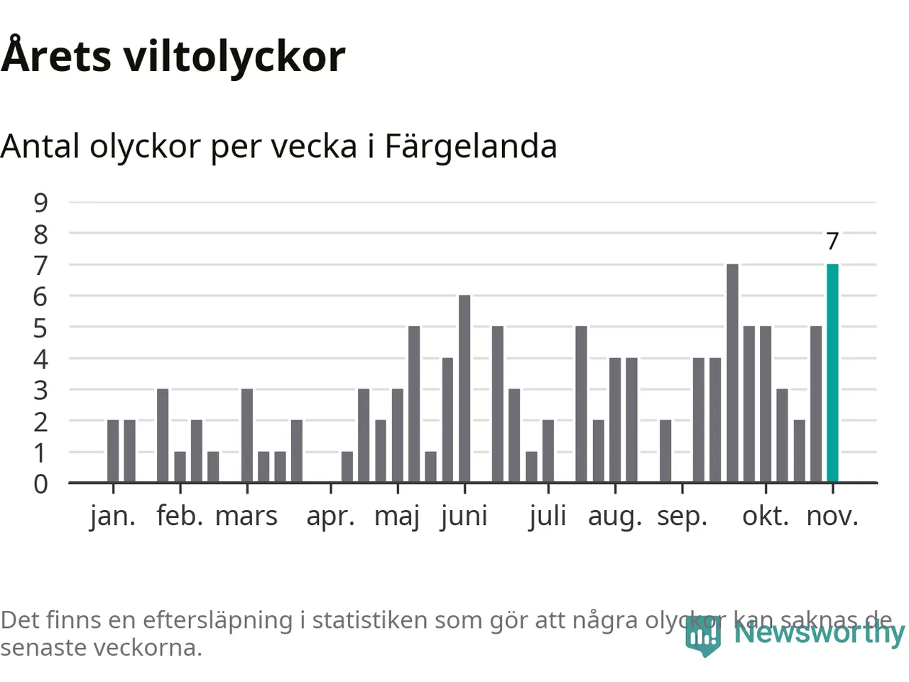 Sju olyckor på en enda vecka är däremot ovanligt många. Bara fyra gånger tidigare sedan 2015 har det skett