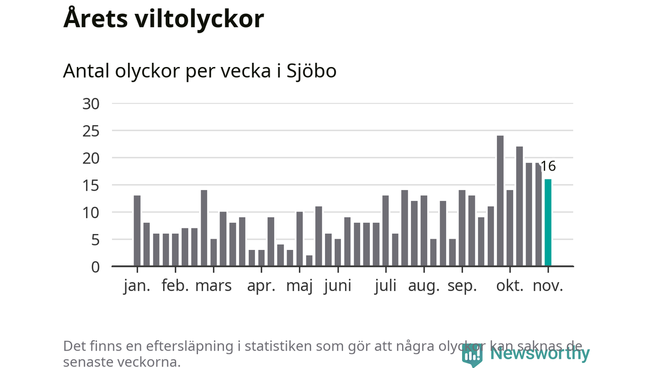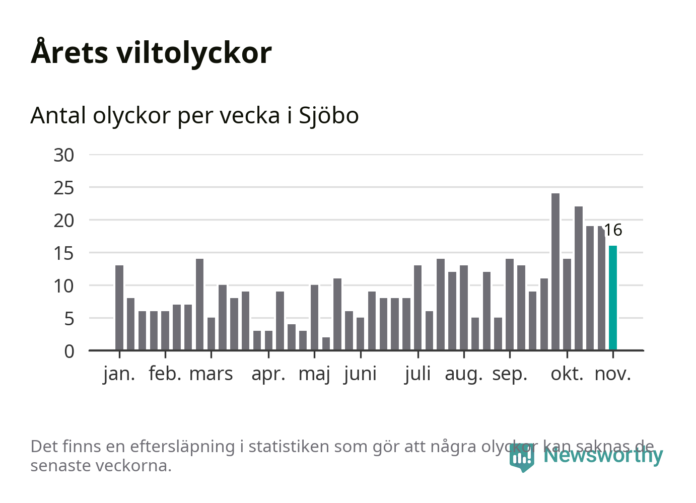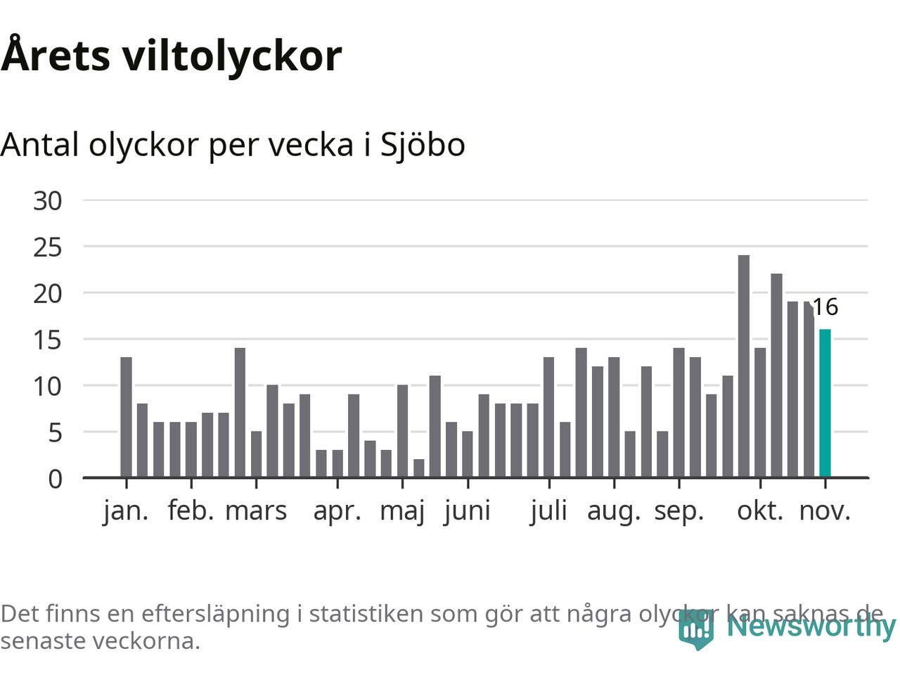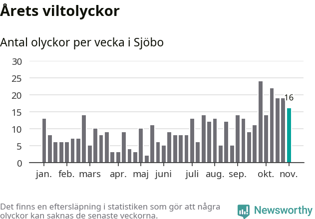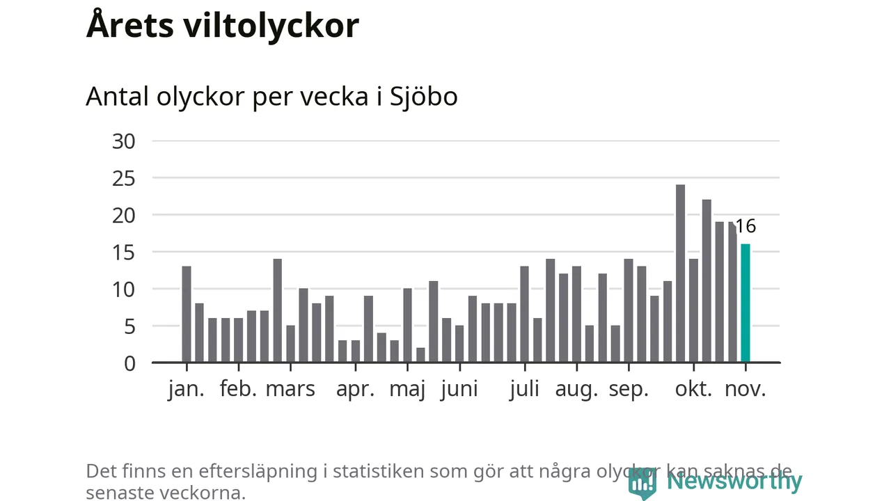 Hittills har 16 viltolyckor rapporterats in i Sjöbo kommun från vecka 45. Se listan här.