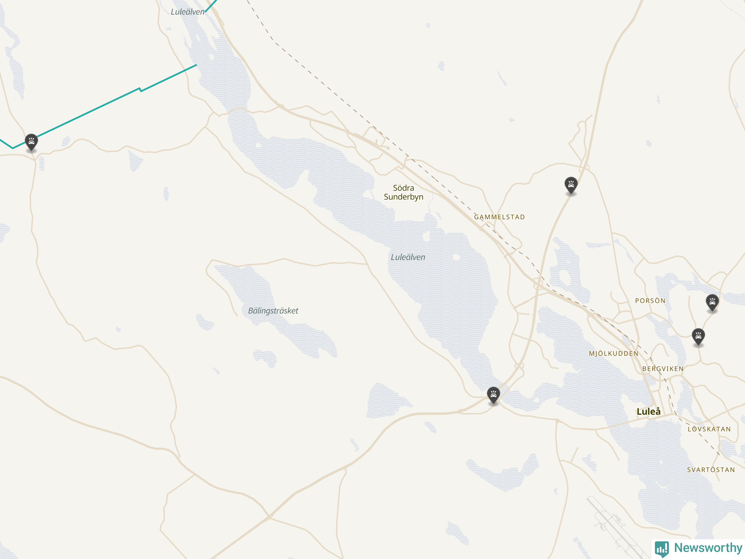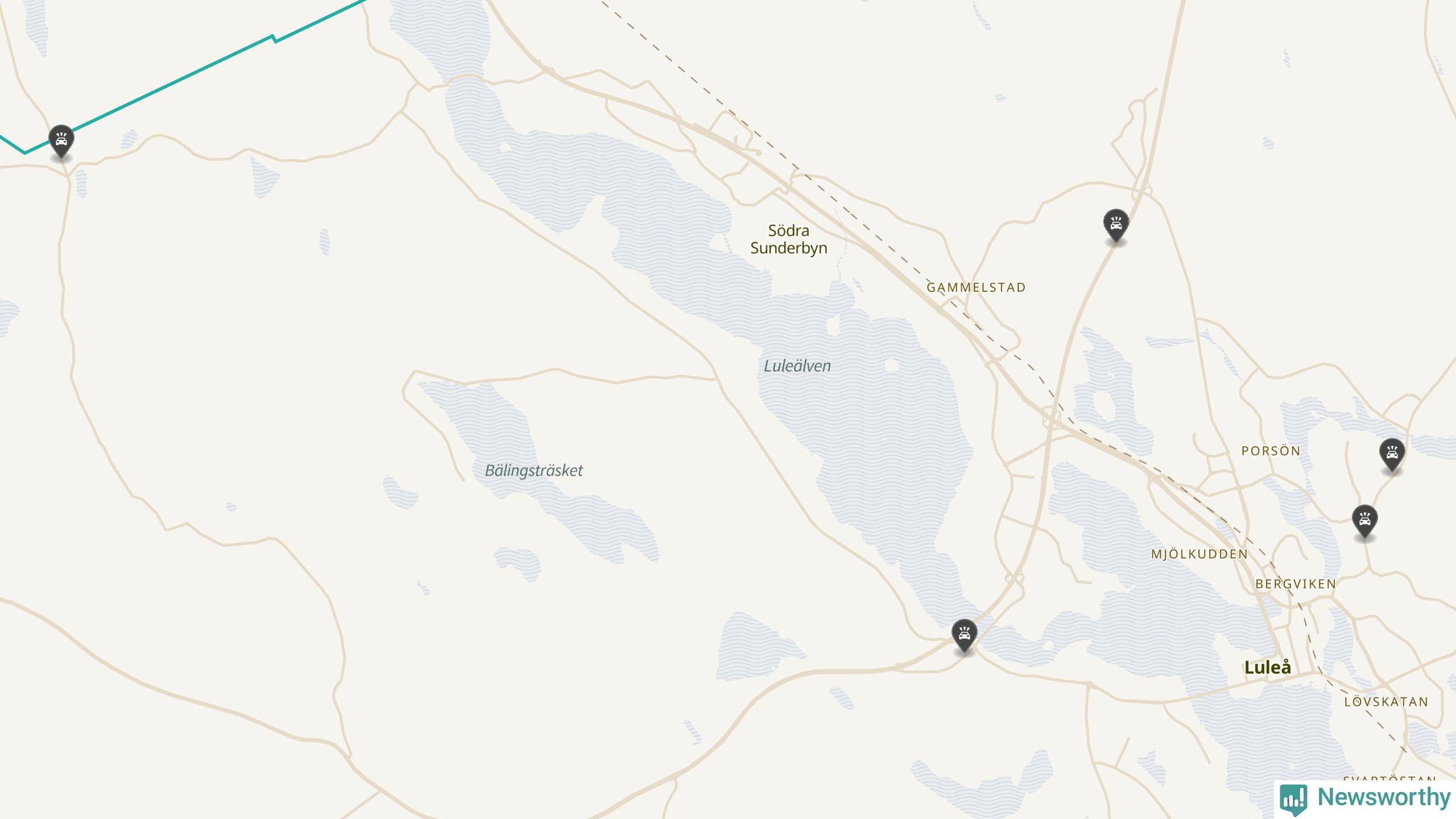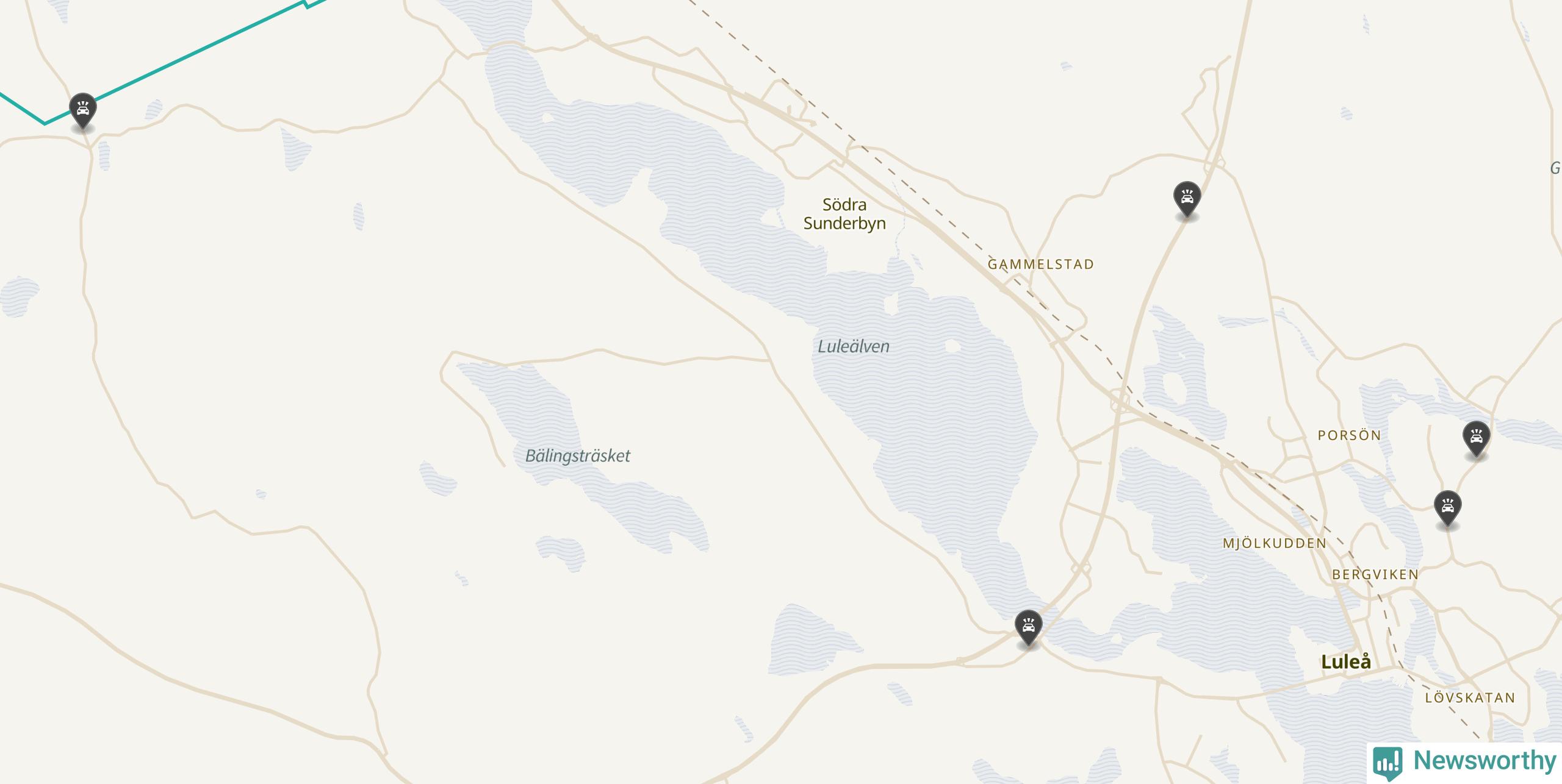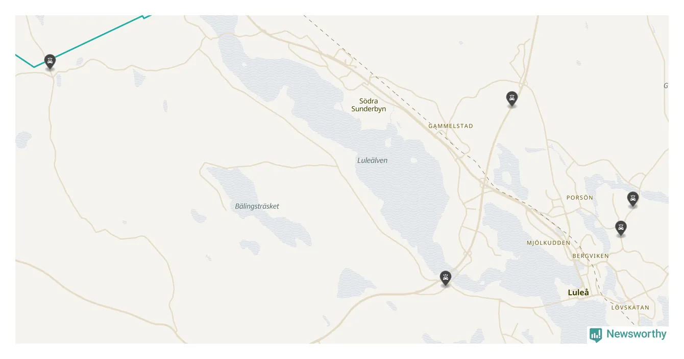Karta över viltolyckor i Luleå kommun