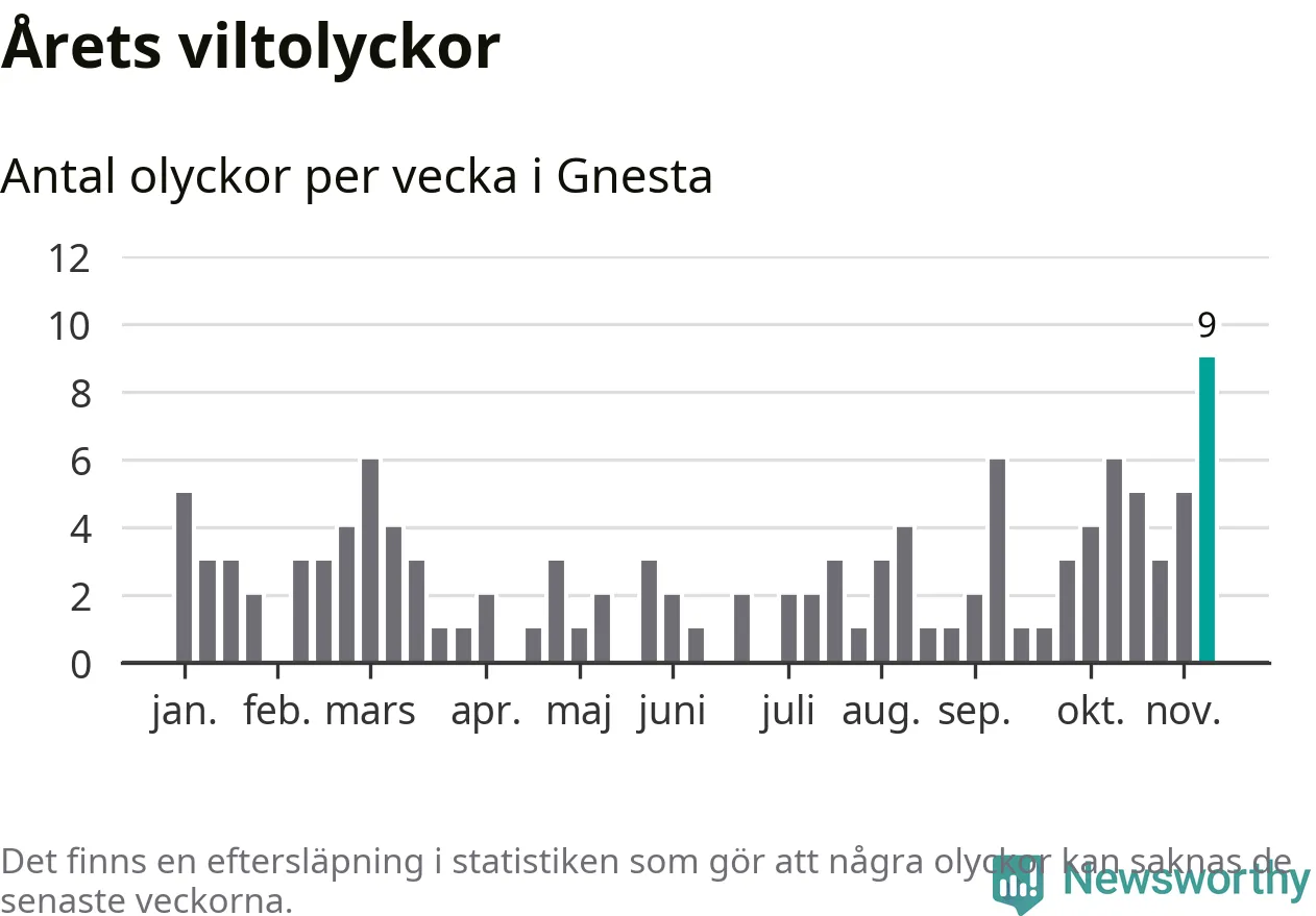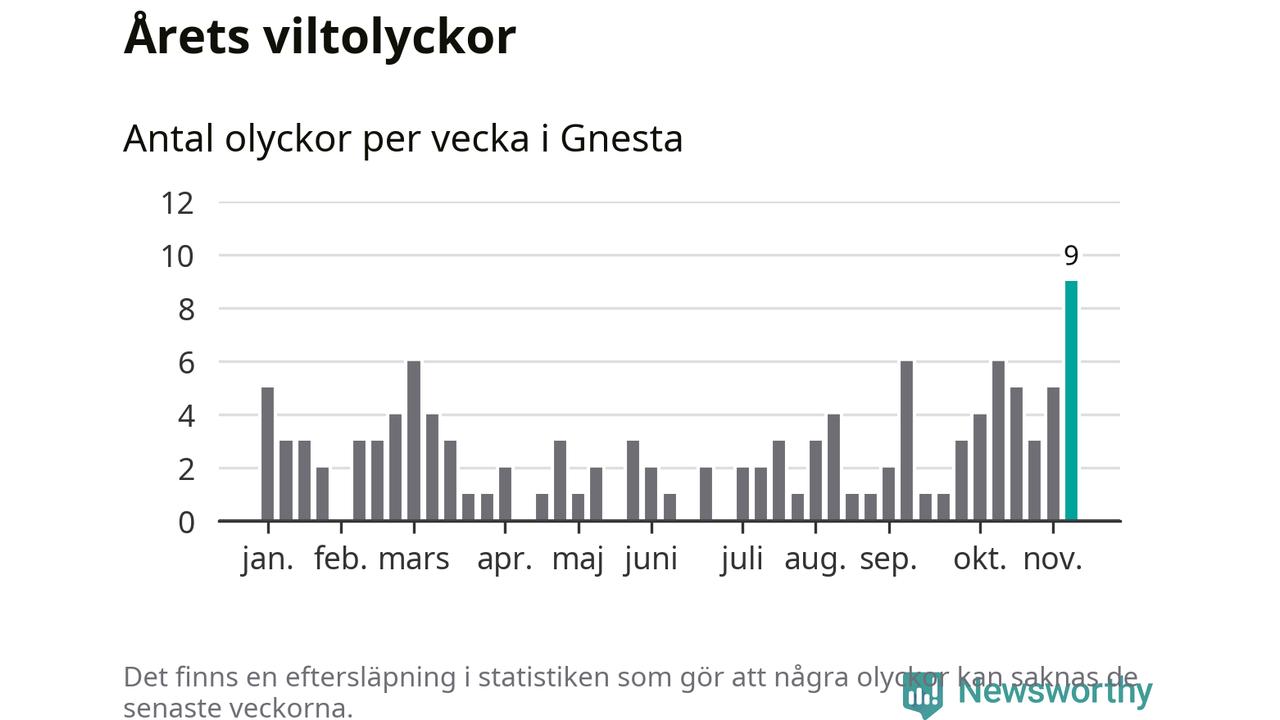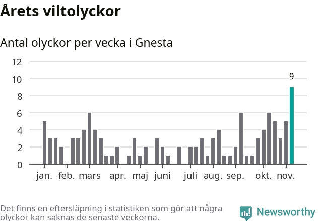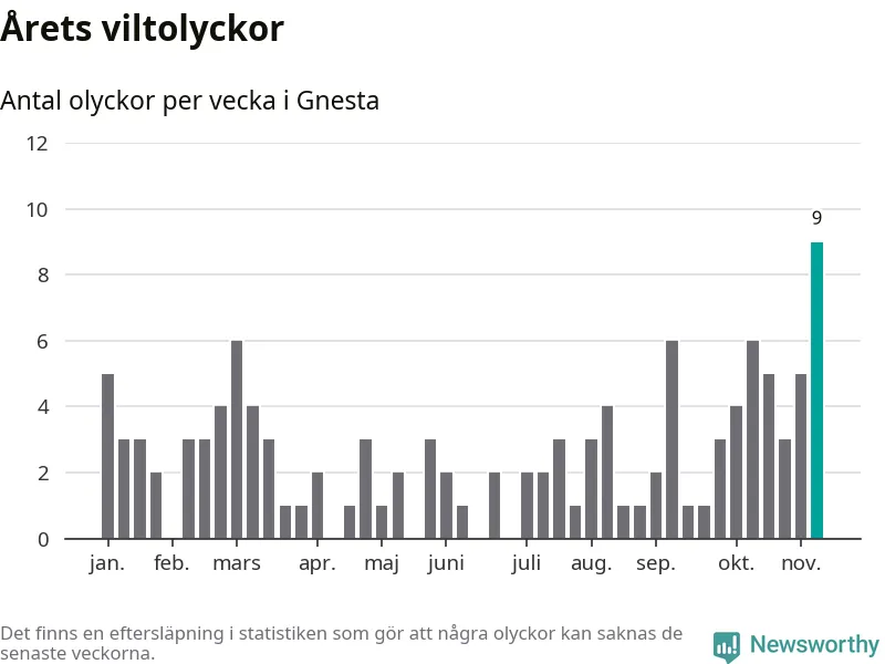 Till påkört vilt räknas även djur som inte kunnat återfinnas. Här visas de olyckor som rapporterats in hitills. Det förekommer felrapporteringar, och det dröjer också ibland innan en olycka rapporteras.