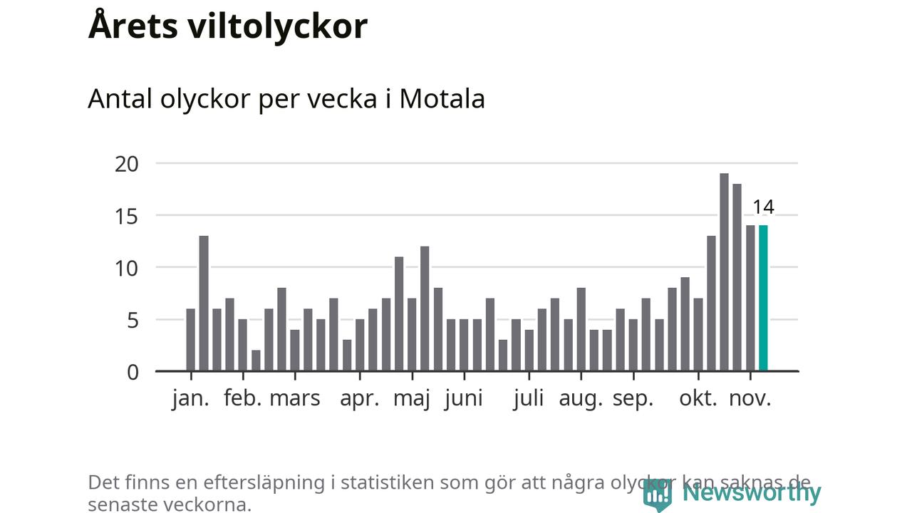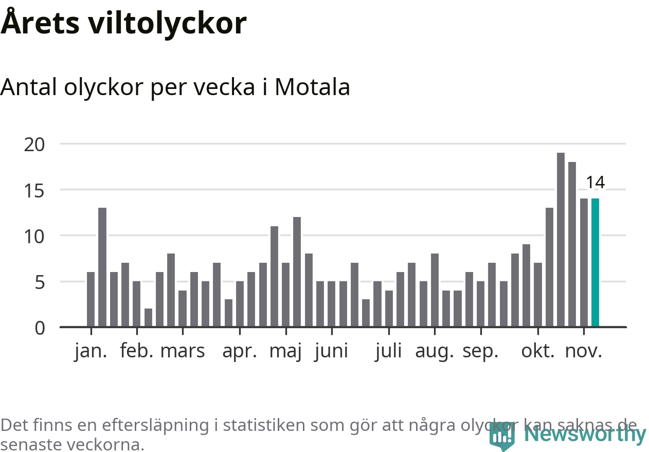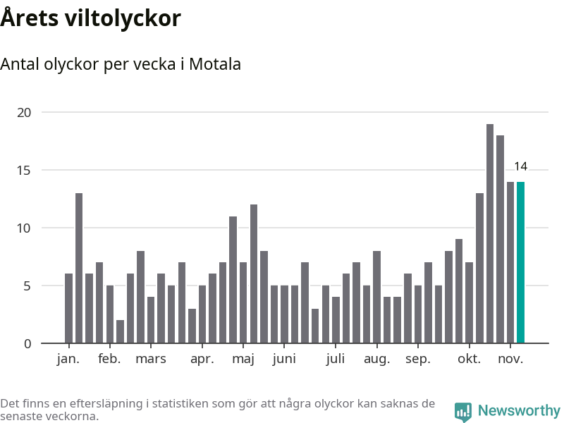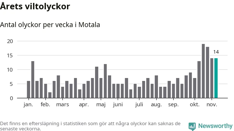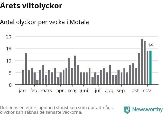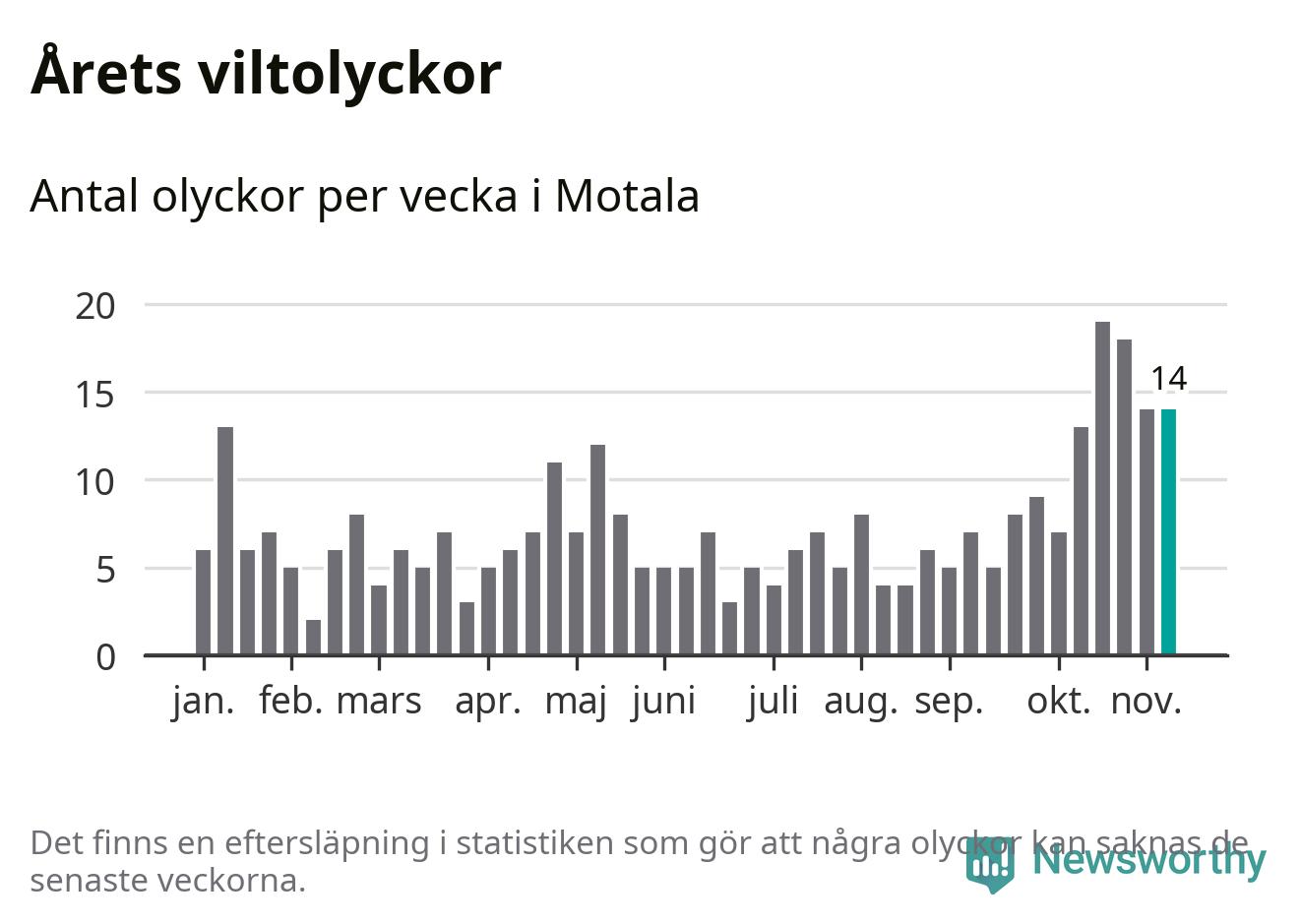 14 olyckor på en enda vecka är också ovanligt många. Bara 17 gånger tidigare sedan 2015 har det skett