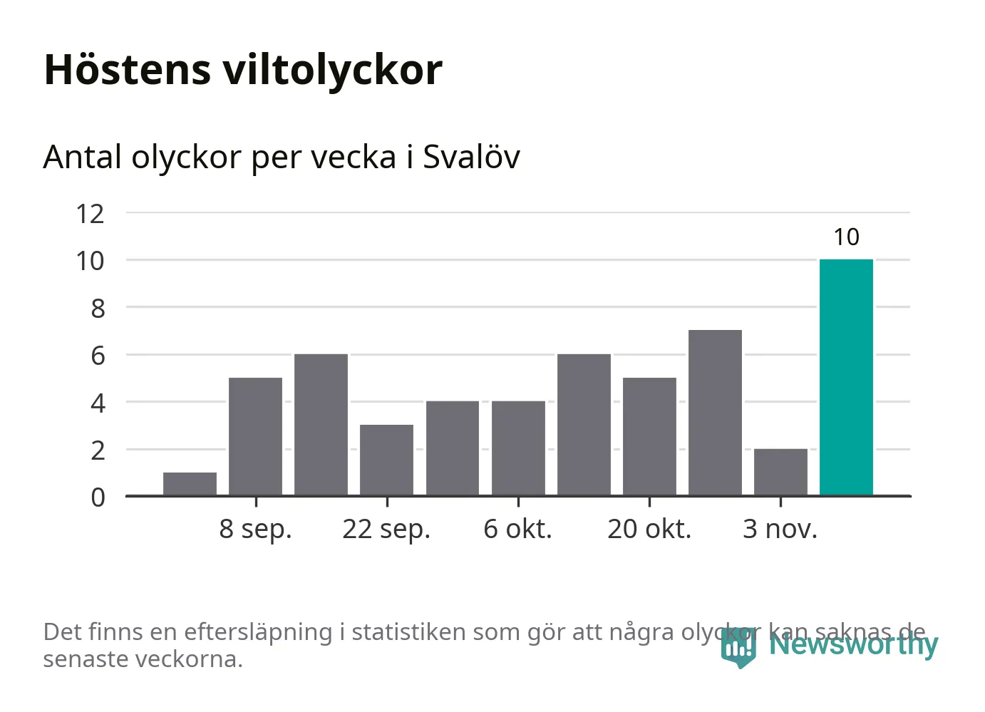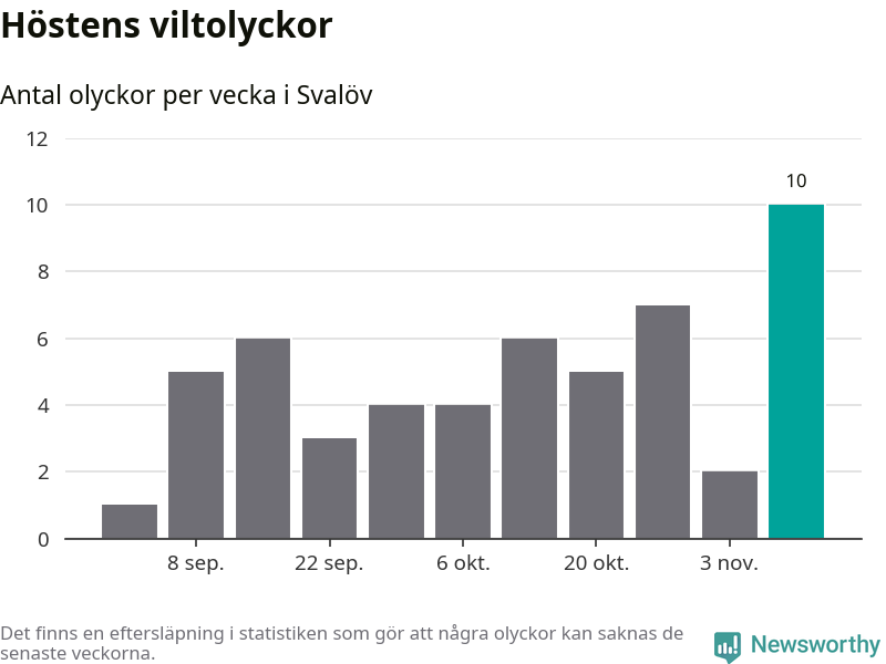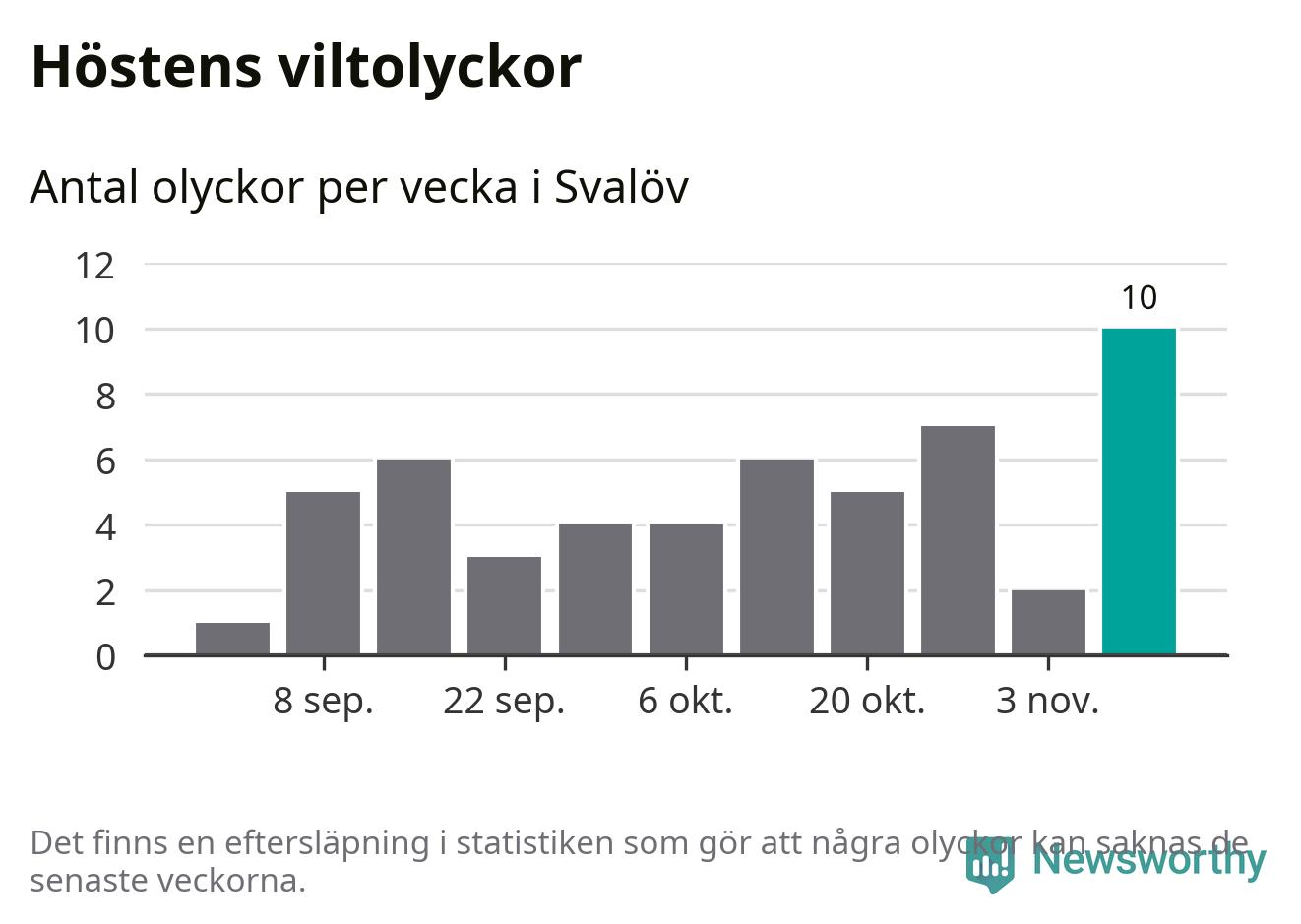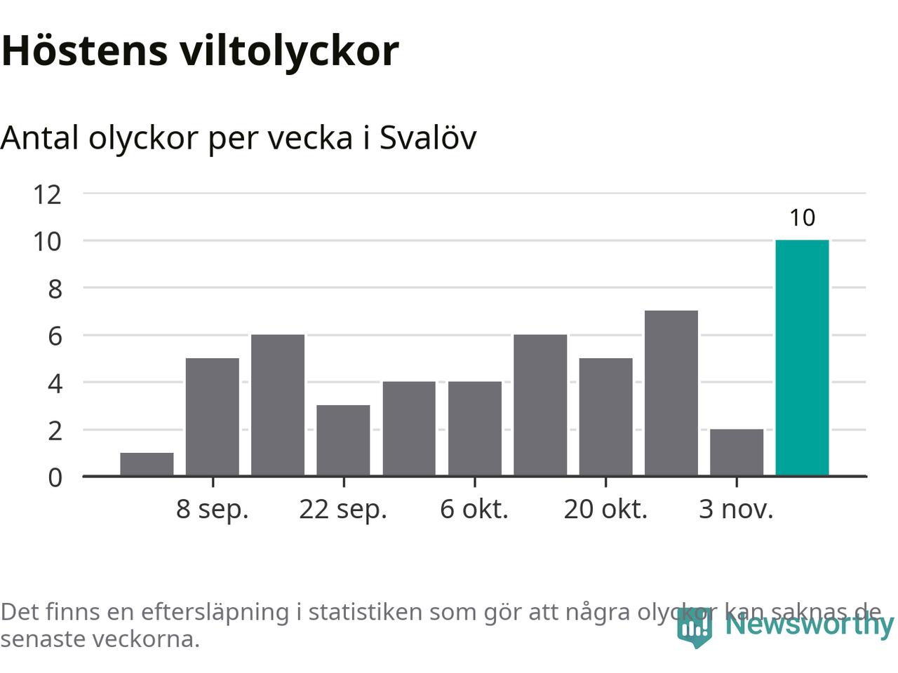 Hittills har tio viltolyckor rapporterats in i Svalövs kommun från vecka 46. Det är en av de högsta höstsiffrorna för en enskild vecka på över tio år.