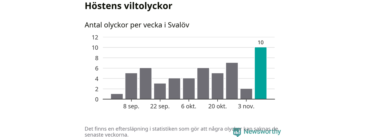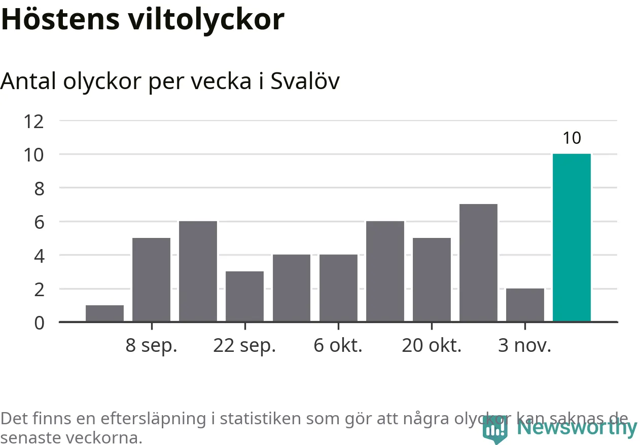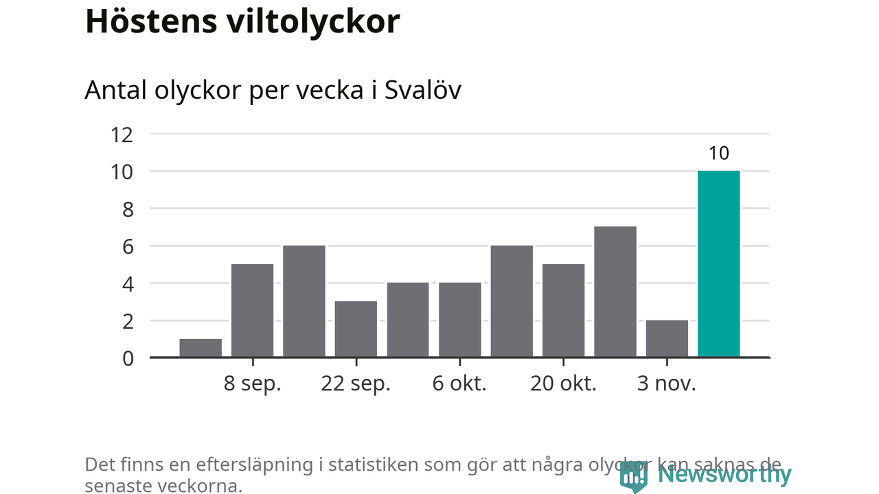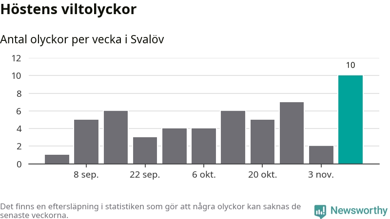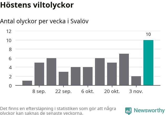 Hittills har tio viltolyckor rapporterats in i Svalövs kommun från vecka 46. Det är en av de högsta höstsiffrorna för en enskild vecka på över tio år.