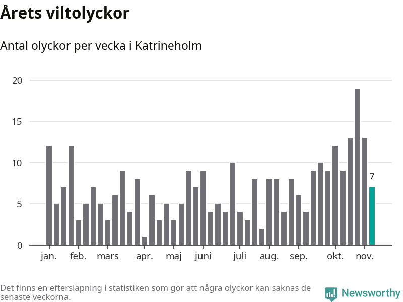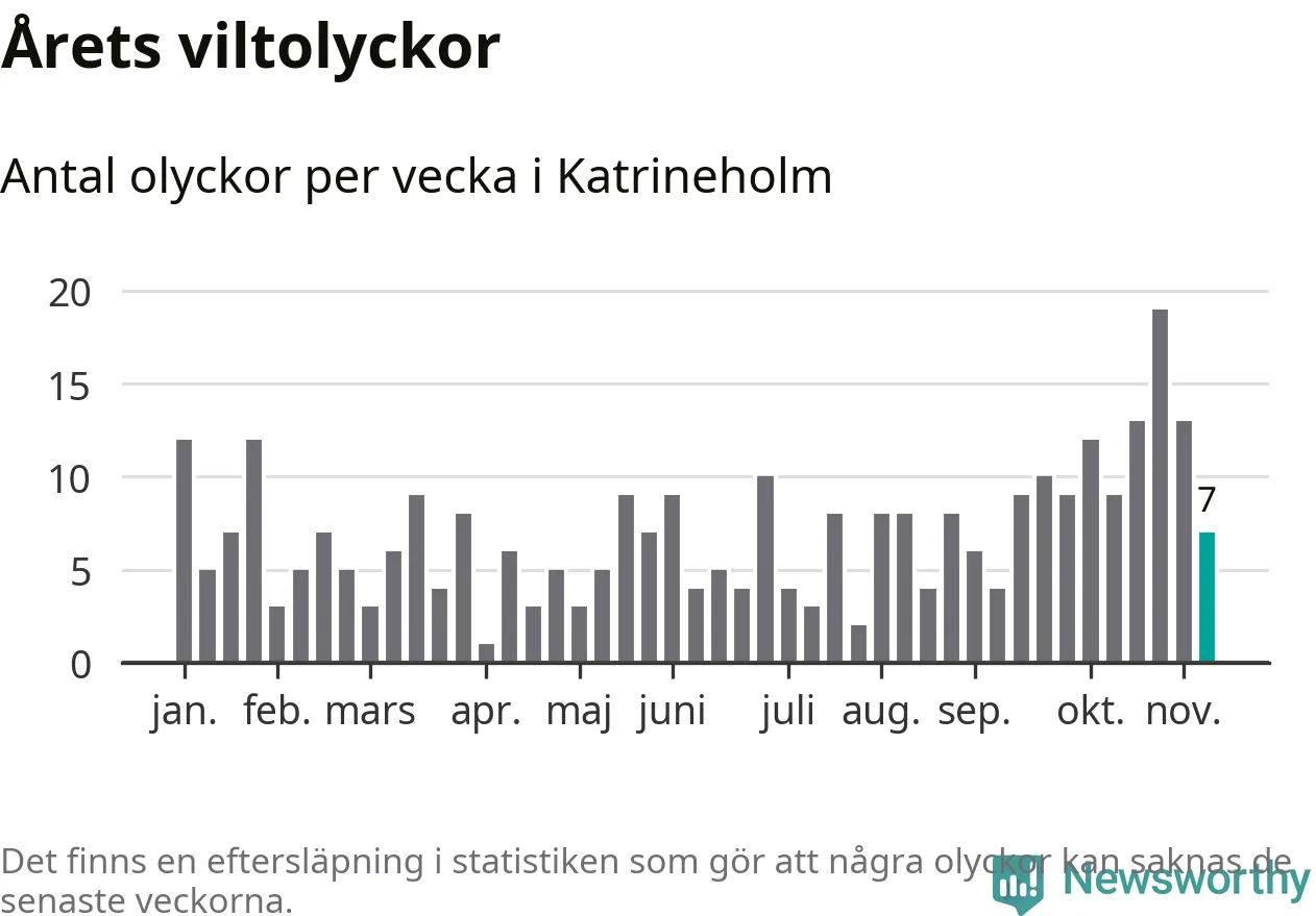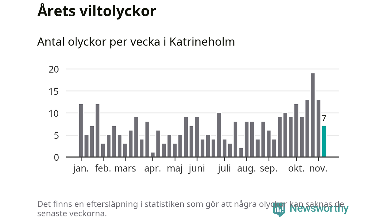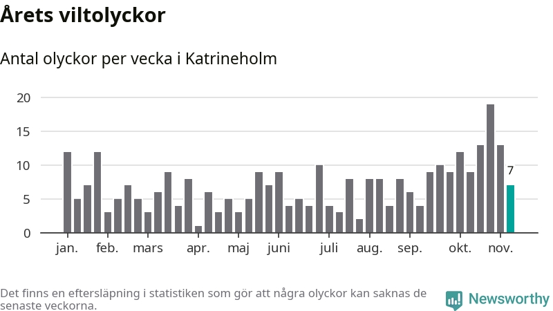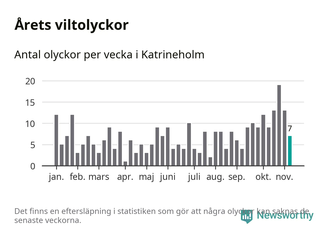 Hittills har sju viltolyckor rapporterats in i Katrineholms kommun från vecka 46. Se listan här.