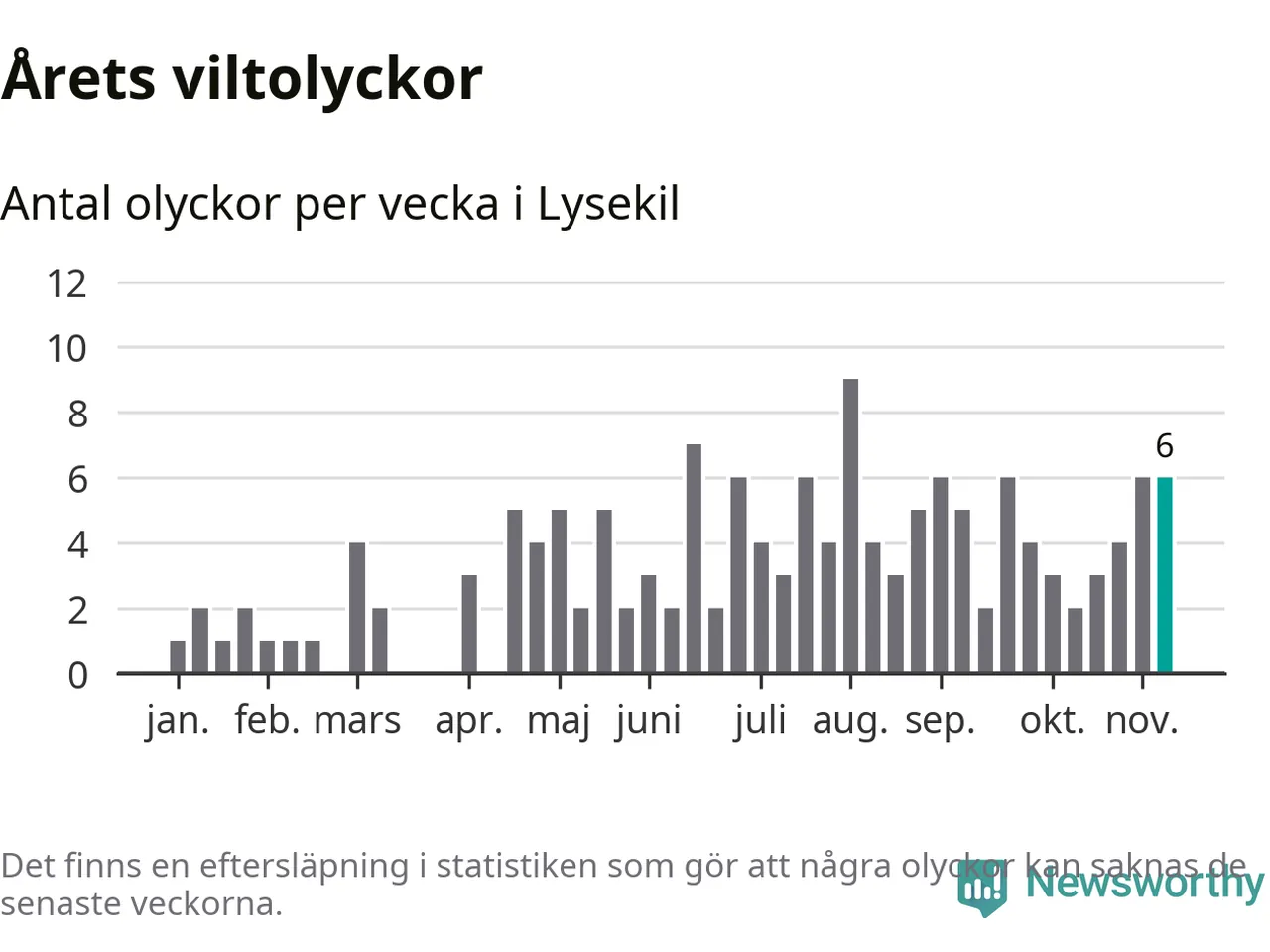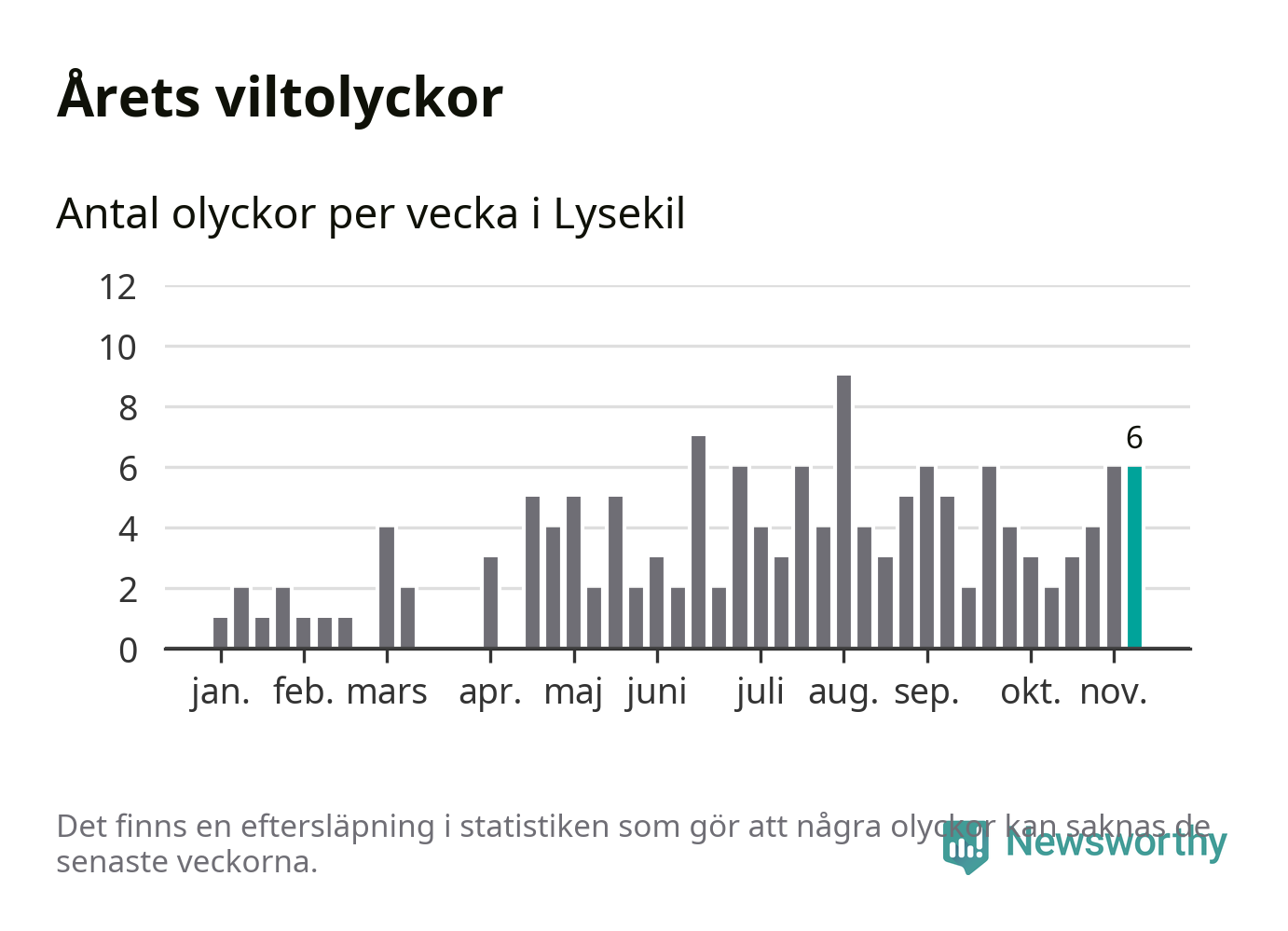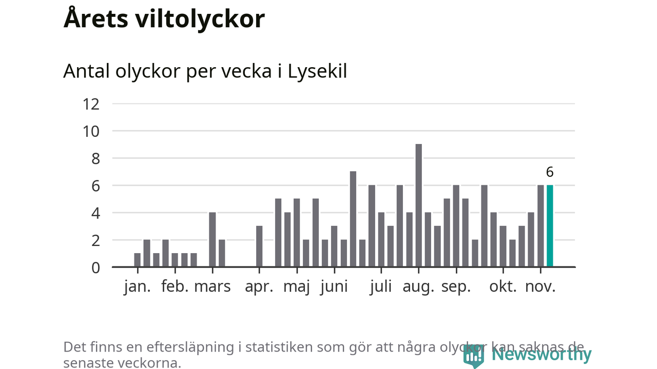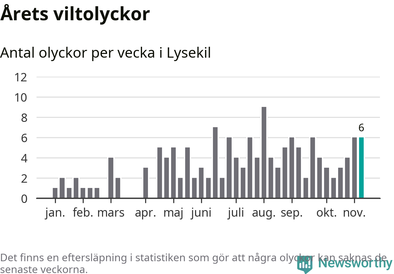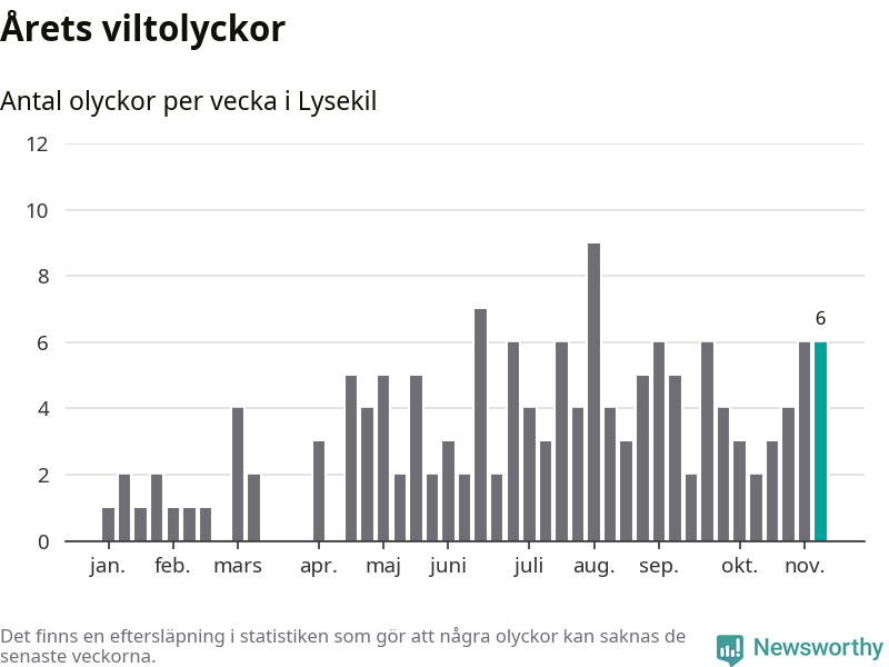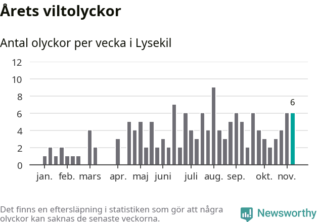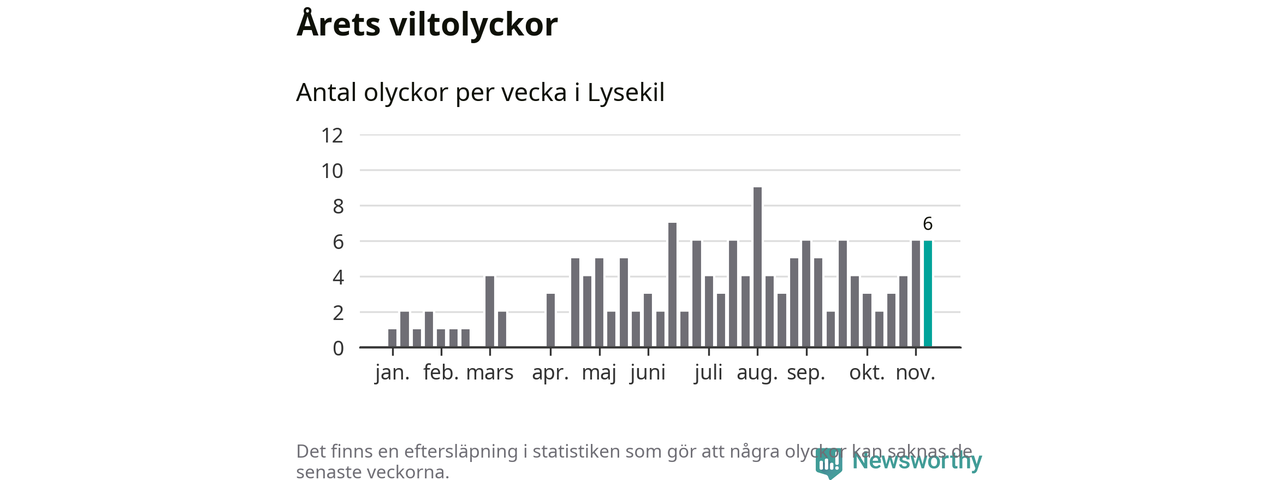 Hittills har sex viltolyckor rapporterats in i Lysekils kommun från vecka 46. Se listan här.