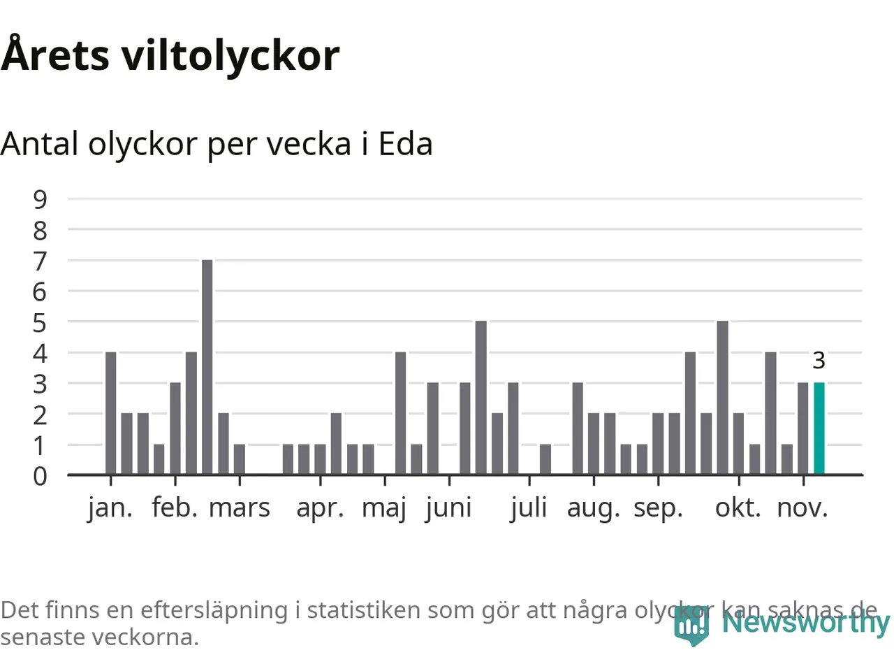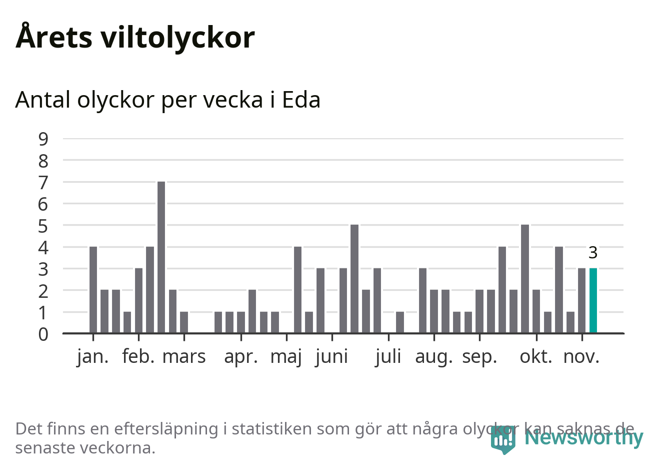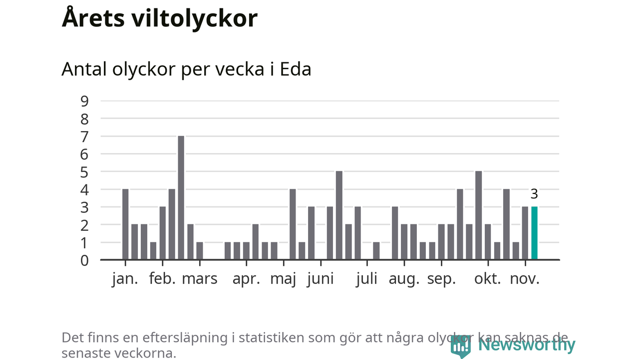 Hittills har tre viltolyckor rapporterats in i Eda kommun från vecka 46. Se listan här.