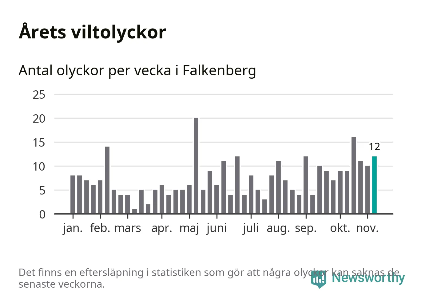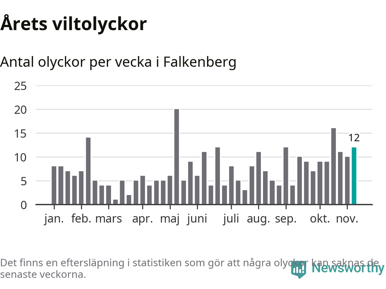 Newsworthy är en nyhetssajt som gör lokal journalistik baserat på data. Vi är datajournalister som analyserar och tolkar världen på siffror, snarare än tyckande.