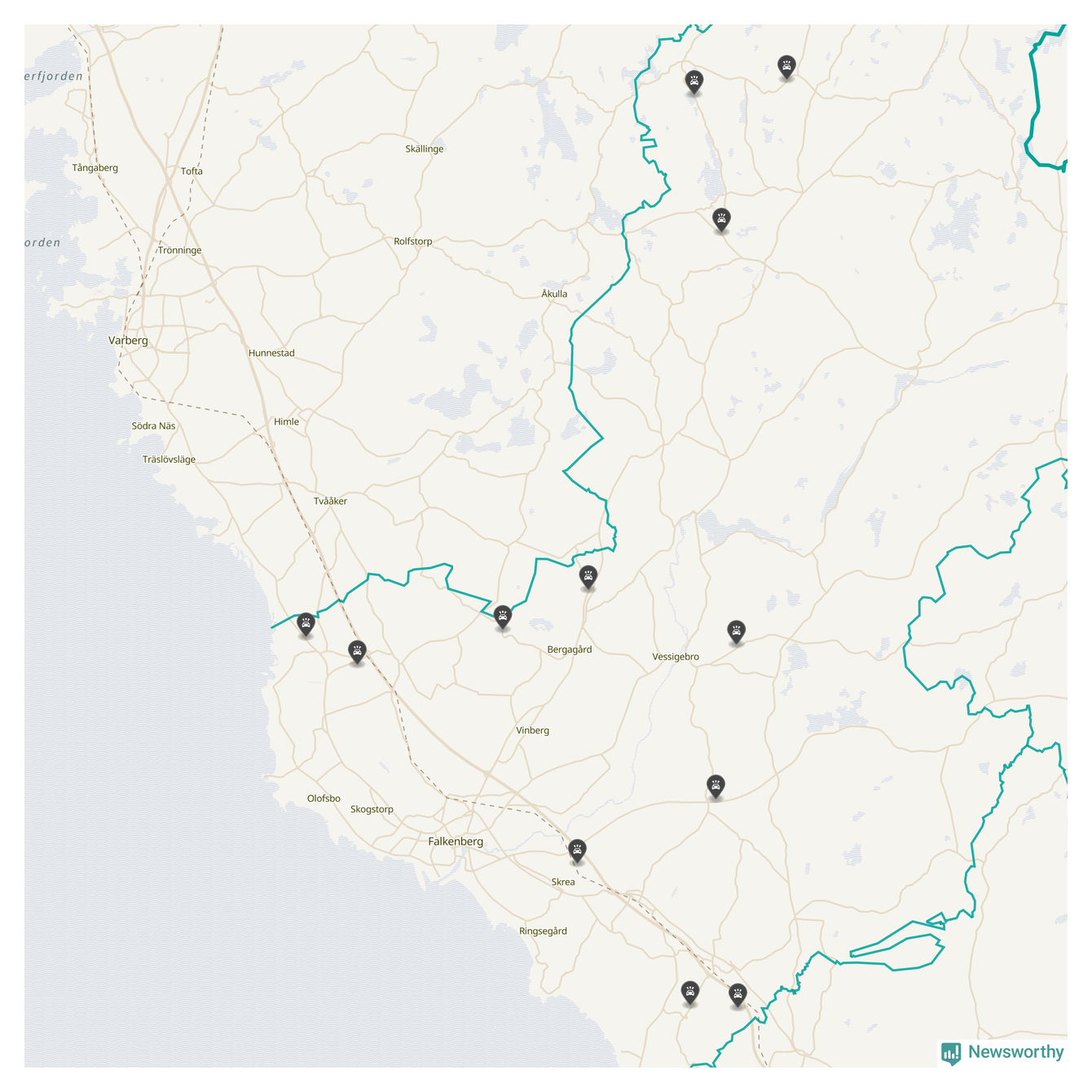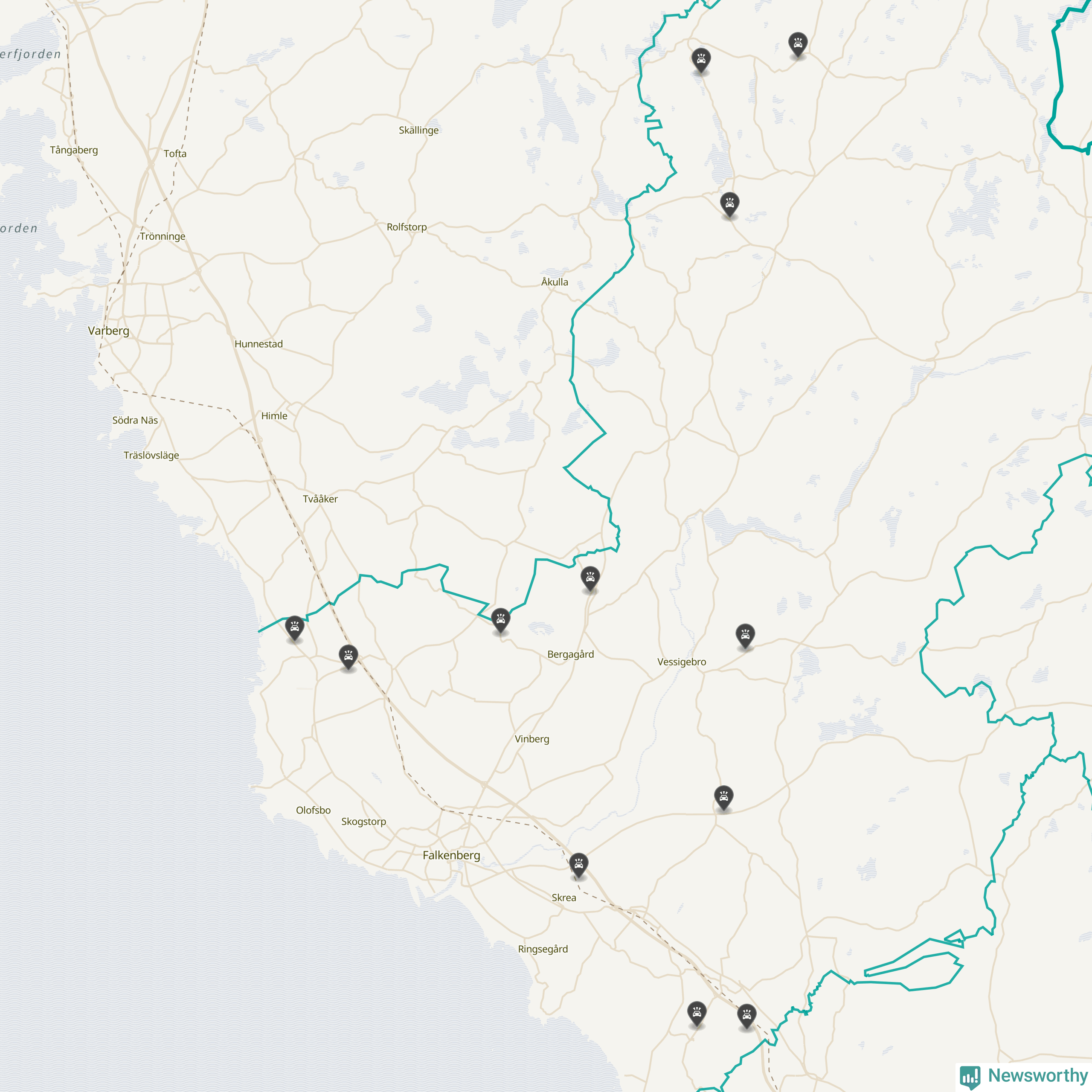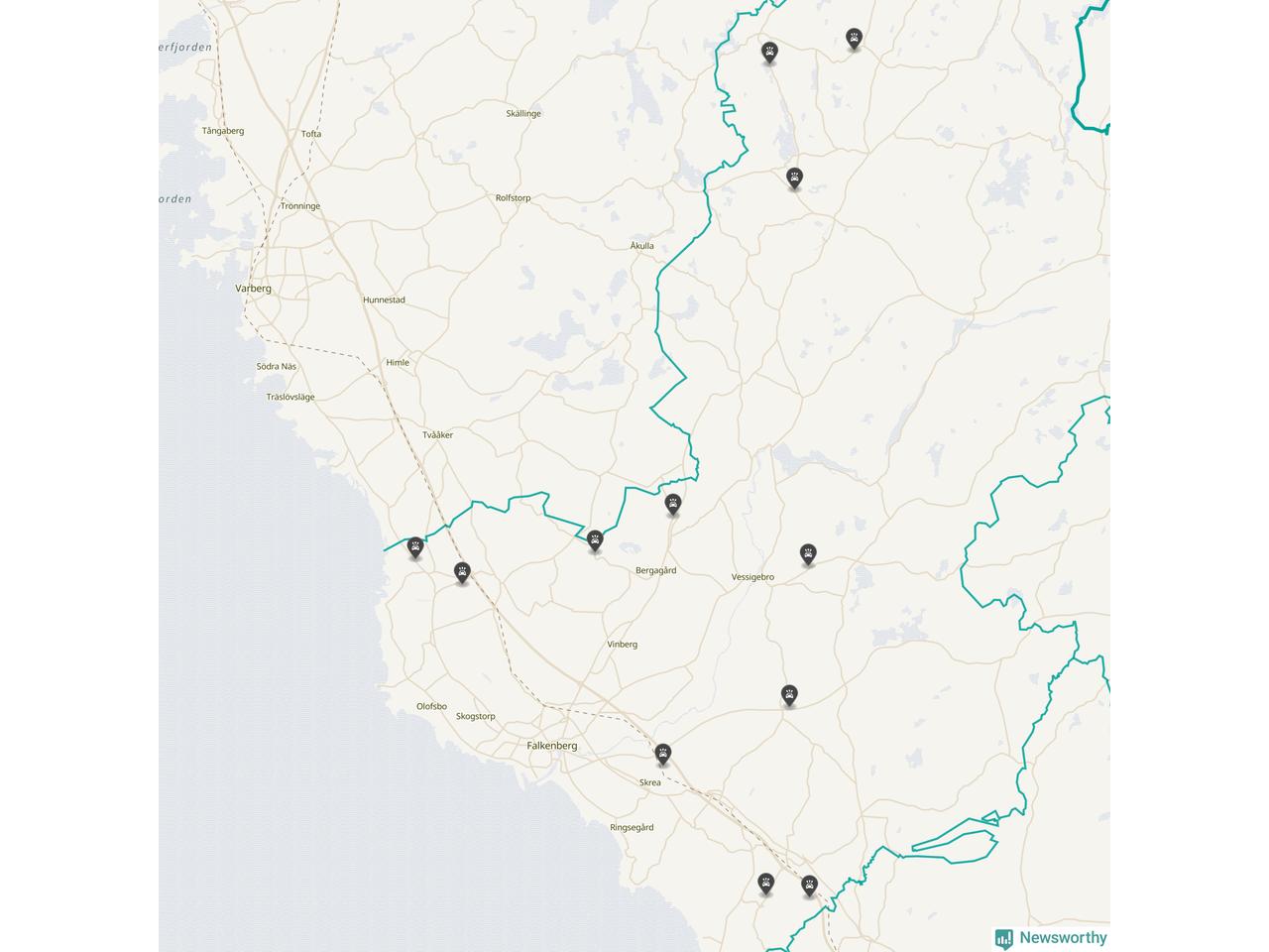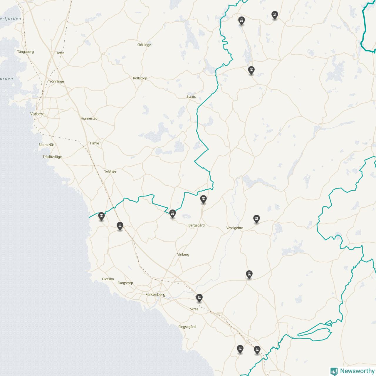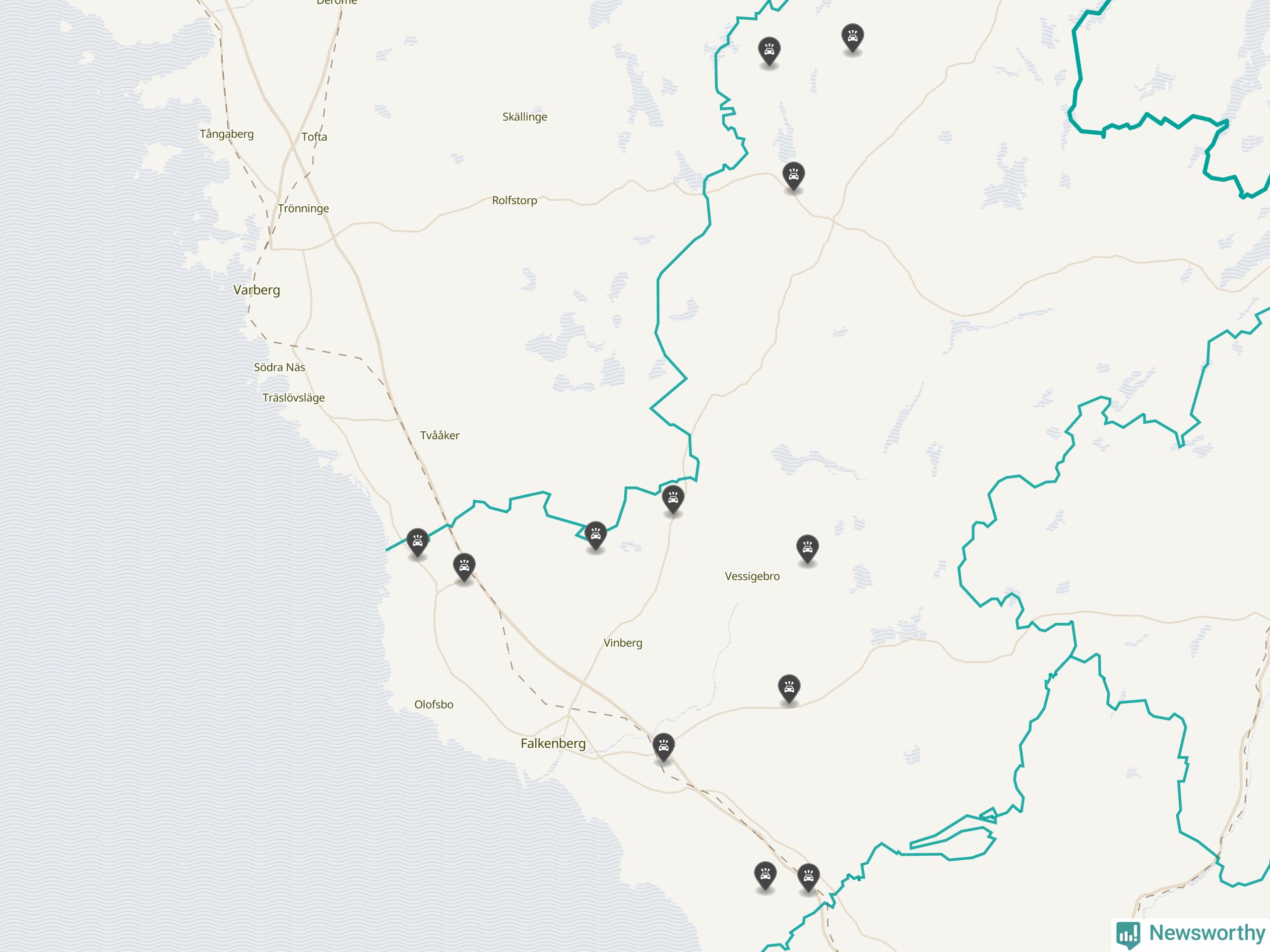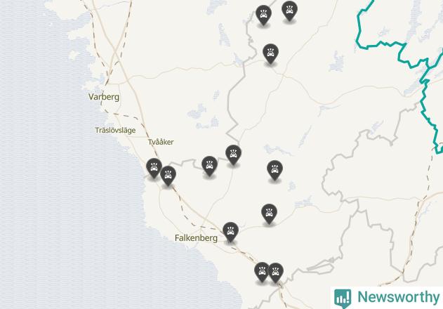 Karta över viltolyckor i Falkenbergs kommun