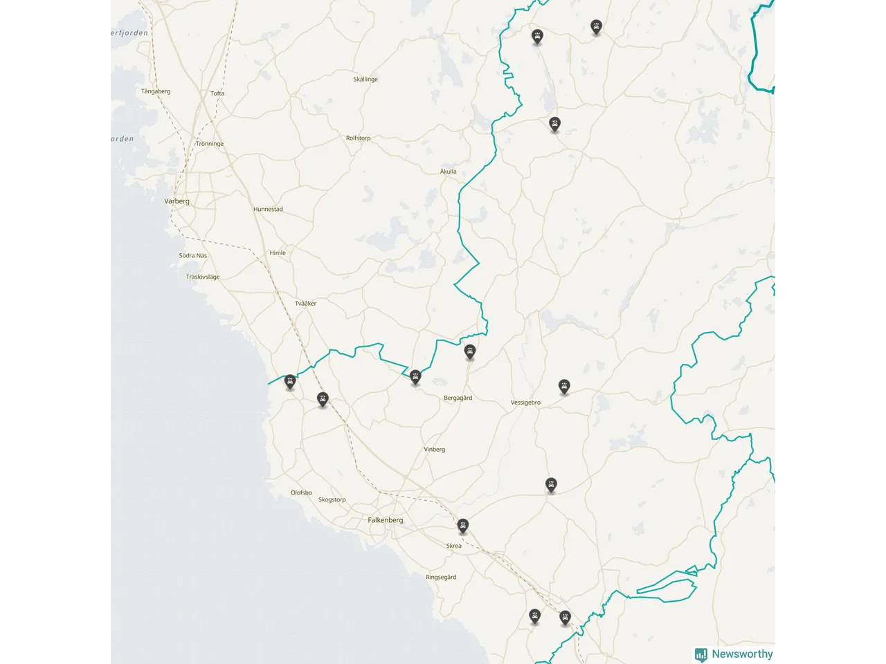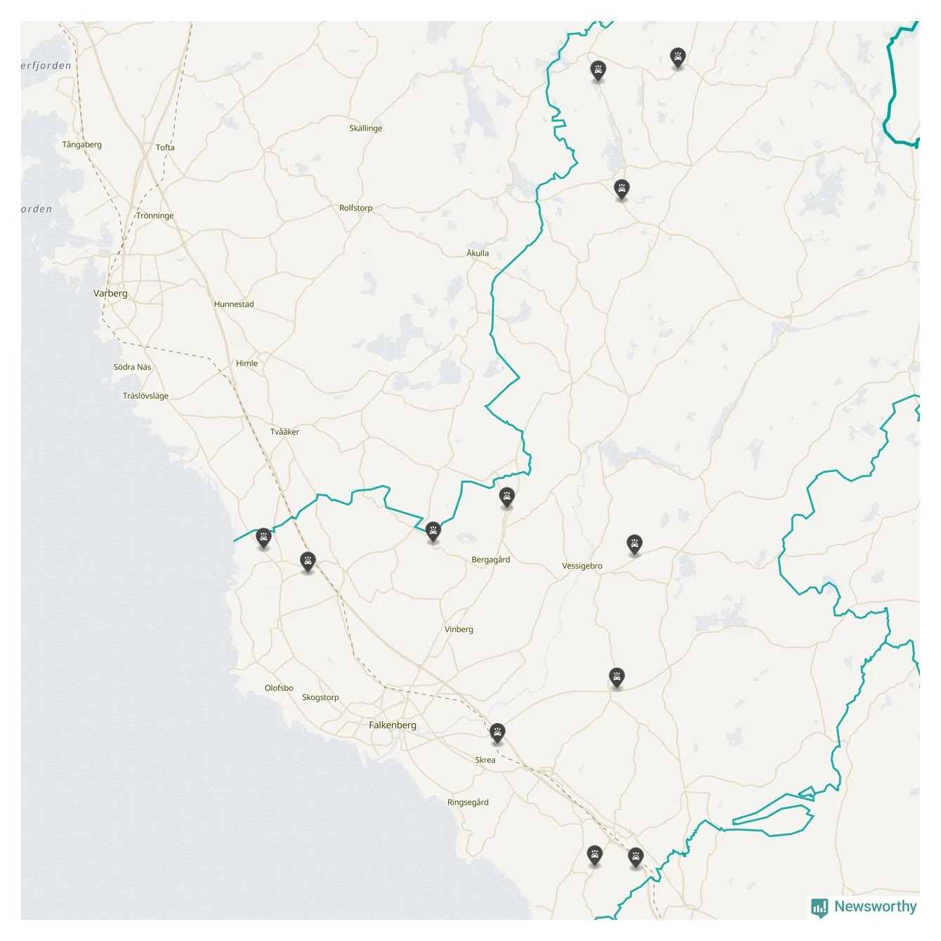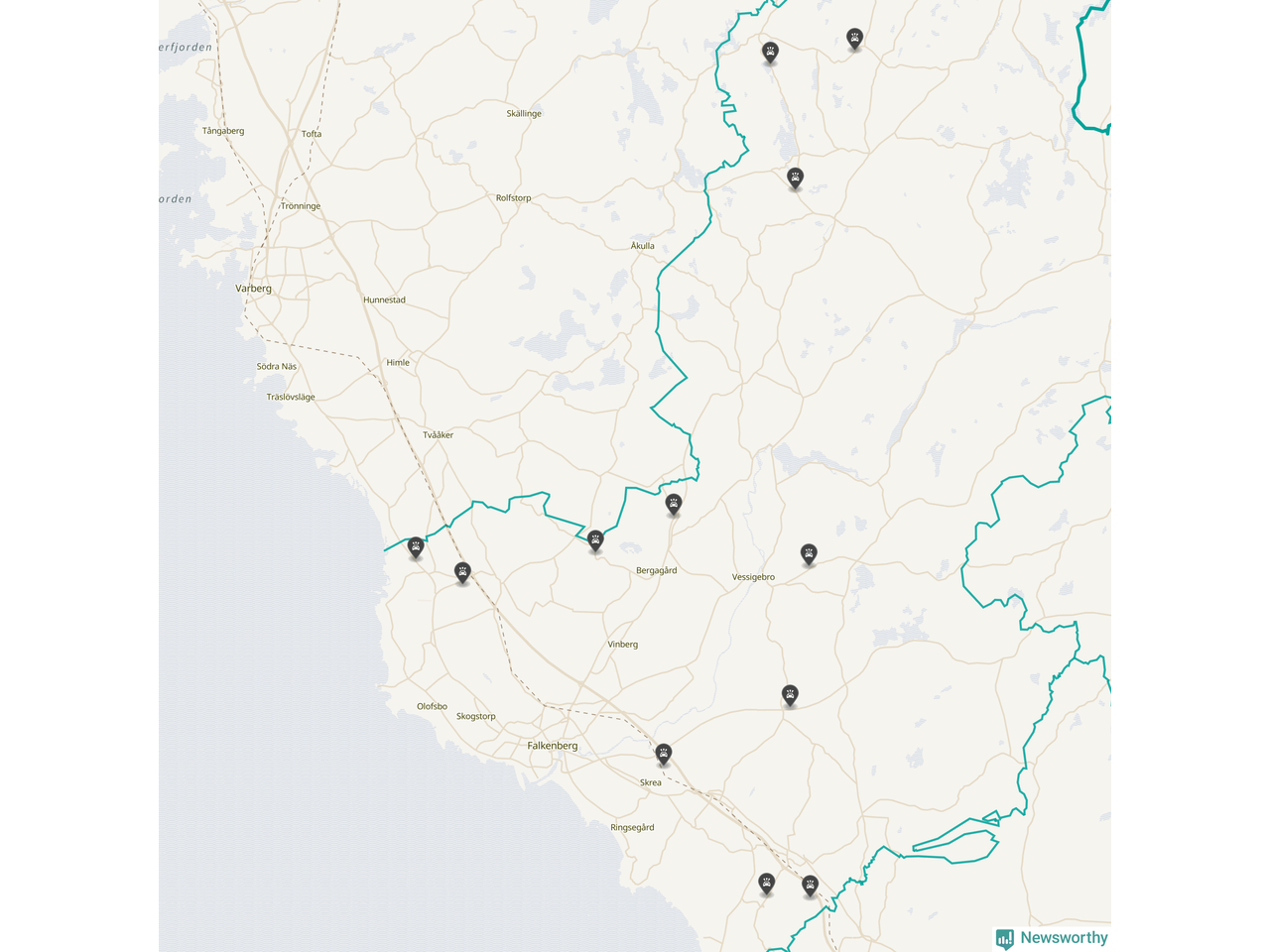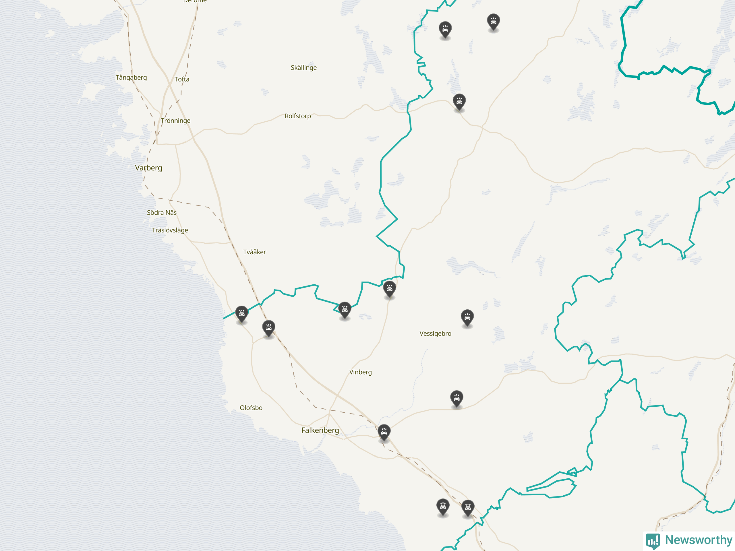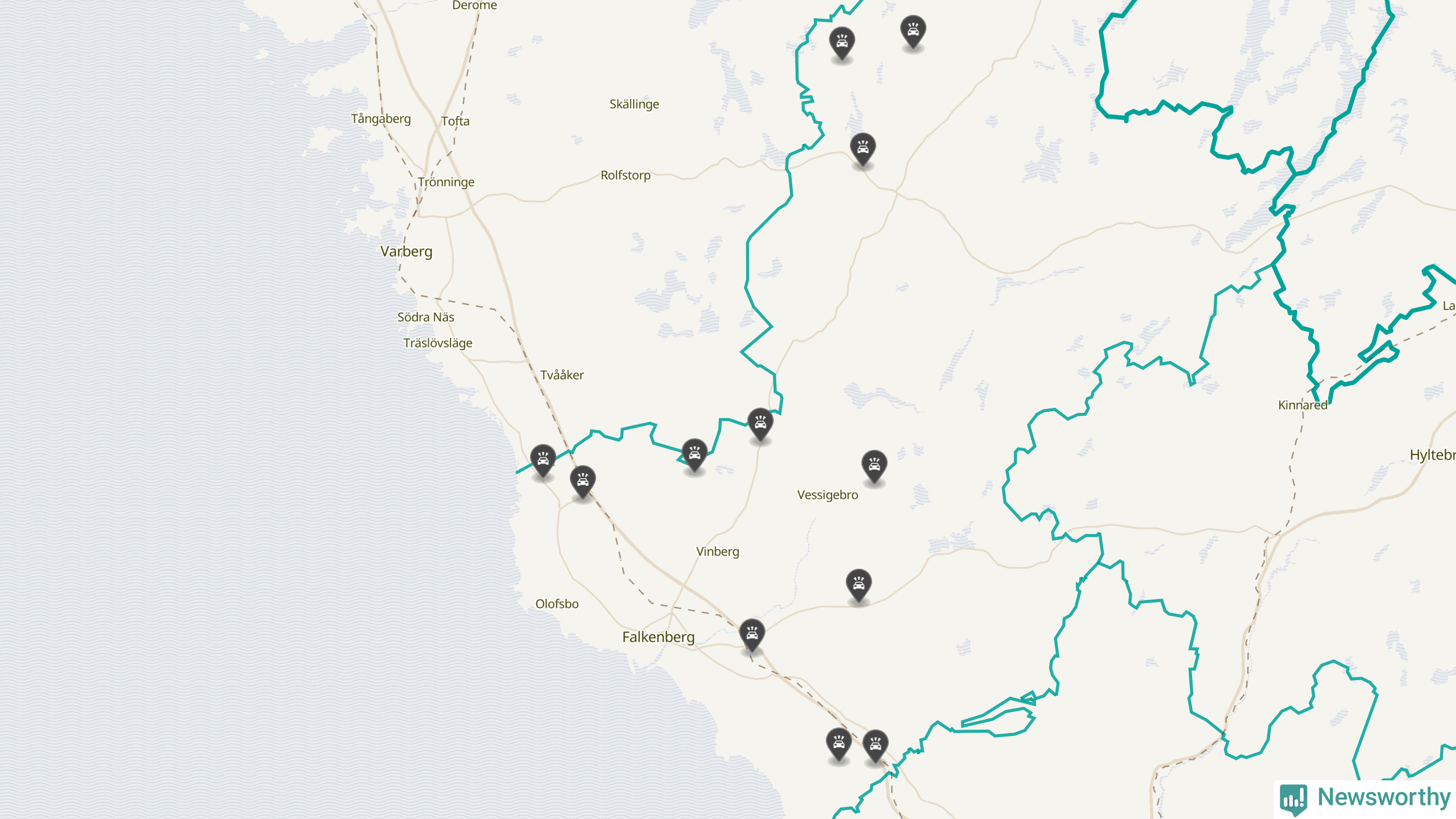 Karta över viltolyckor i Falkenbergs kommun