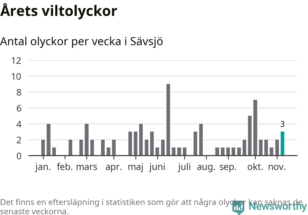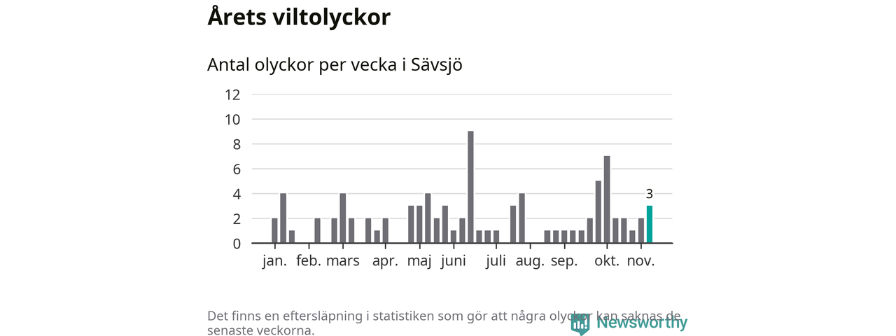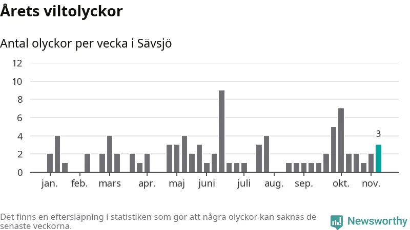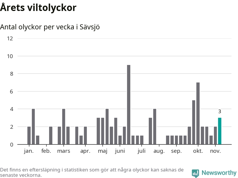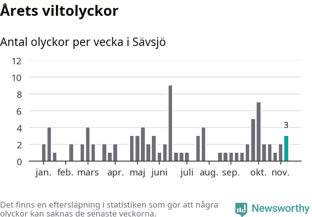 Hittills har tre viltolyckor rapporterats in i Sävsjö kommun från vecka 46. Se listan här.