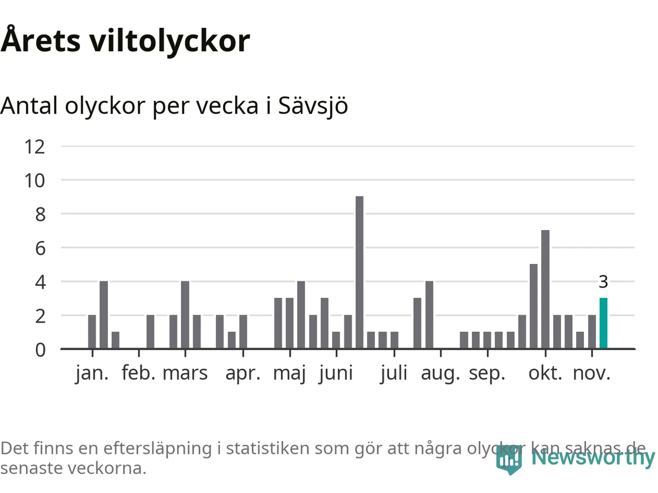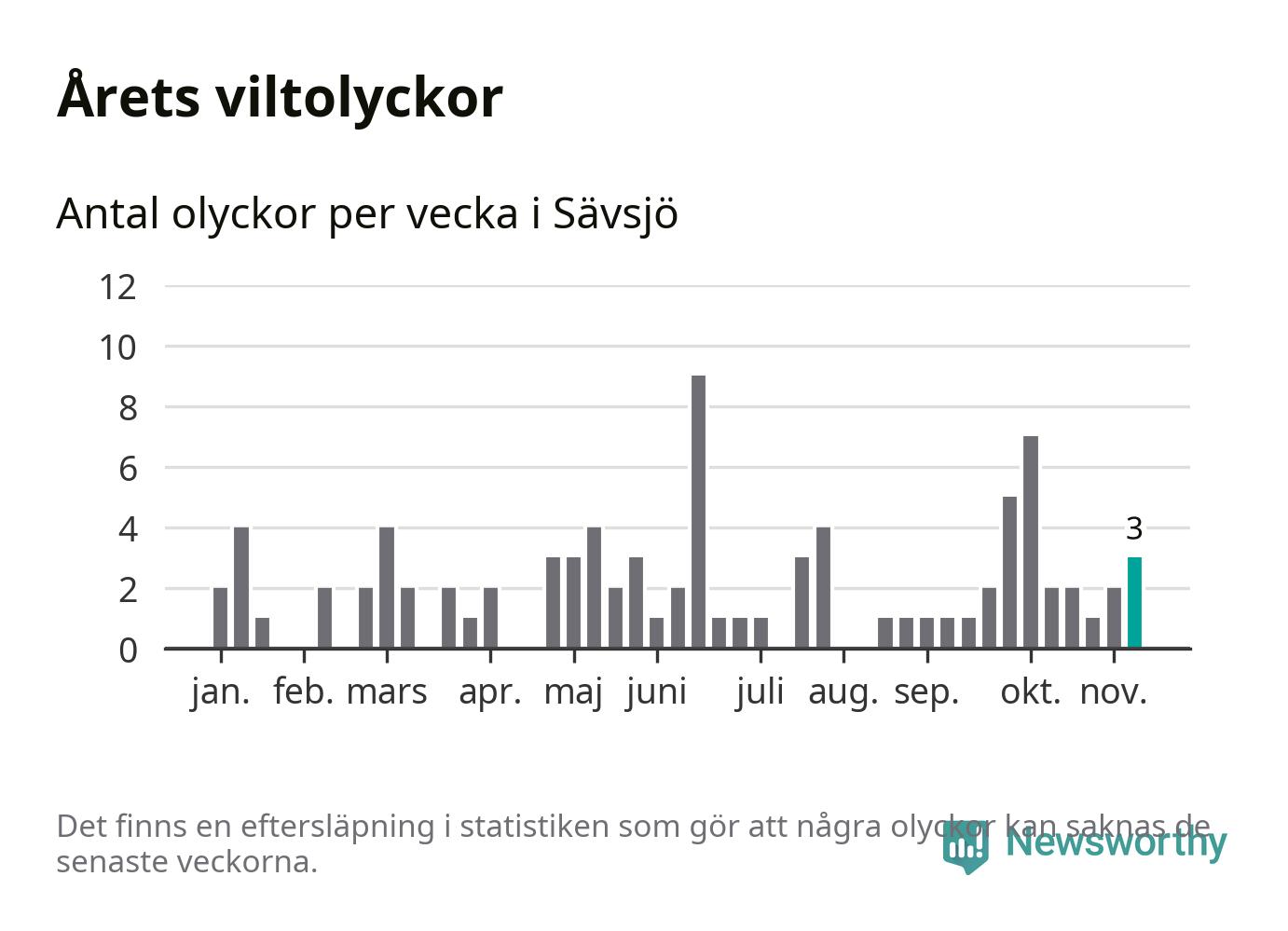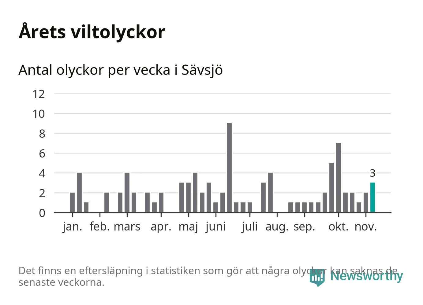 Hittills har tre viltolyckor rapporterats in i Sävsjö kommun från vecka 46. Se listan här.