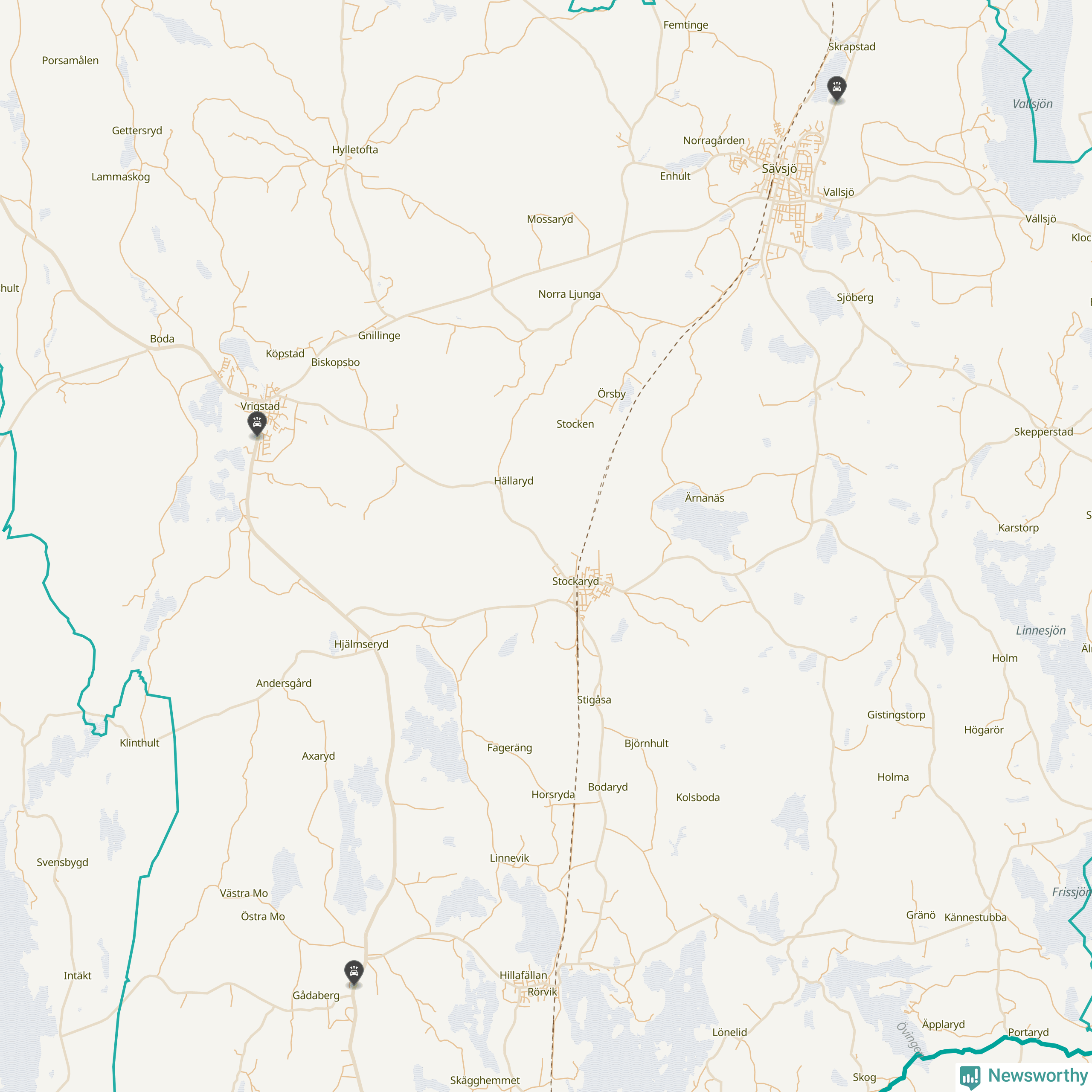 Karta över viltolyckor i Sävsjö kommun