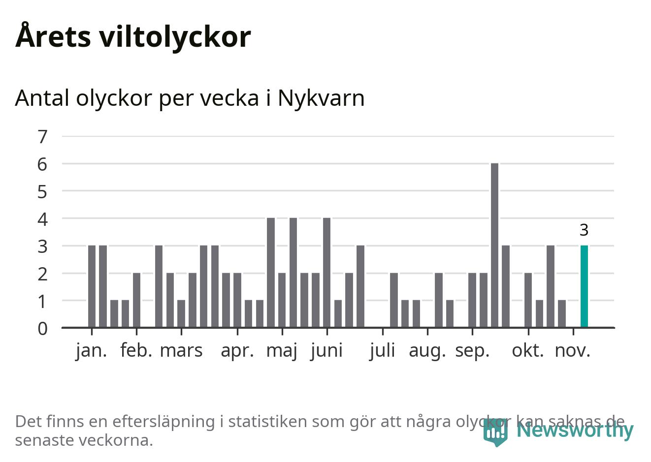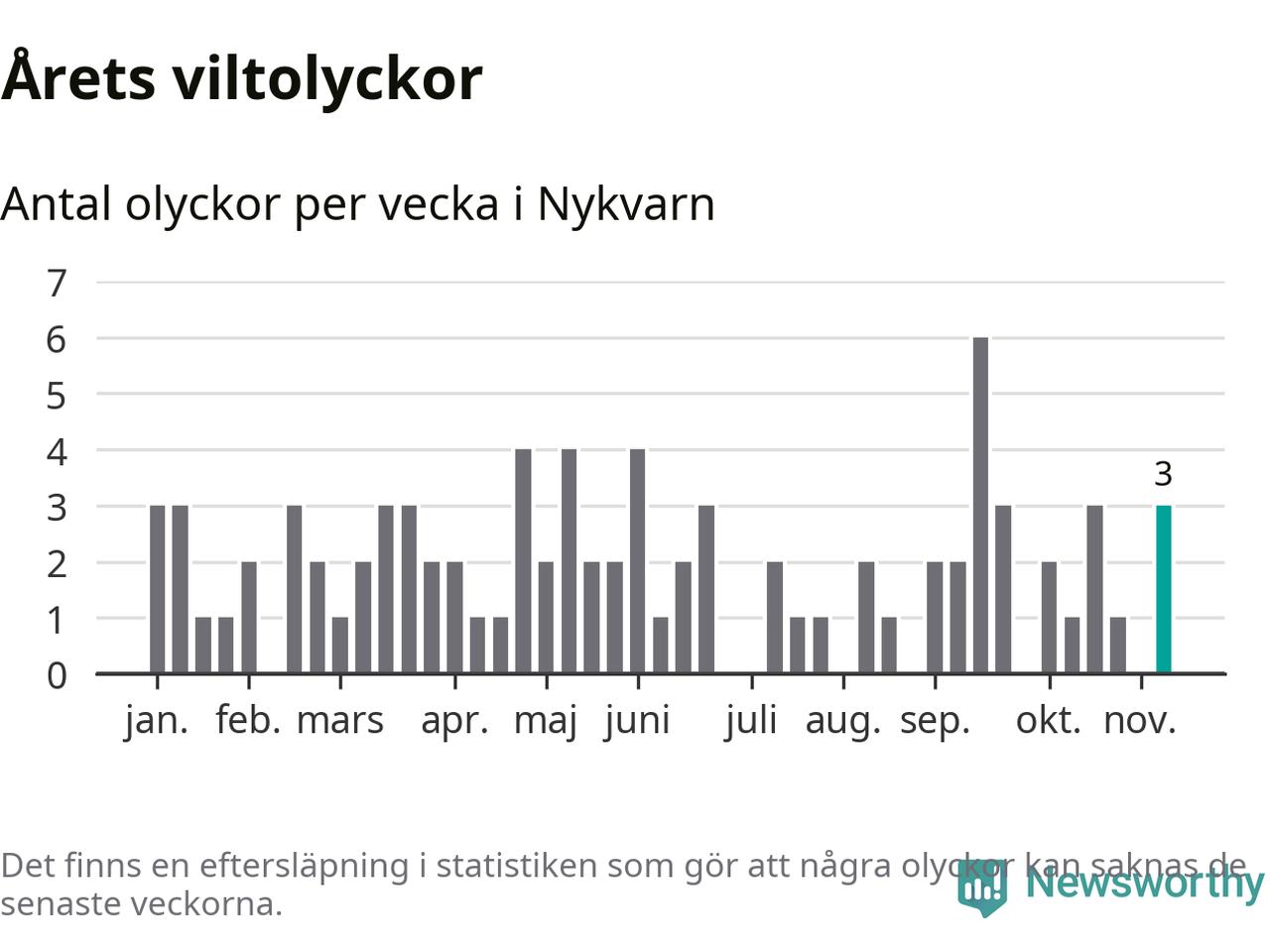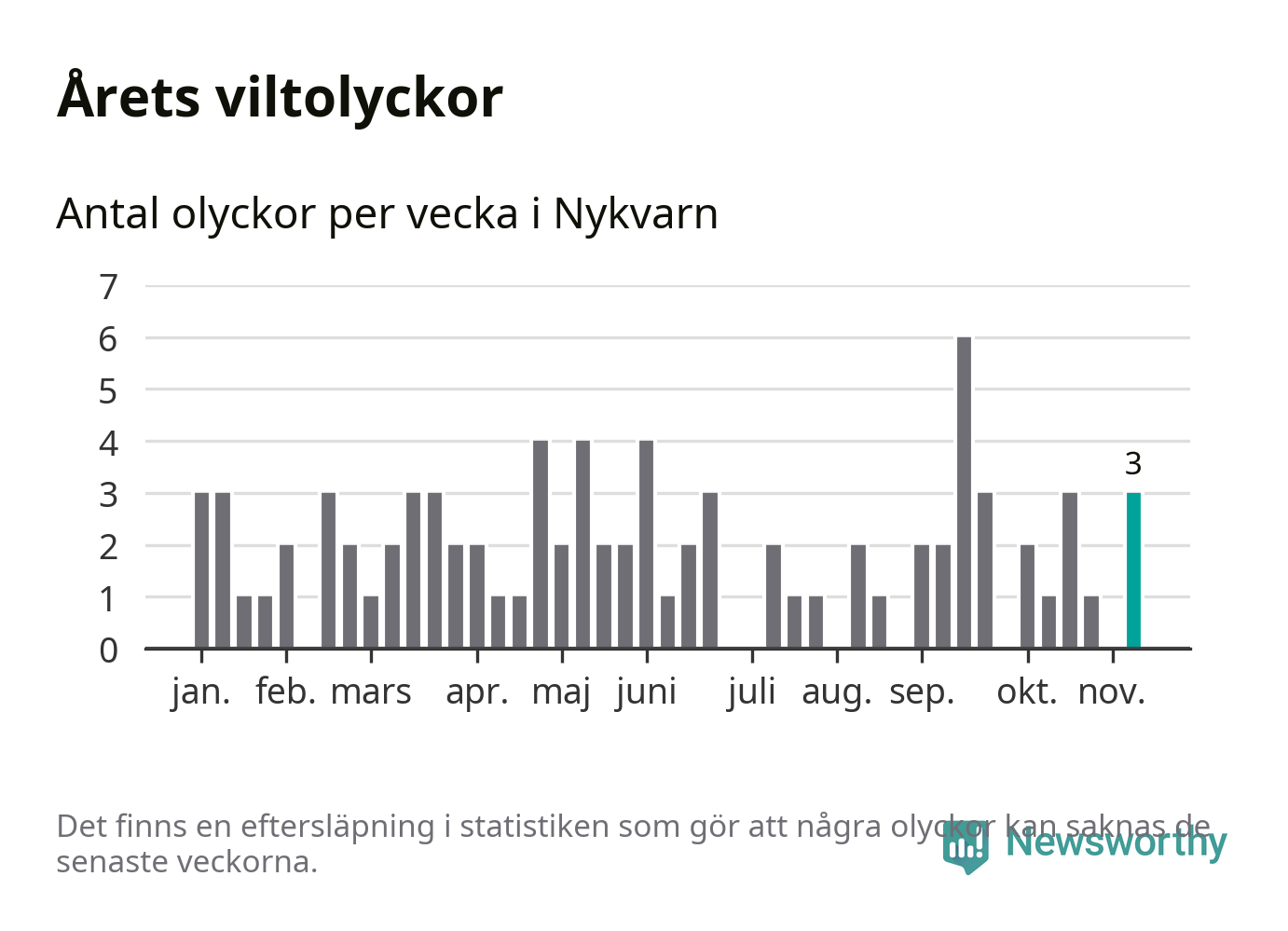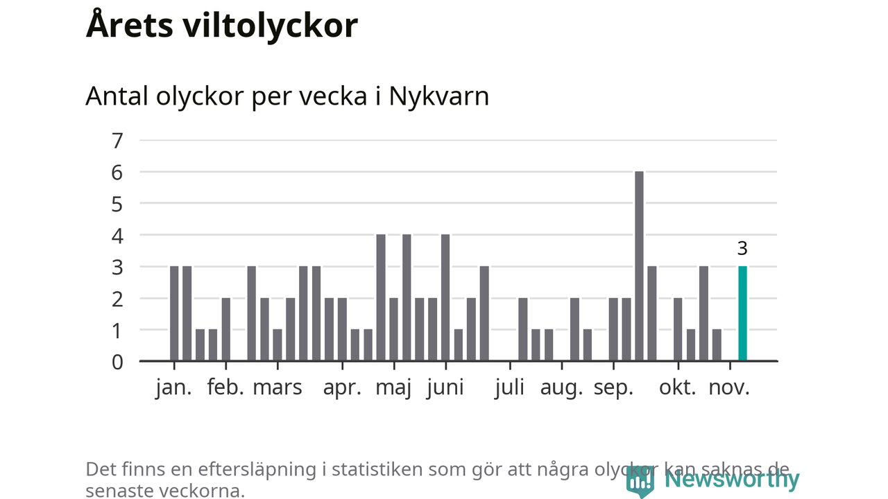 Hittills har tre viltolyckor rapporterats in i Nykvarns kommun från vecka 46. Se listan här.
