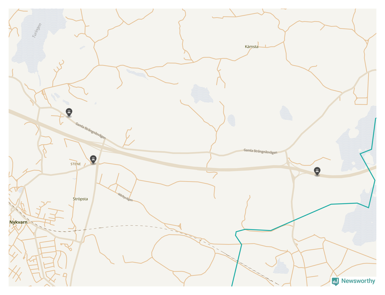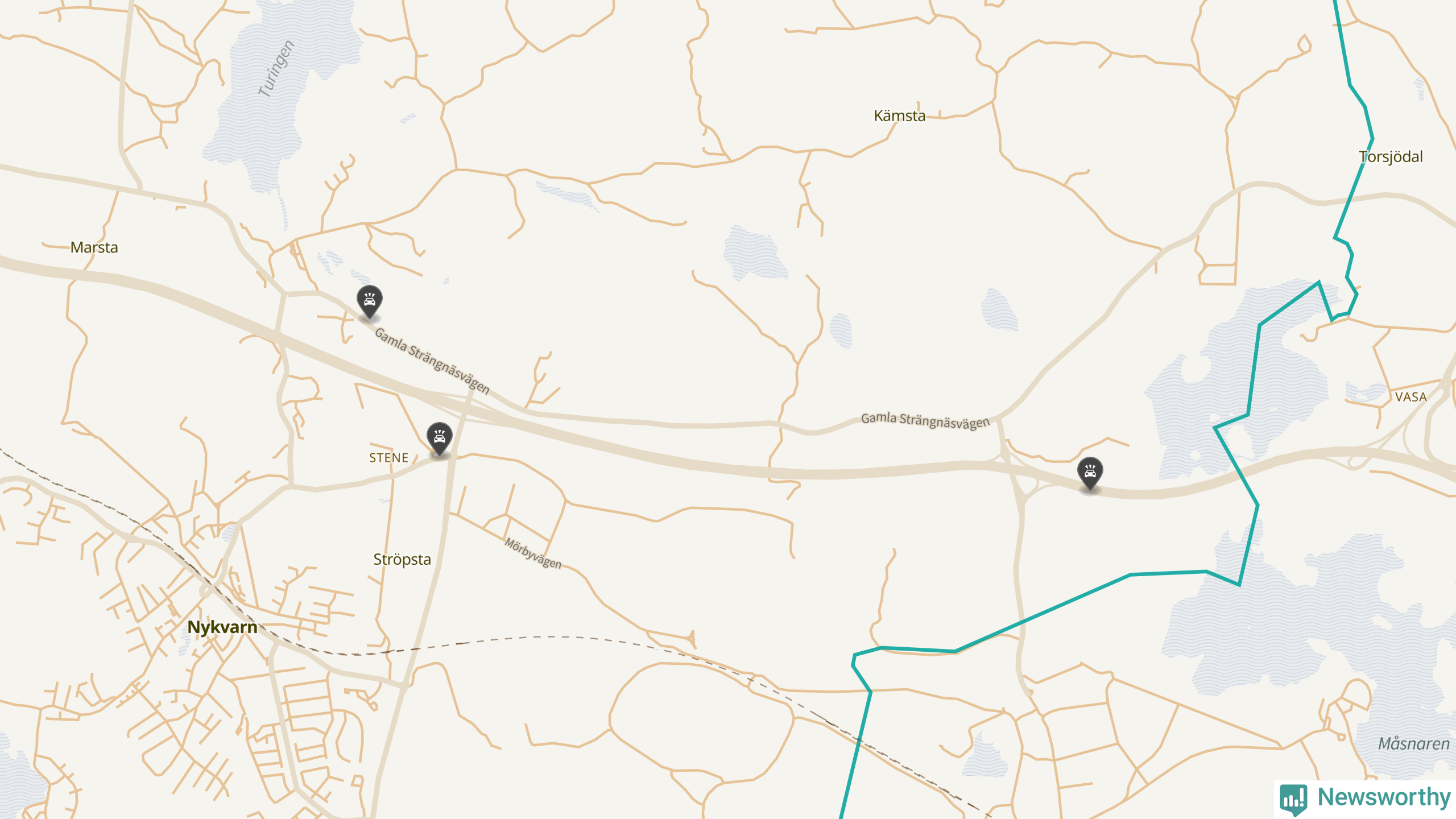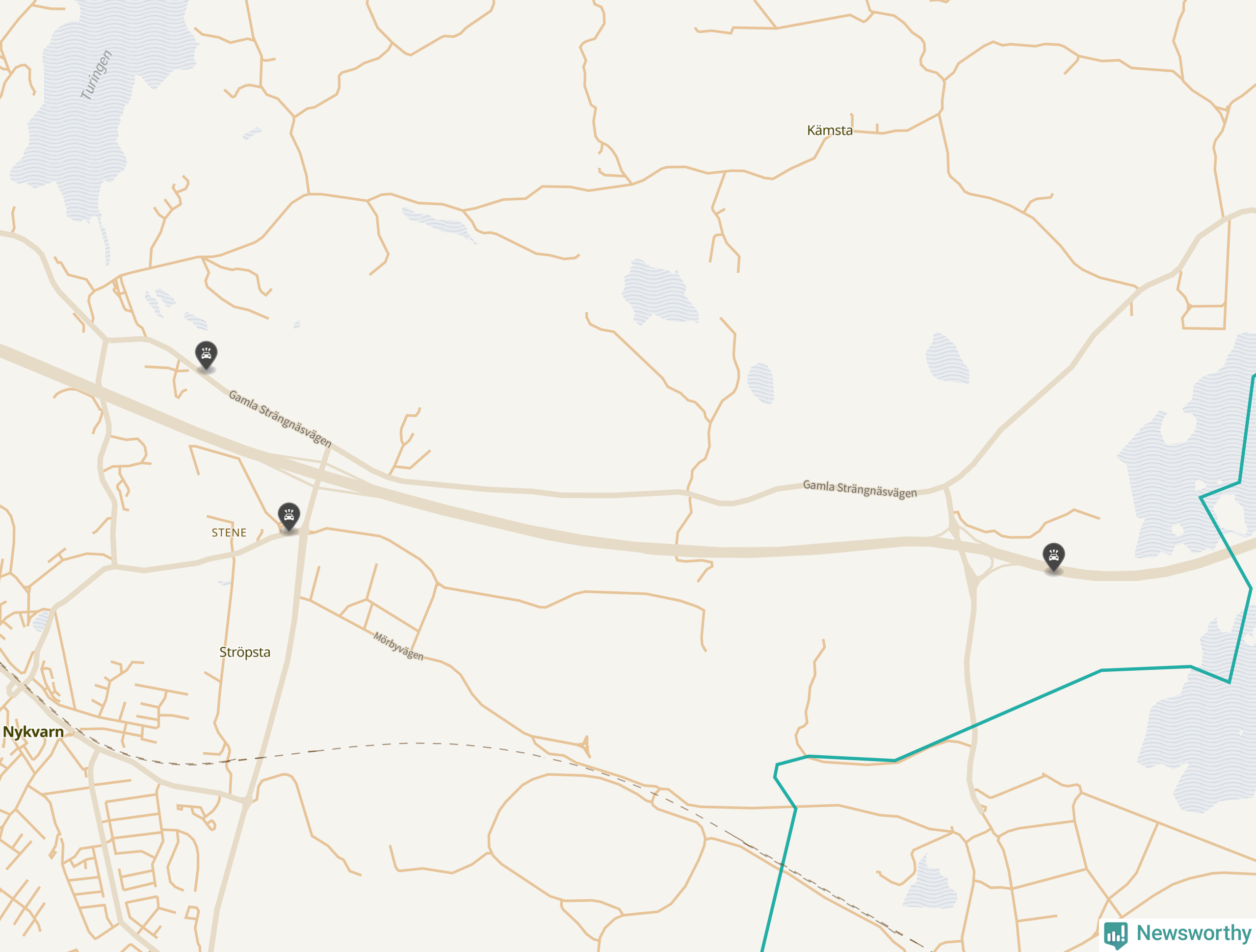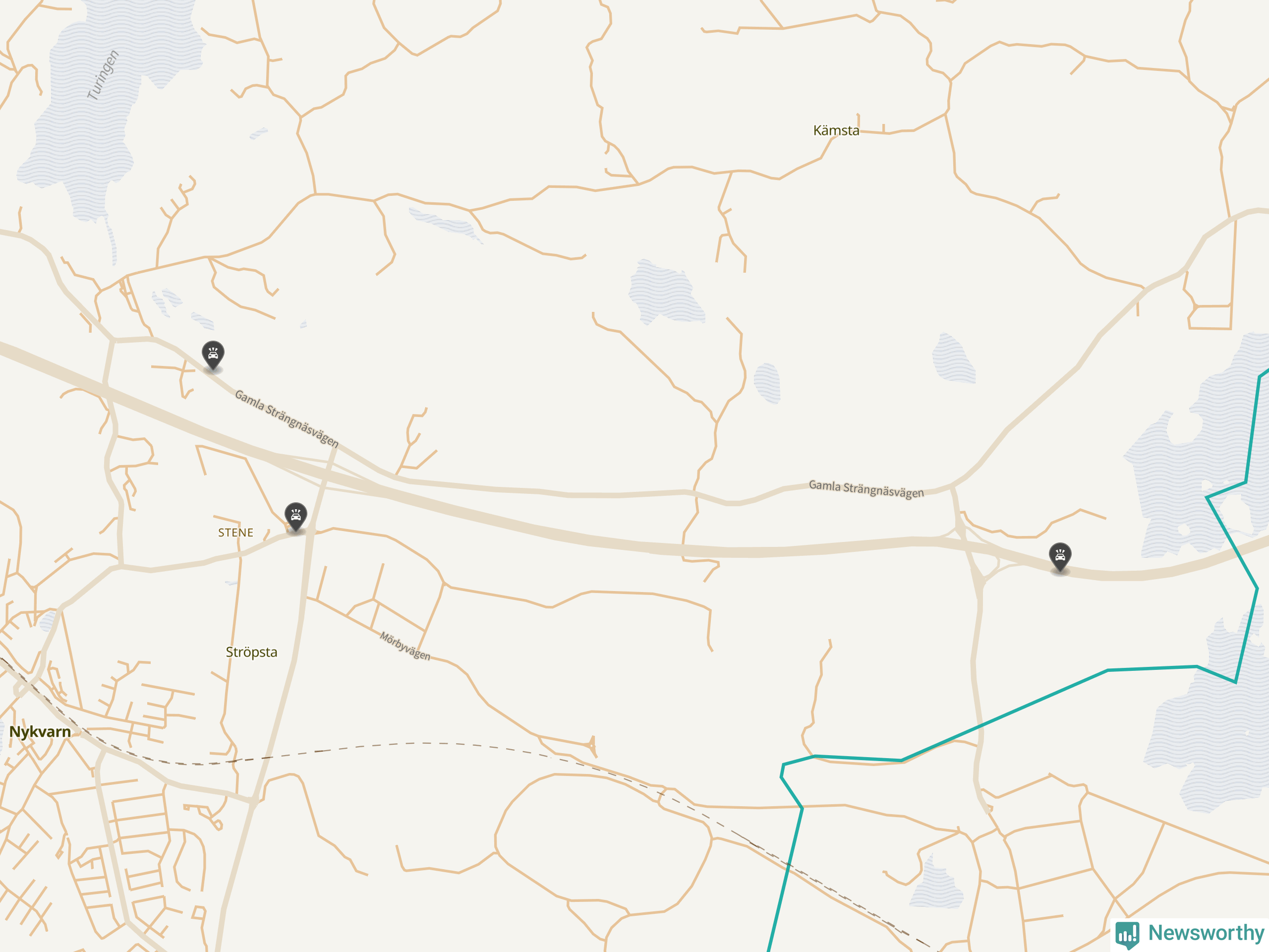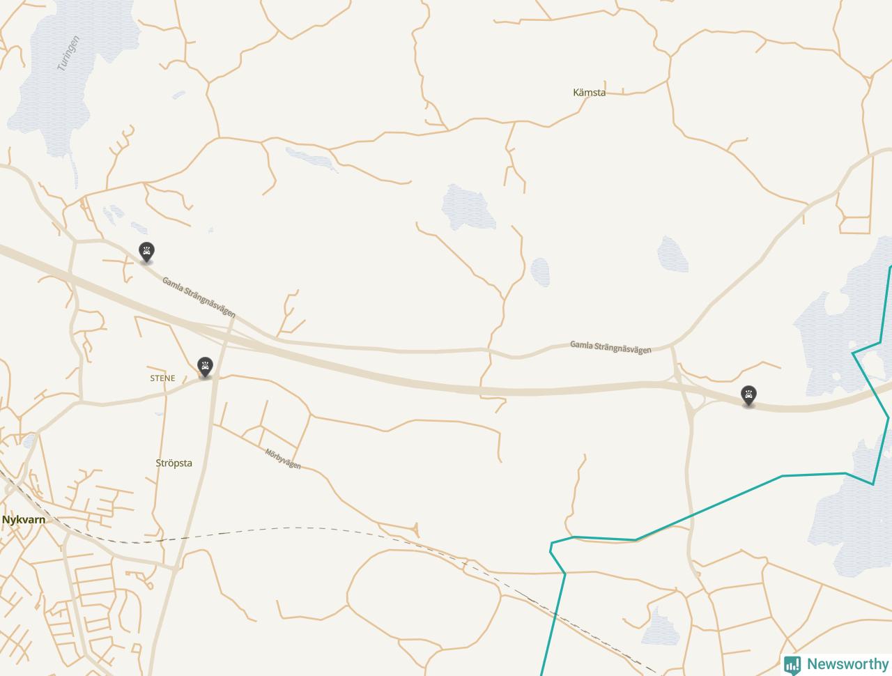 Karta: Förra veckans viltolyckor i Nykvarn