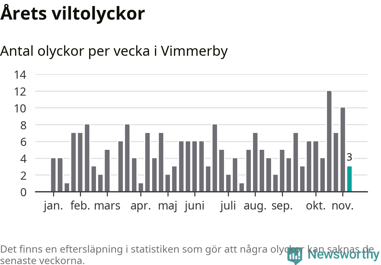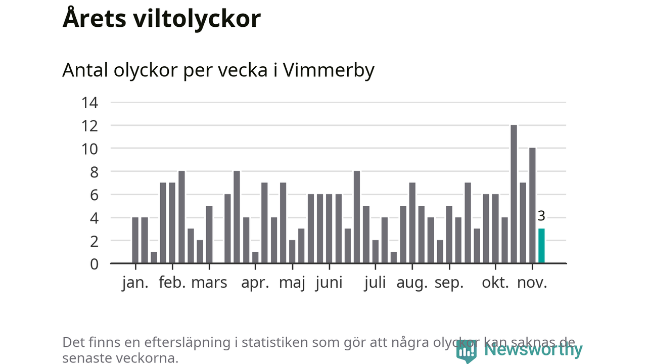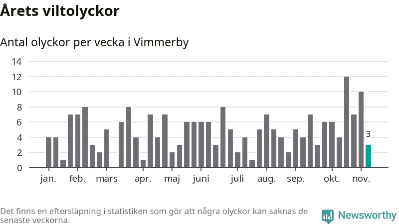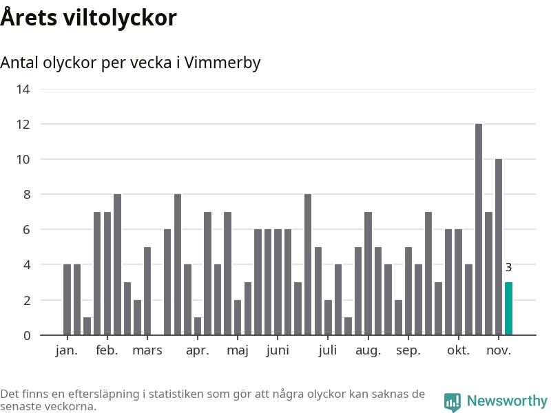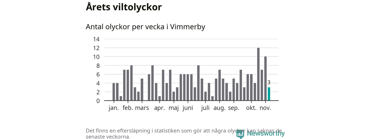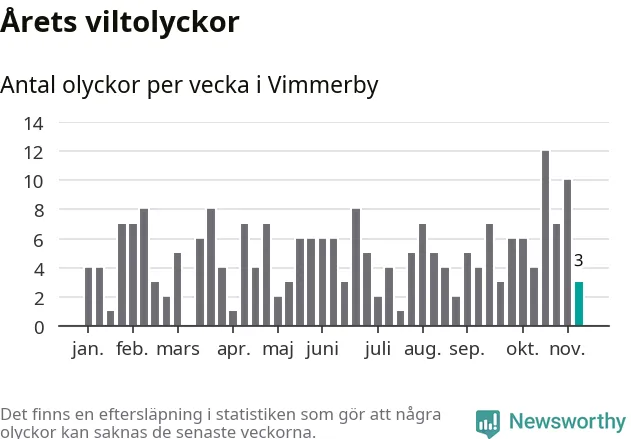 Hittills har tre viltolyckor rapporterats in i Vimmerby kommun från vecka 46. Se listan här.