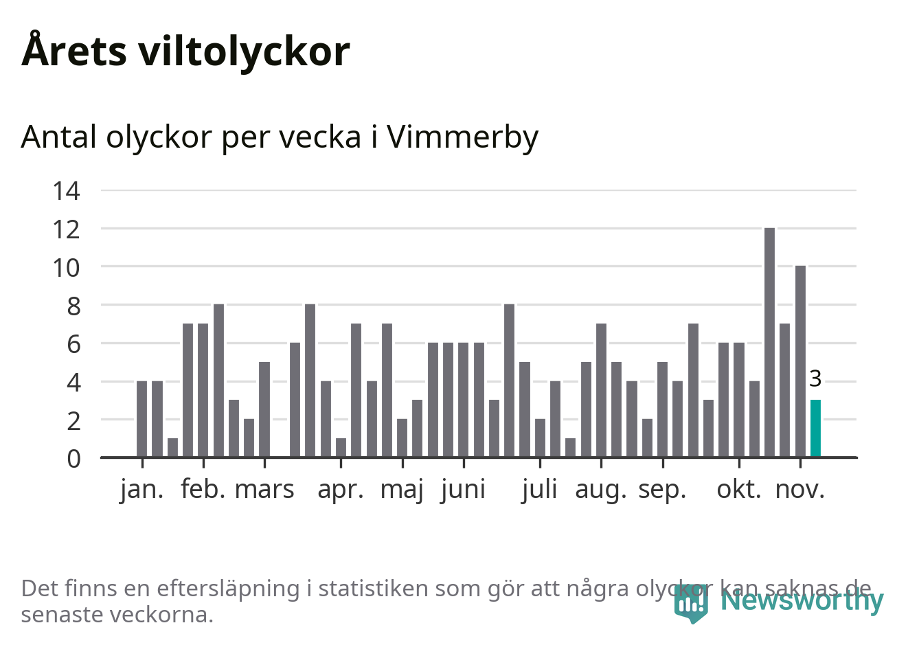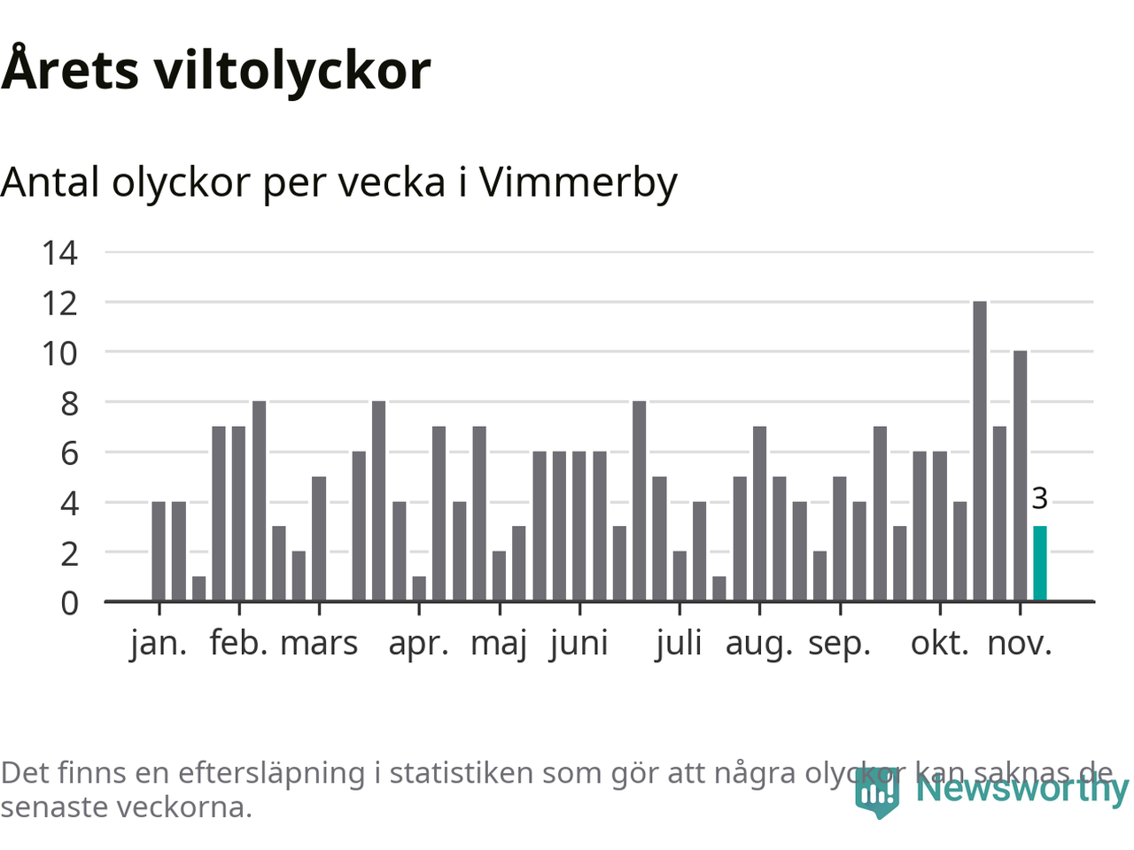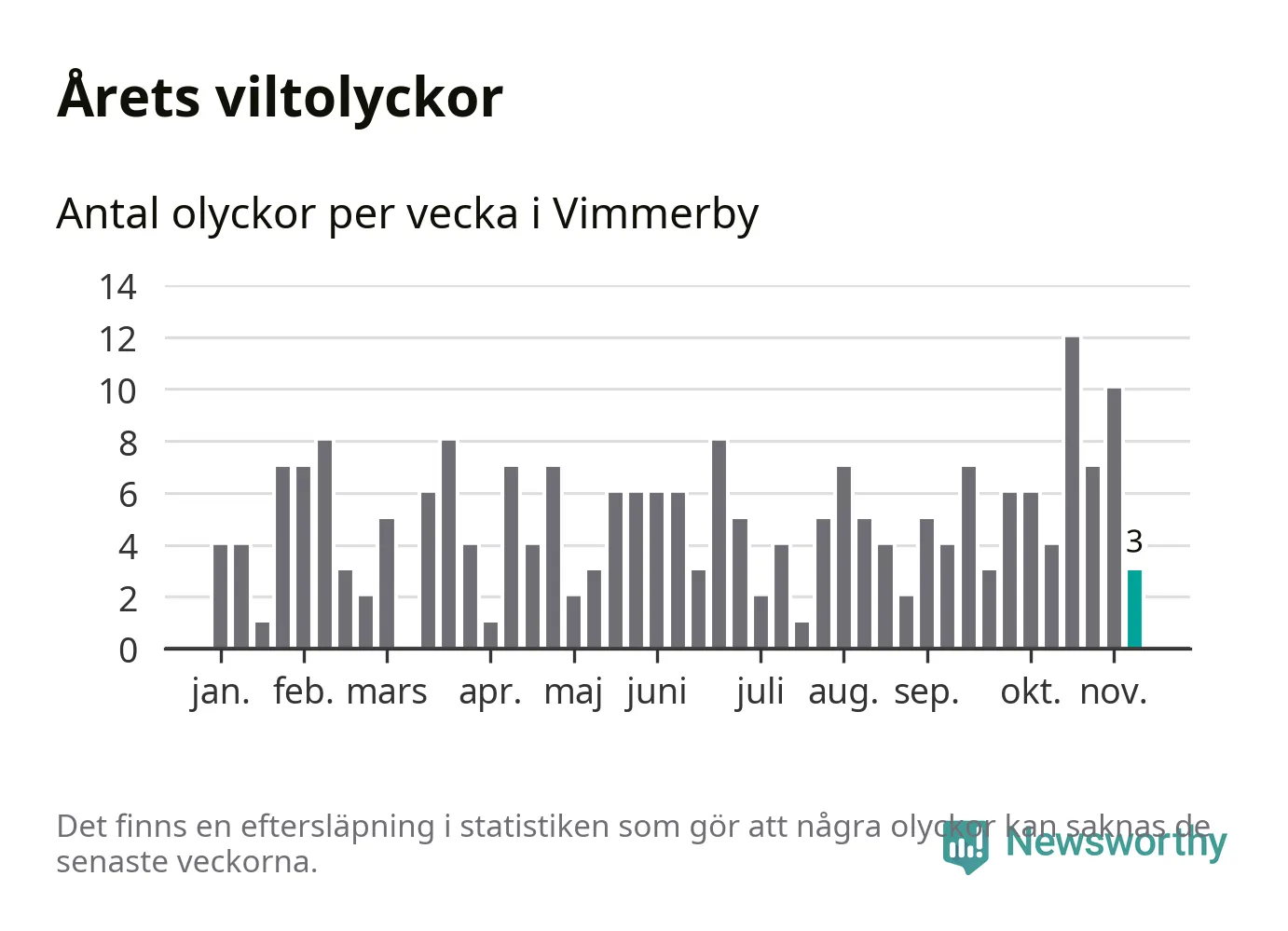 Hittills har tre viltolyckor rapporterats in i Vimmerby kommun från vecka 46. Se listan här.