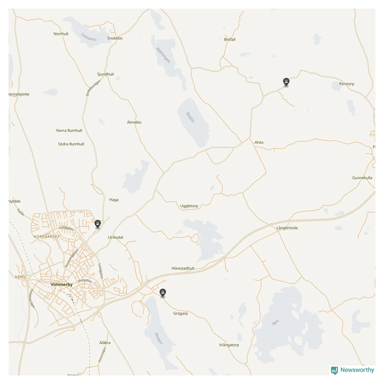 Tre viltolyckor i Vimmerby förra veckan – här inträffade de