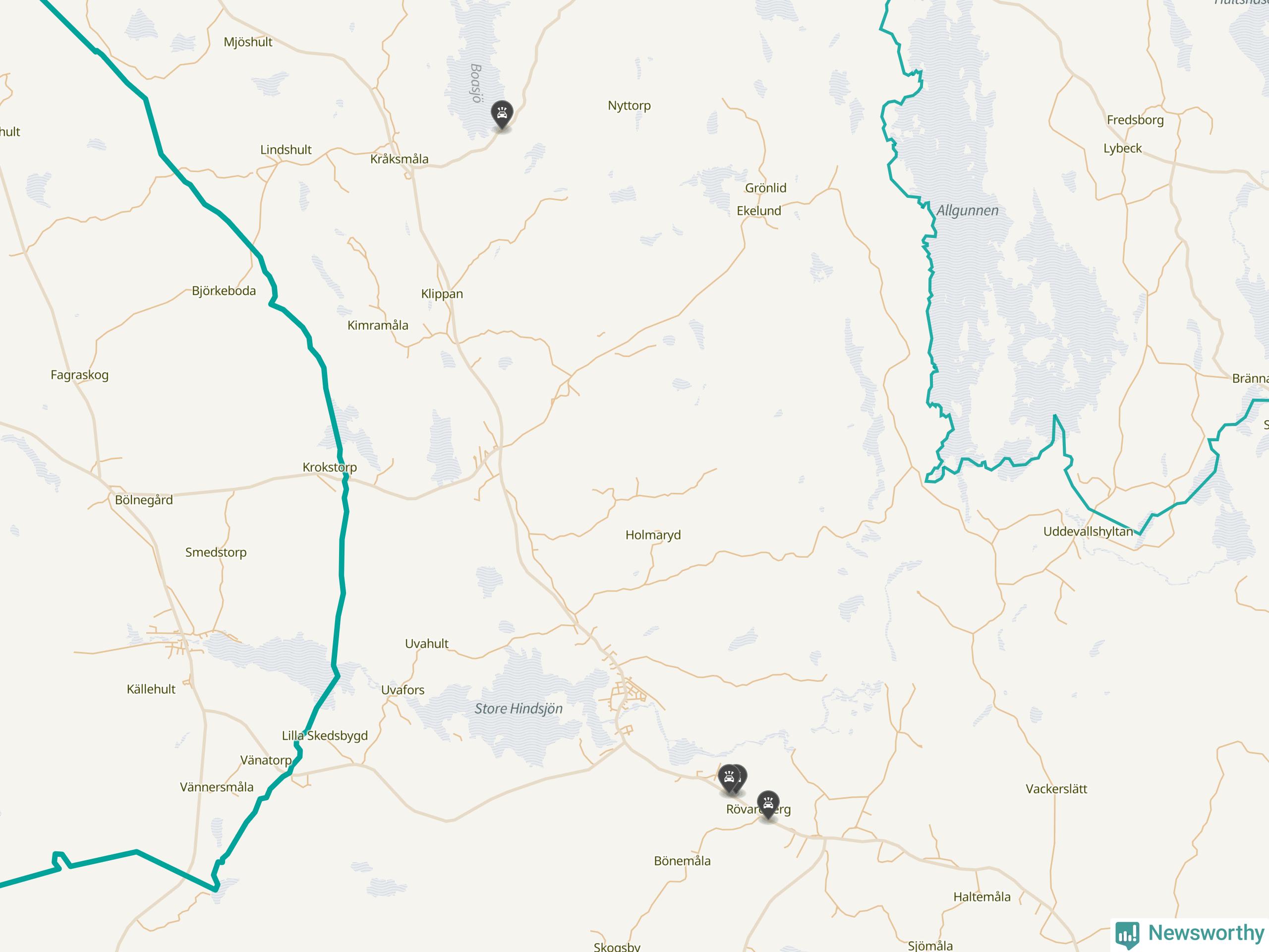 Karta över viltolyckor i Nybro kommun