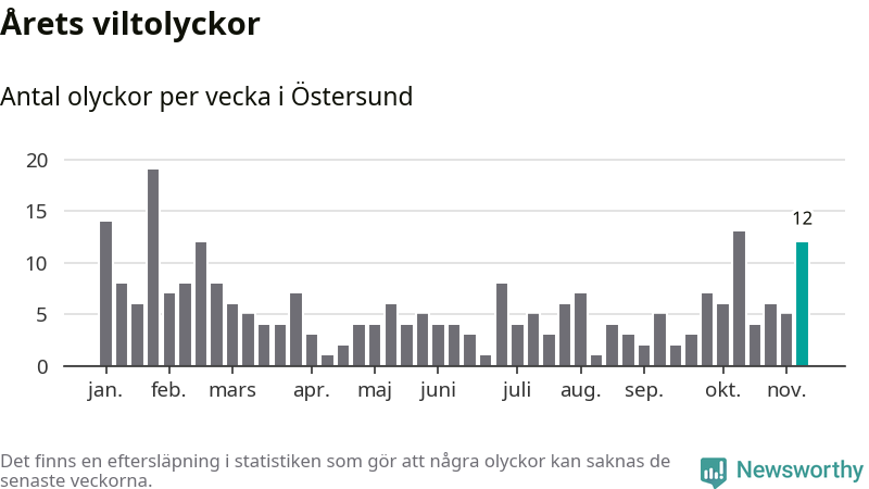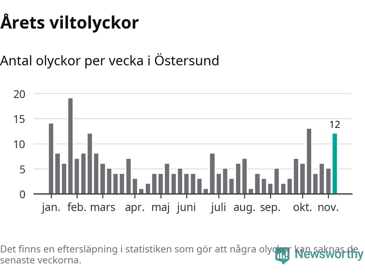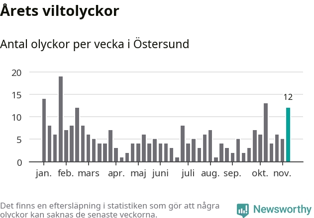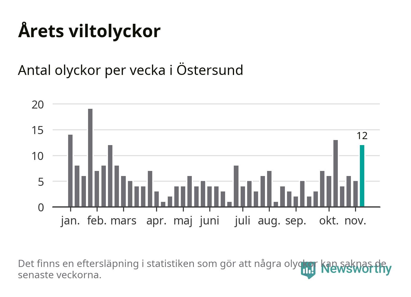 sett till de senaste tio årens statistik. I statistiken ingår inte olyckor med ren, som här räknas som tamdjur.