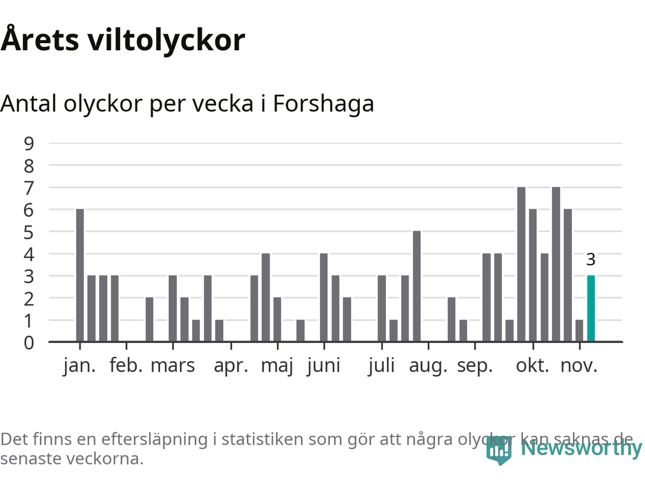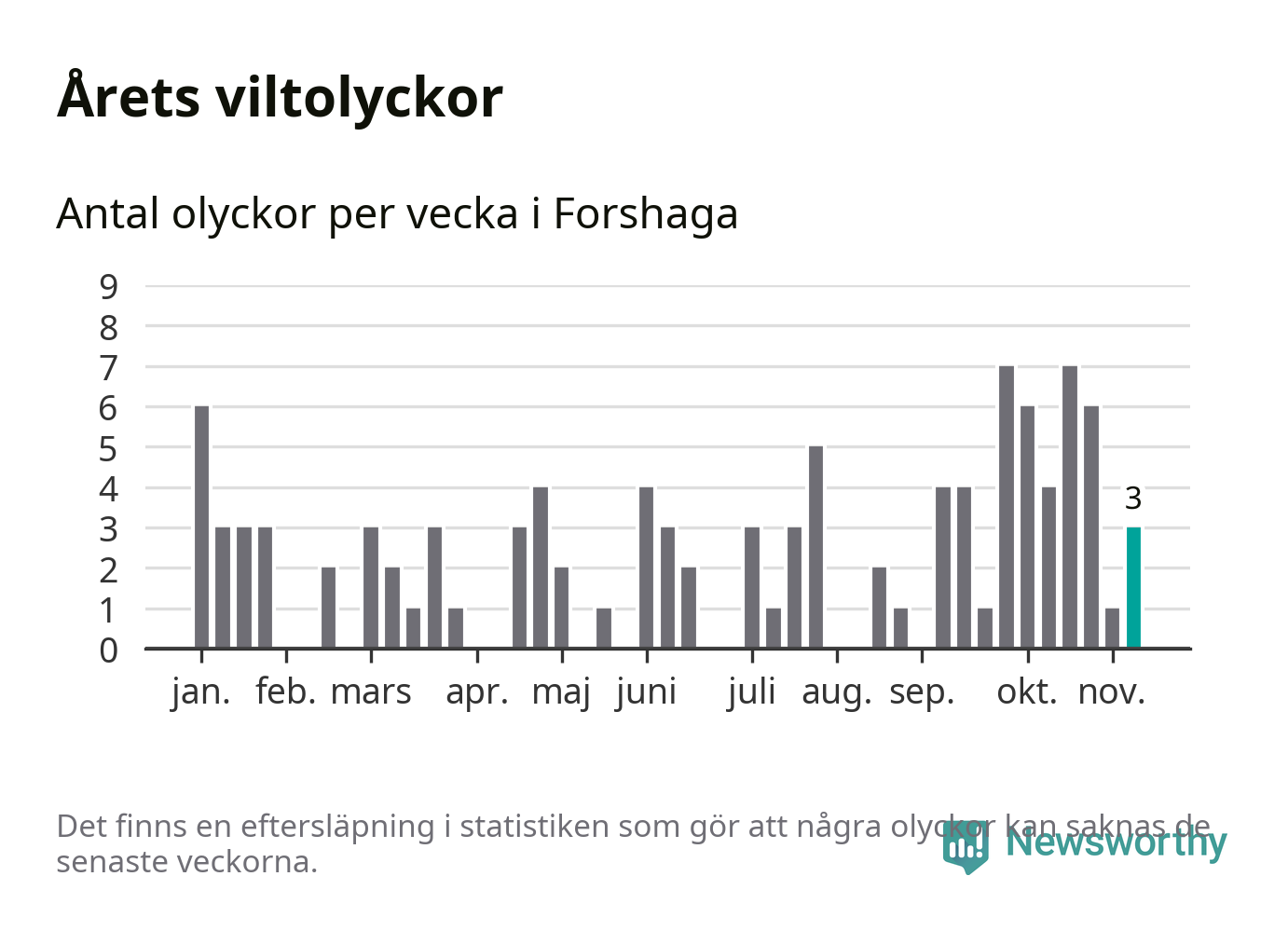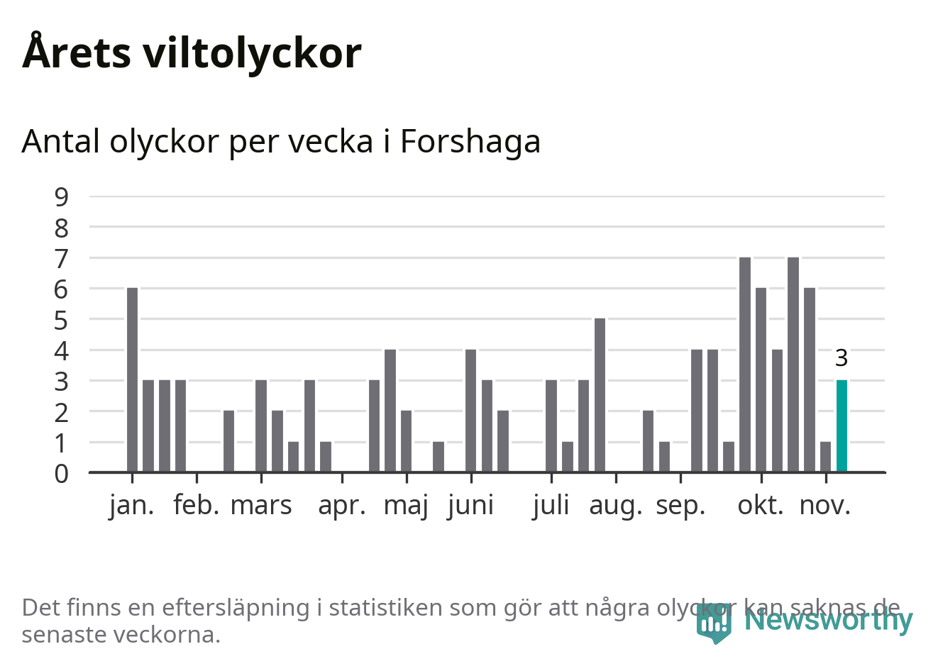 Hittills har tre viltolyckor rapporterats in i Forshaga kommun från vecka 46. Se listan här.