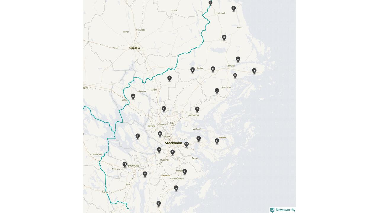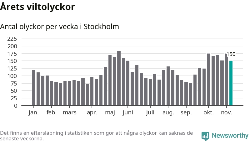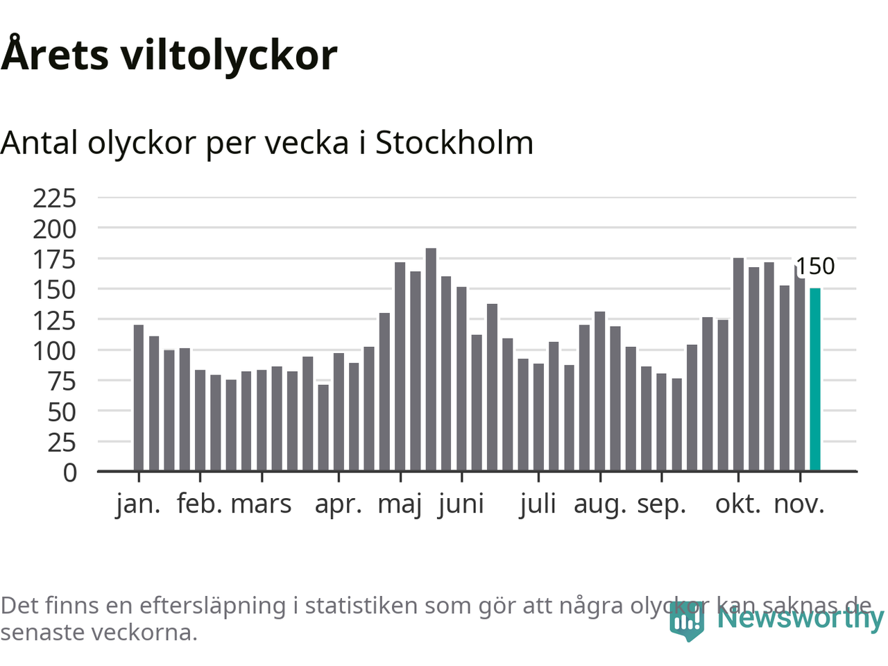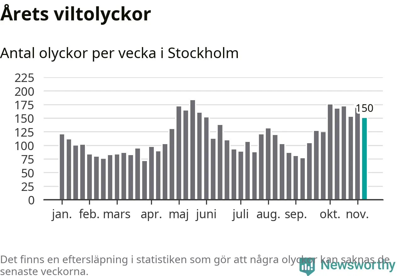 Hittills har 150 viltolyckor rapporterats in i Stockholms län från vecka 46. Se listan här.