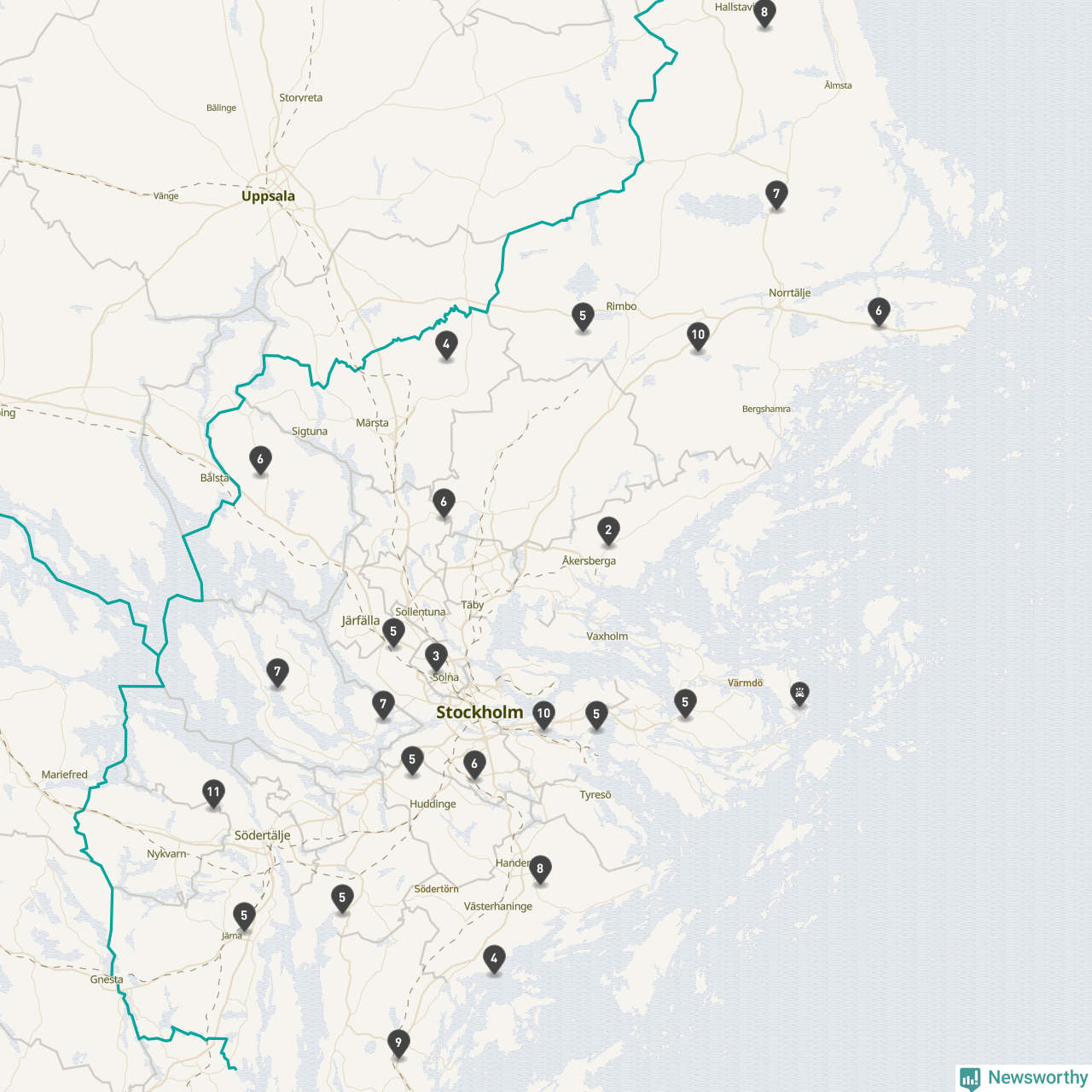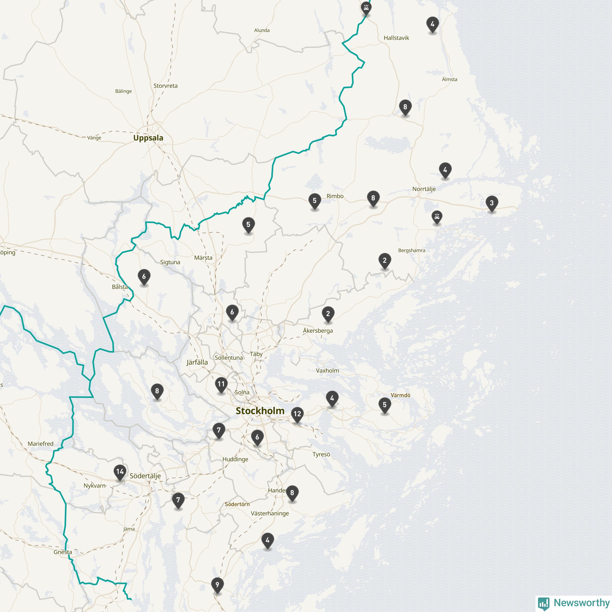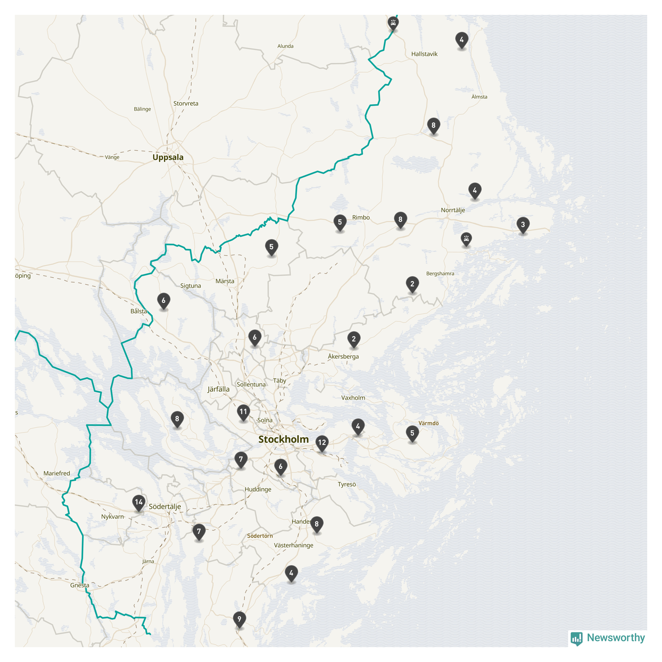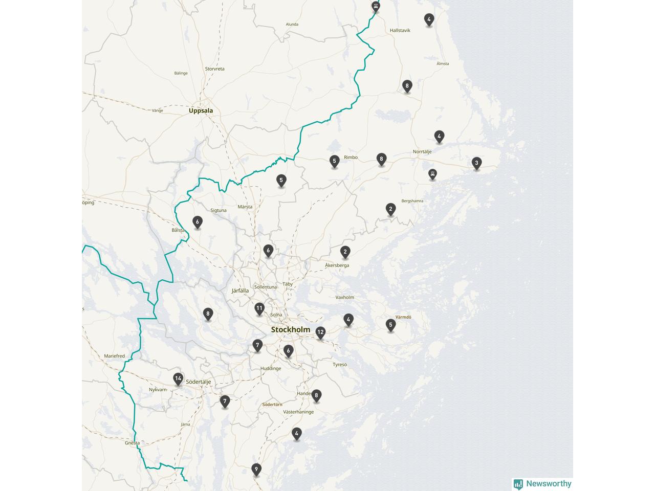 Hittills har 150 viltolyckor rapporterats in i Stockholms län från vecka 46. Se listan här.