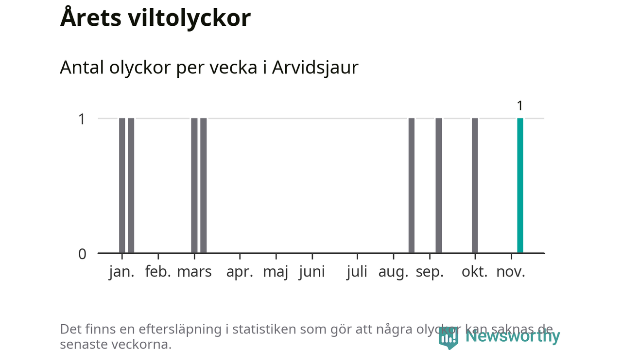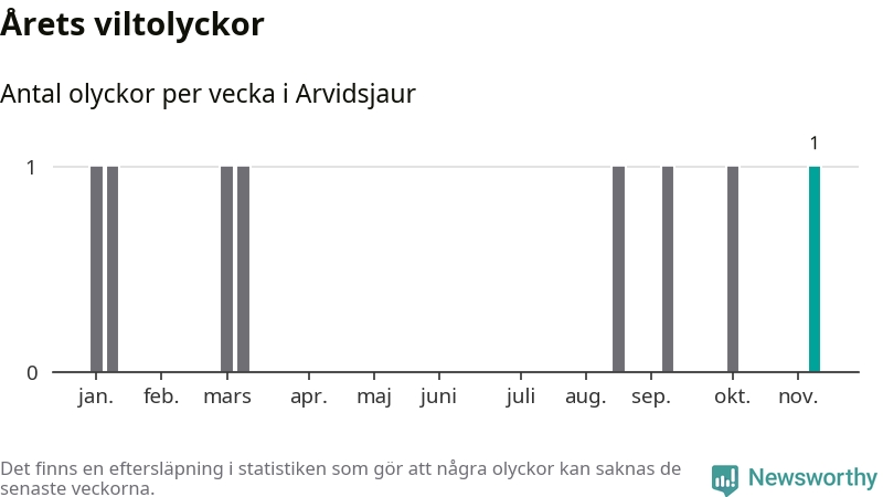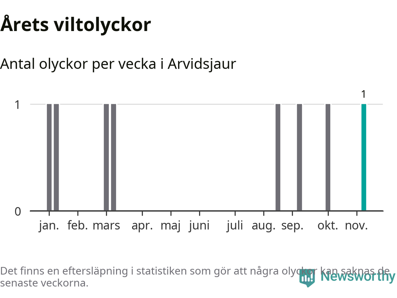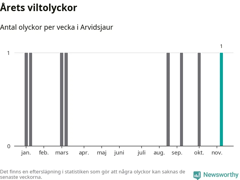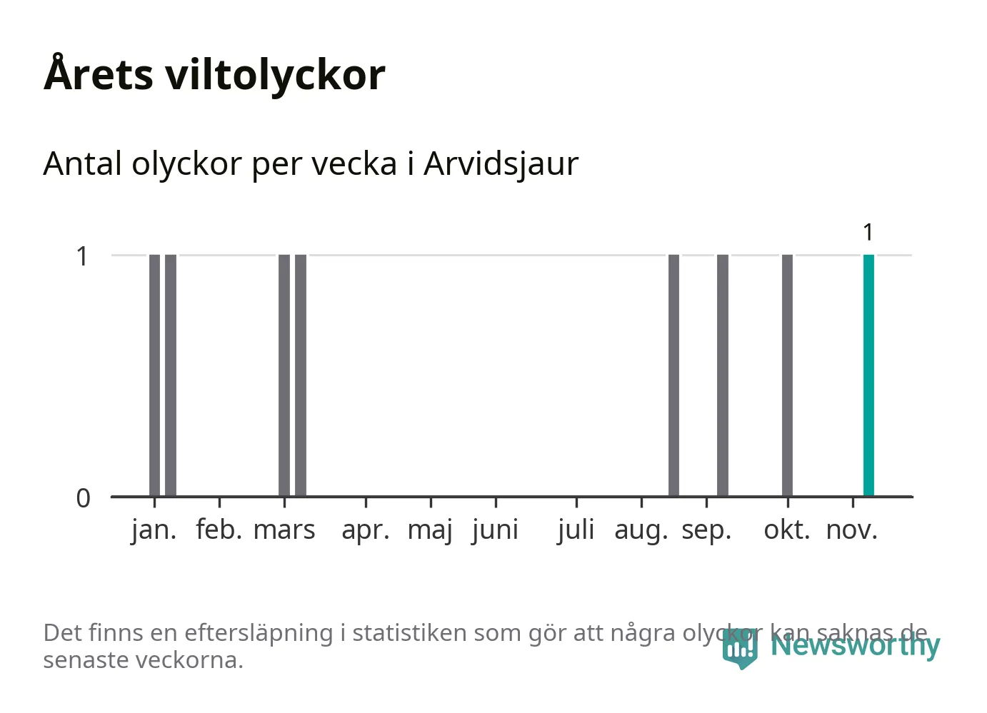 Från förra veckan (vecka 46) har hittills en viltolycka rapporterats in i Arvidsjaurs kommun.