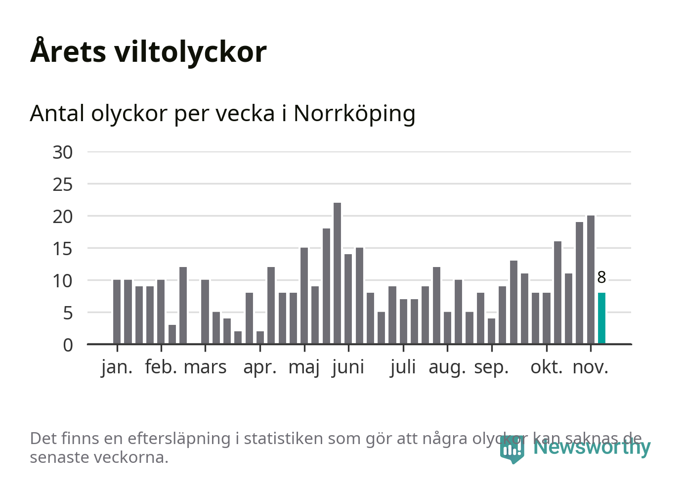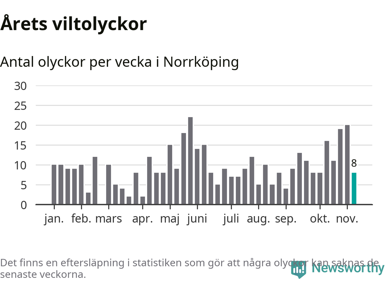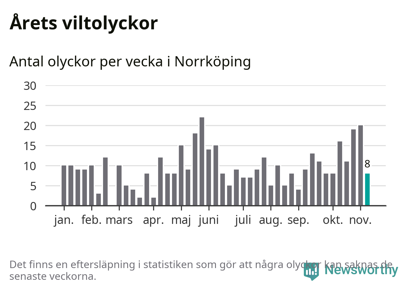 Newsworthy är en nyhetssajt som gör lokal journalistik baserat på data. Vi är datajournalister som analyserar och tolkar världen på siffror, snarare än tyckande.