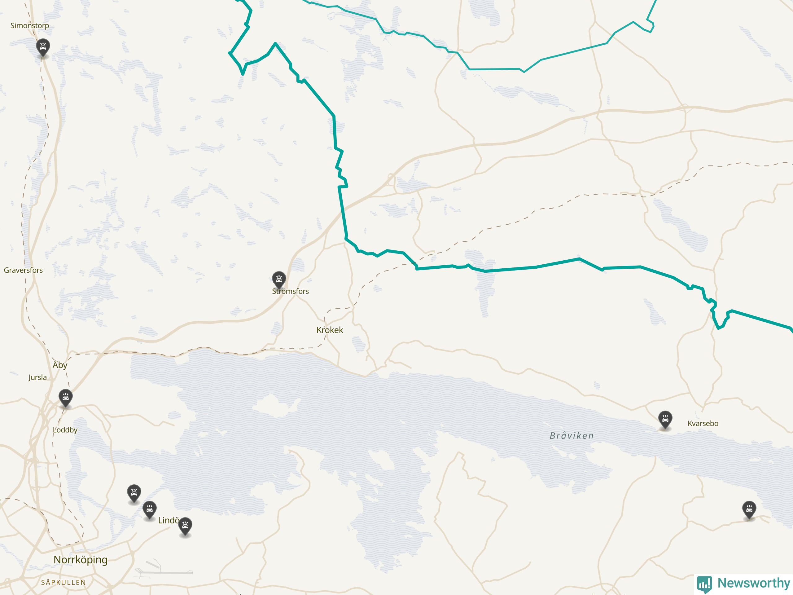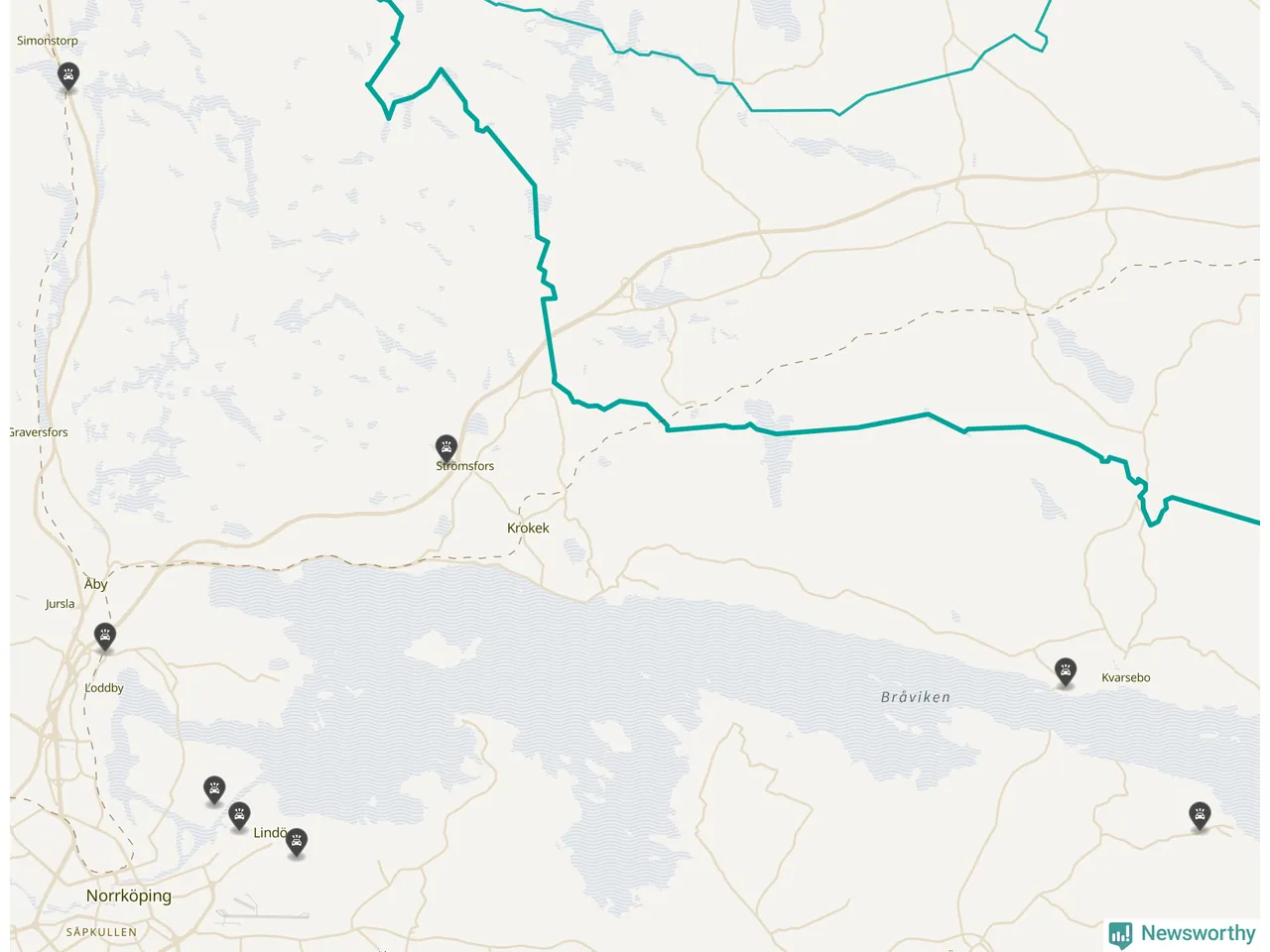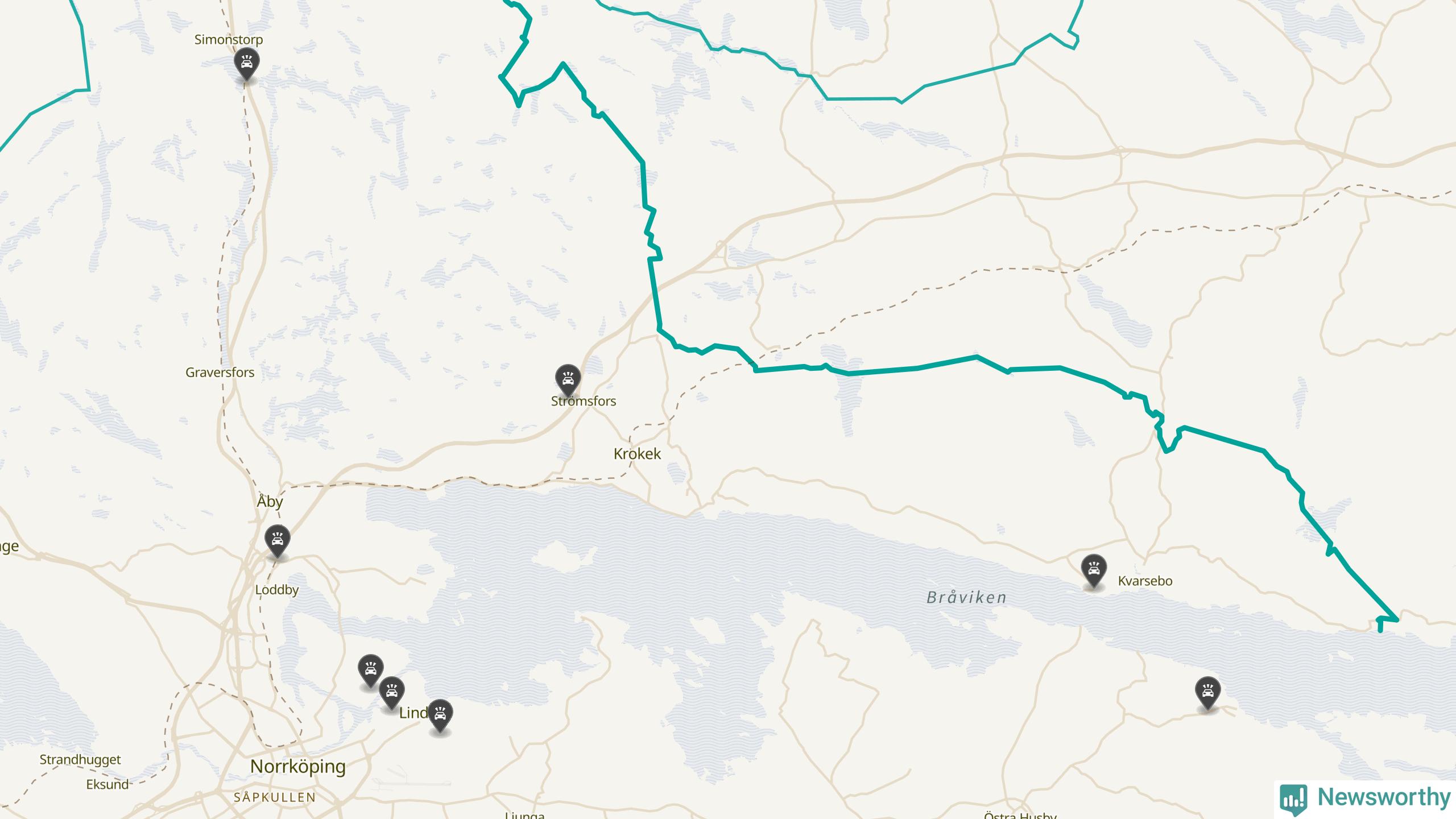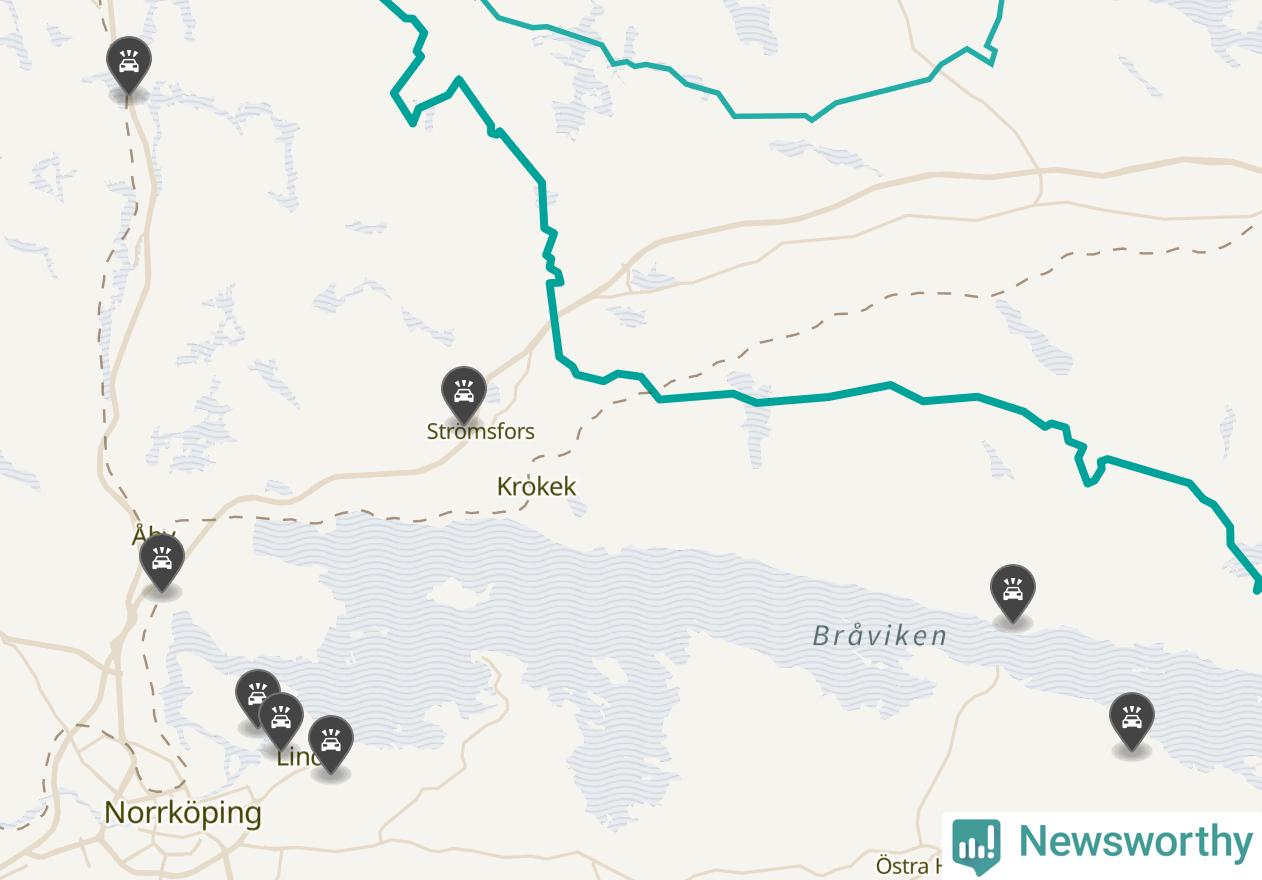 Karta: Förra veckans viltolyckor i Norrköping