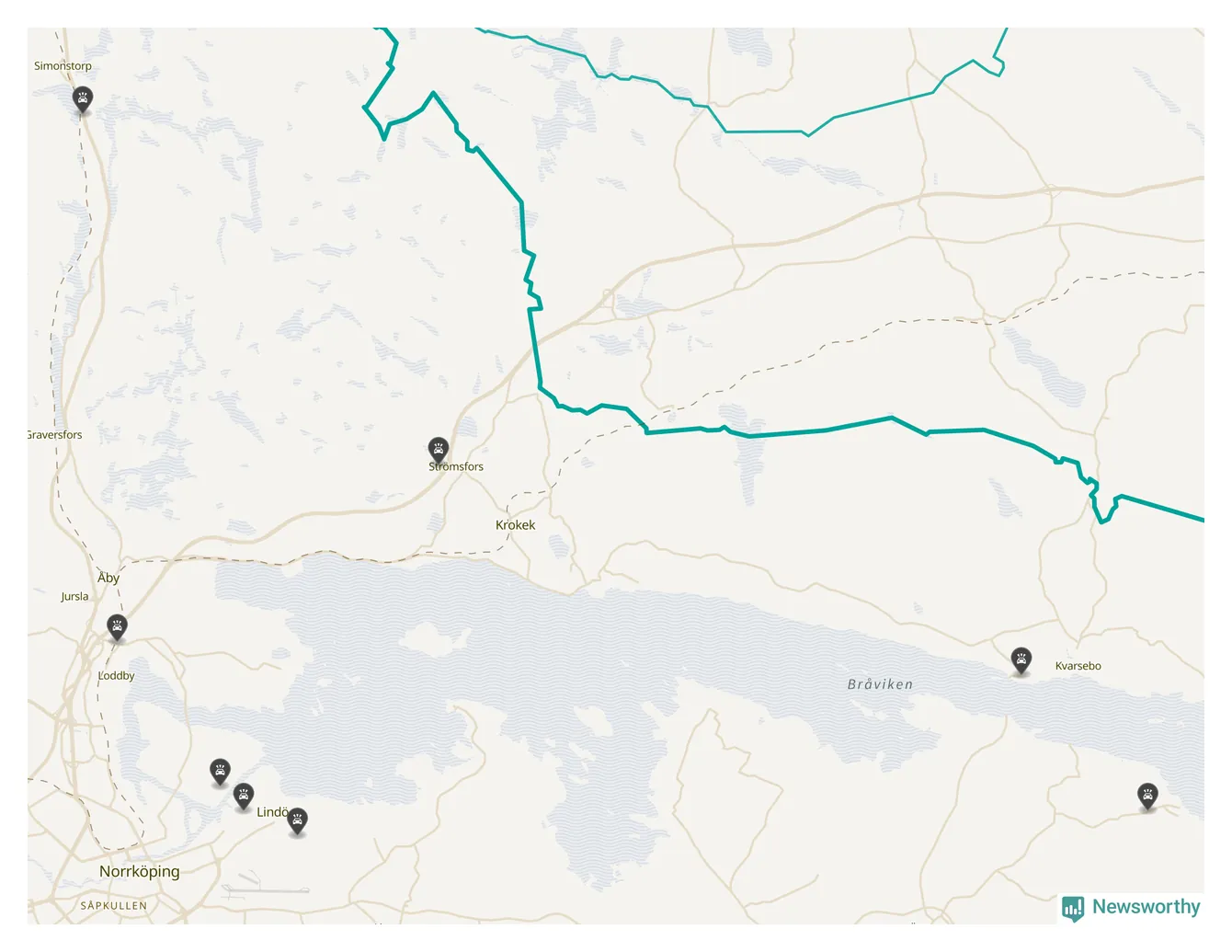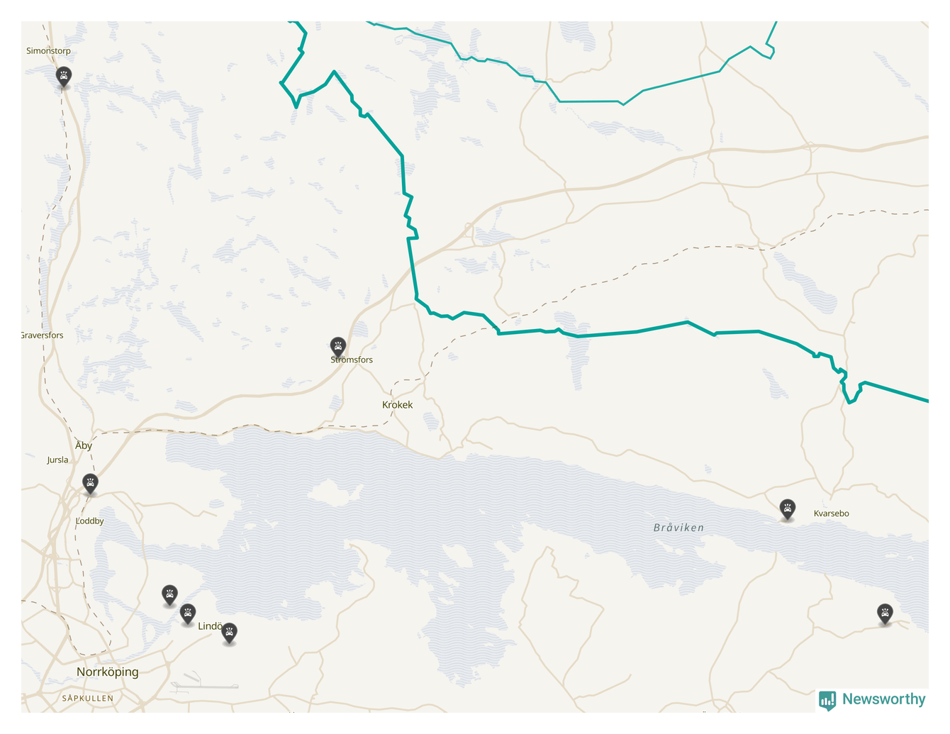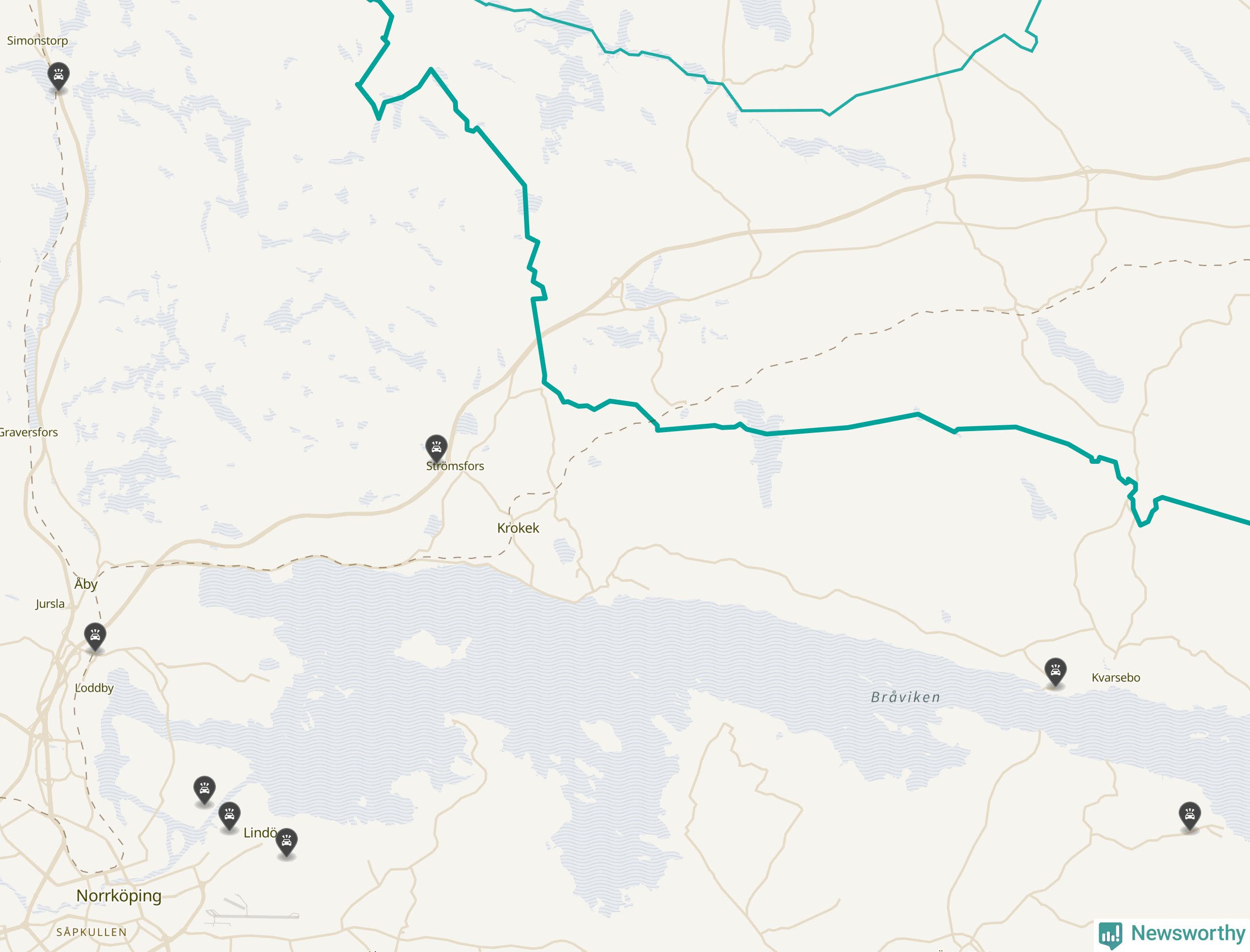 Karta: Förra veckans viltolyckor i Norrköping