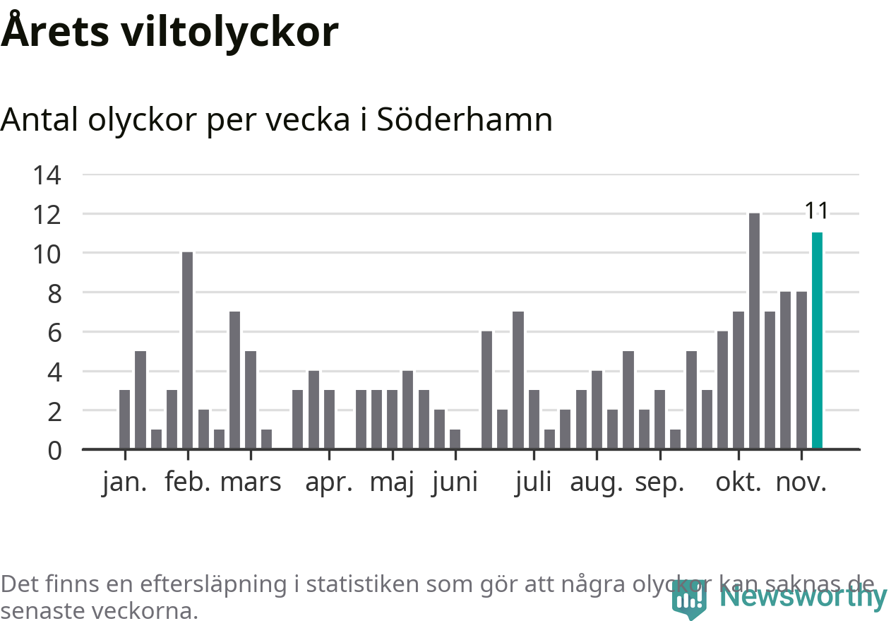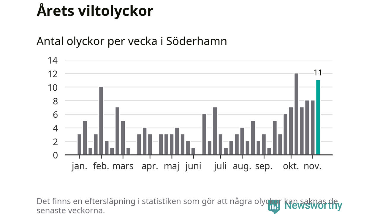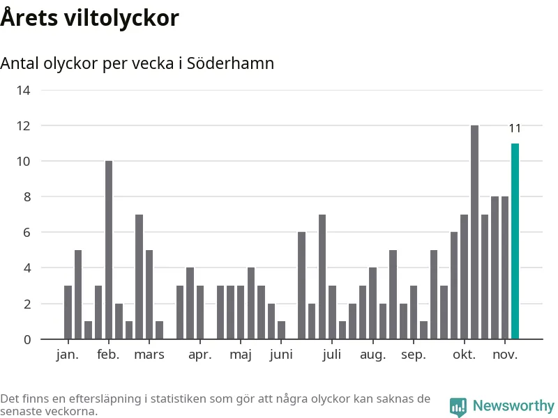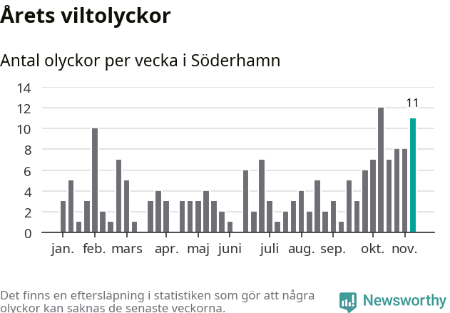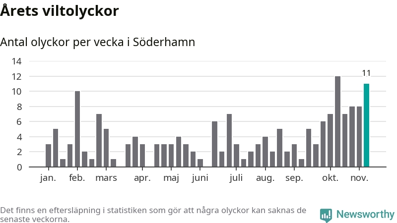 Elva olyckor på en enda vecka är också ovanligt många. Bara fem gånger tidigare sedan 2015 har det skett