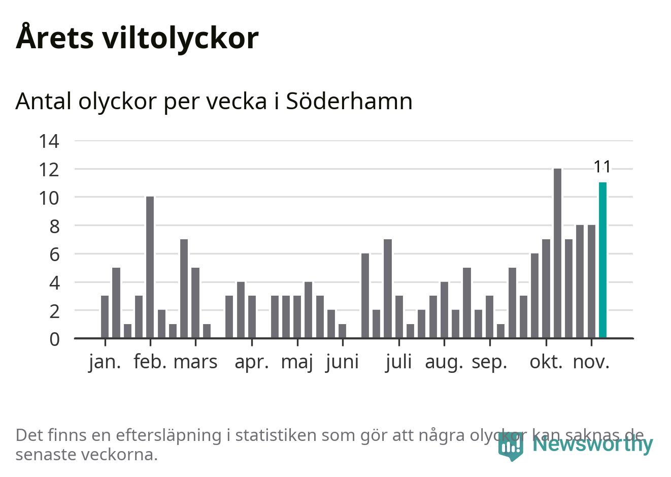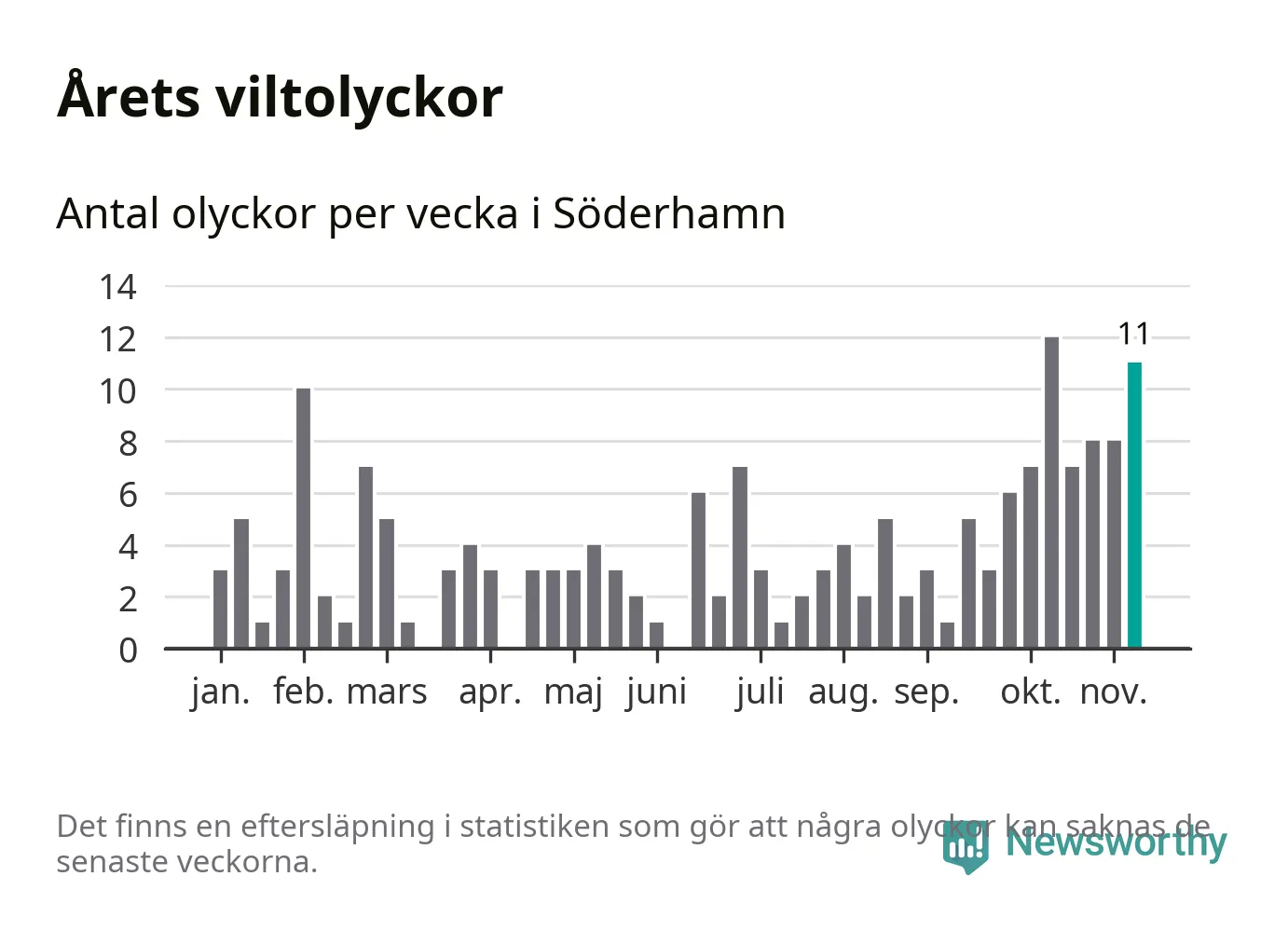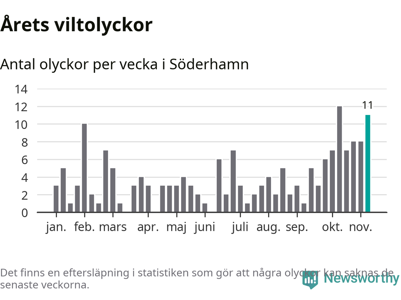 Elva olyckor på en enda vecka är också ovanligt många. Bara fem gånger tidigare sedan 2015 har det skett