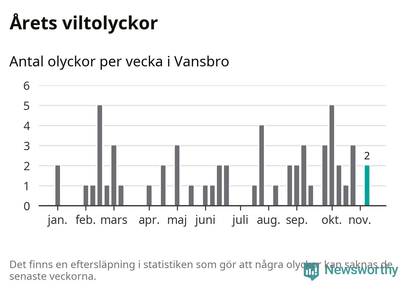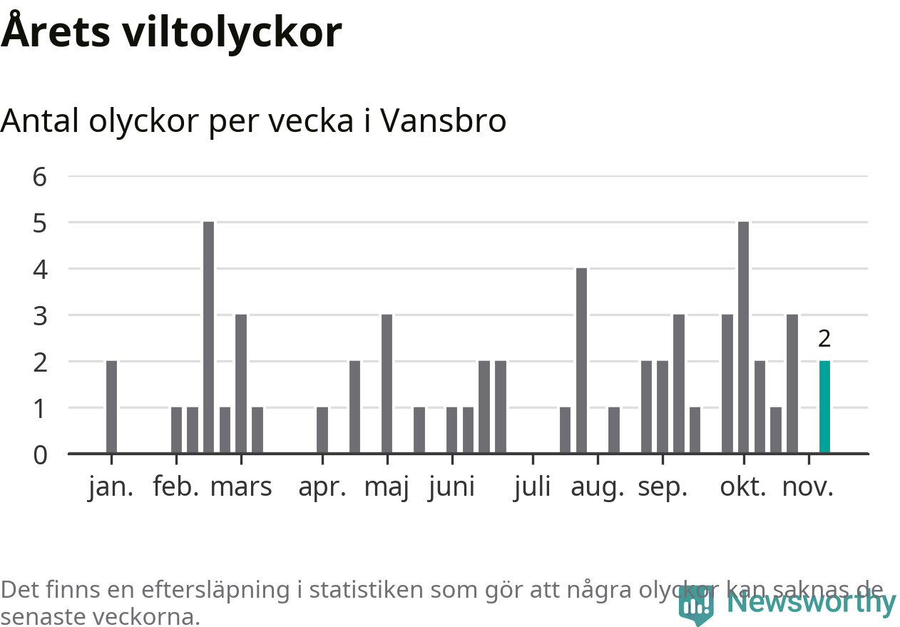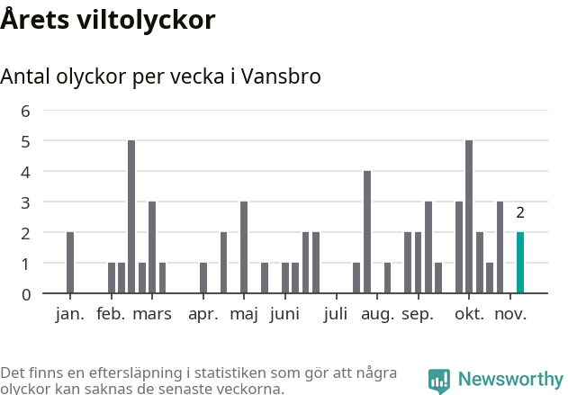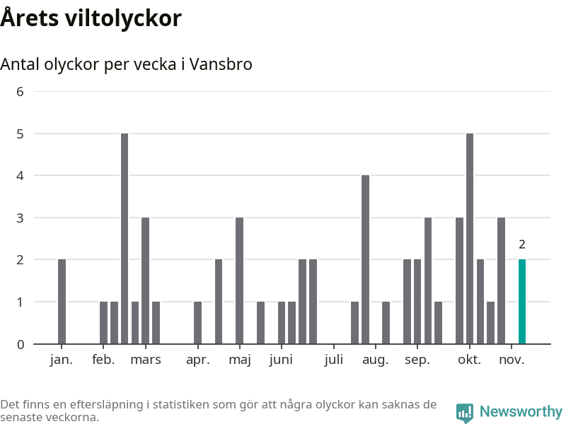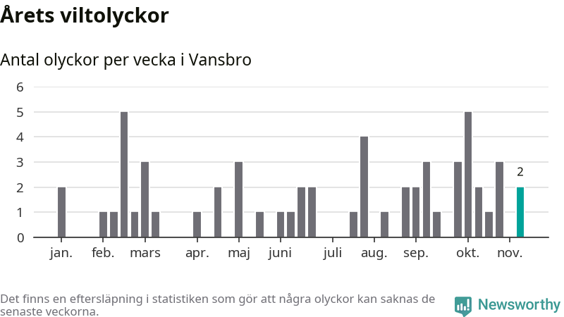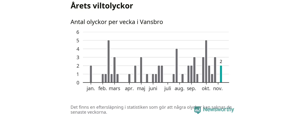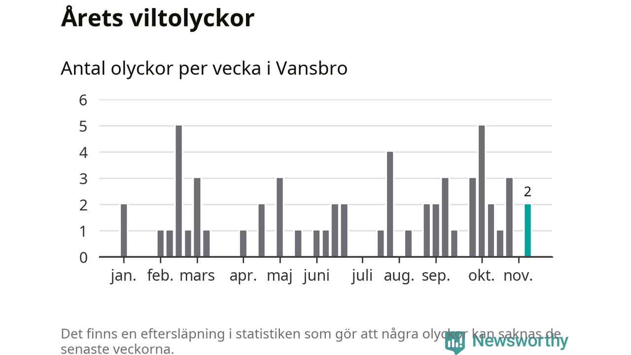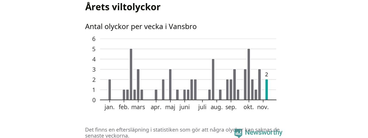 Hittills har två viltolyckor rapporterats in i Vansbro kommun från vecka 46. Se listan här.