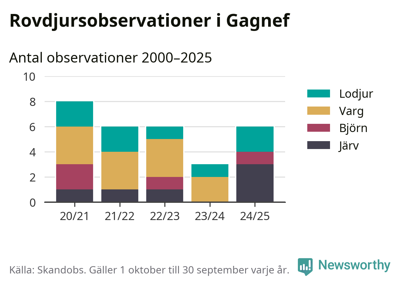 Källa: Skandobs. Observationer mellan 1 oktober 2024 och 30 september 2025.