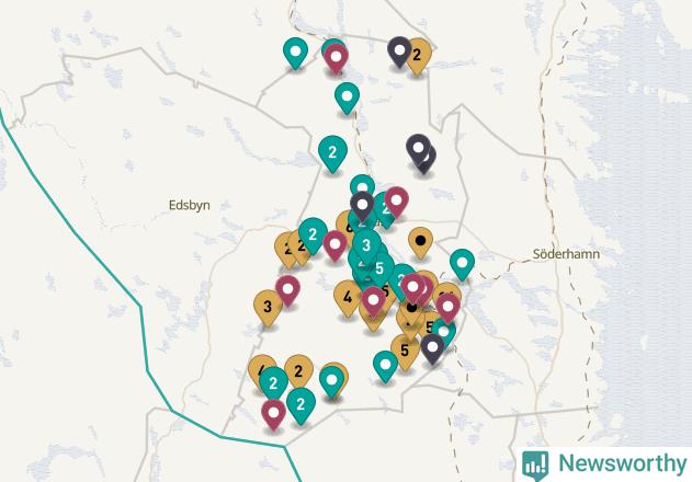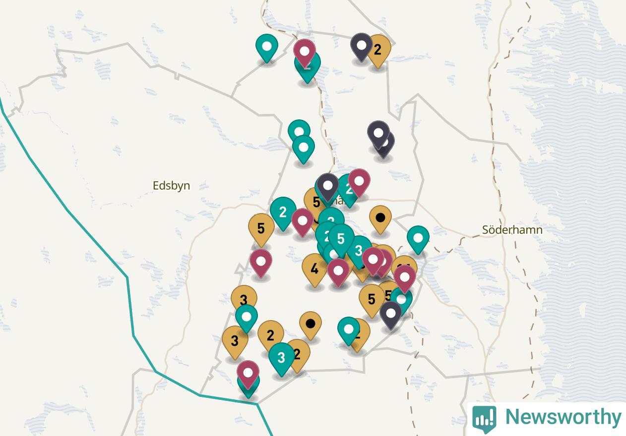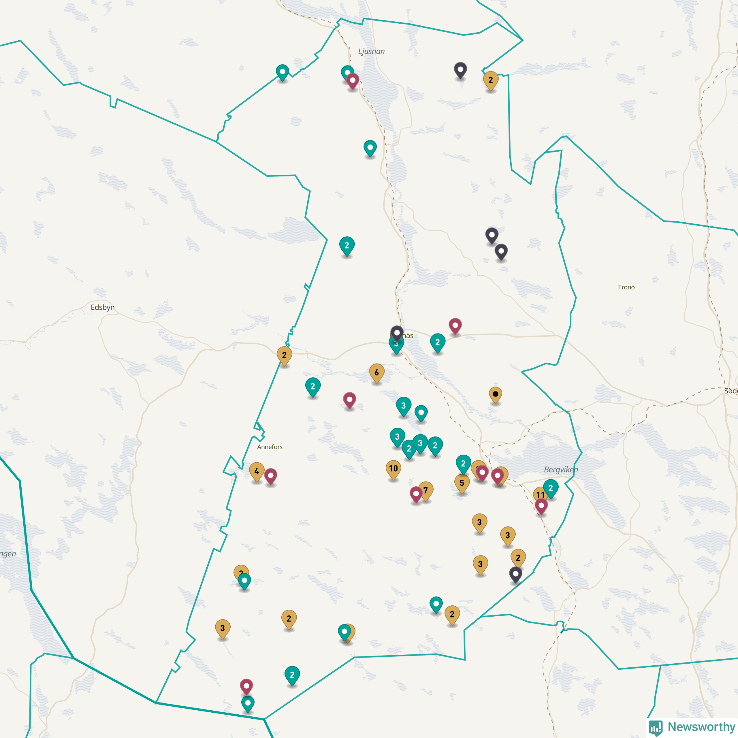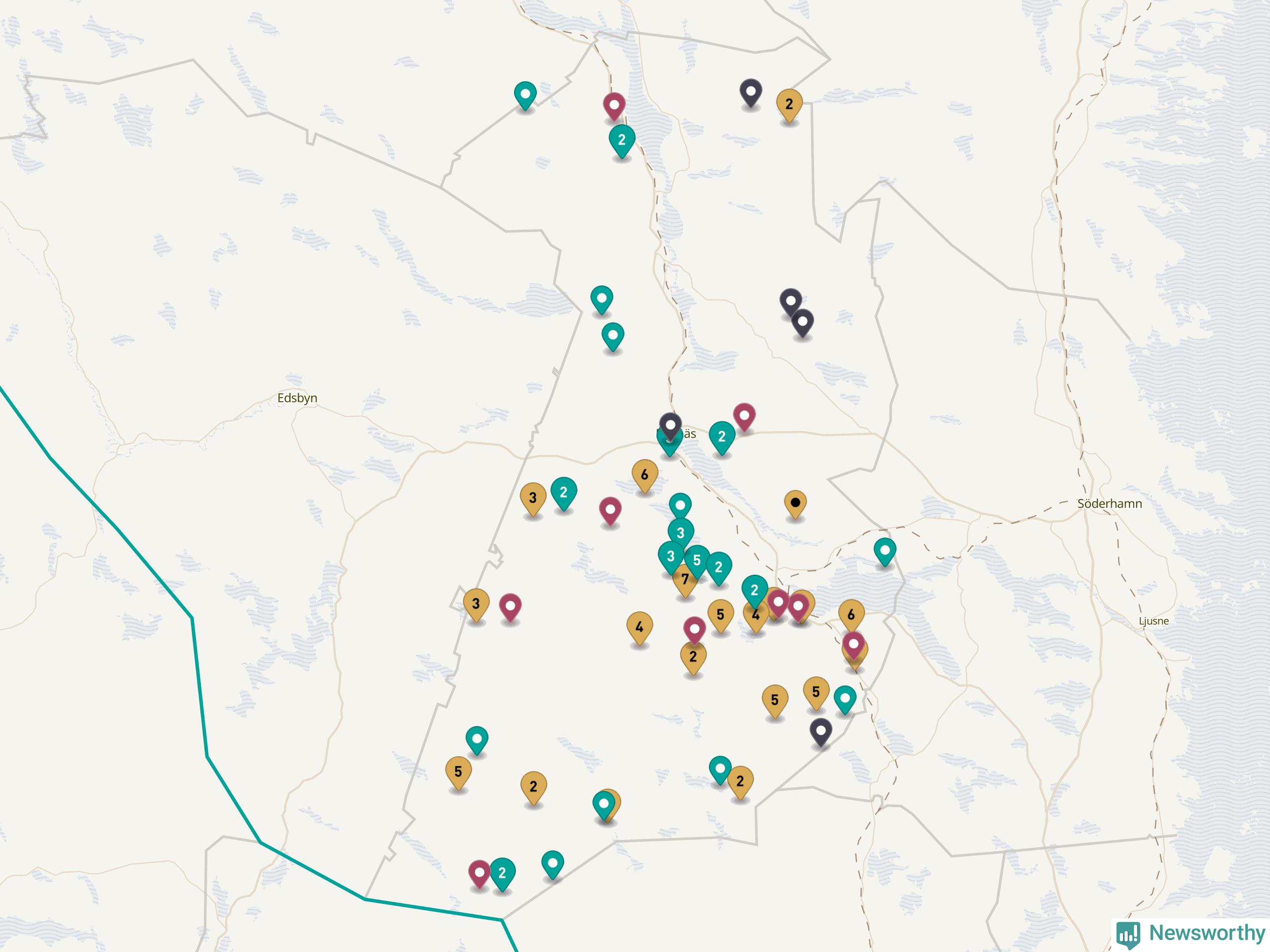 | Bollnäs | 36 (+20) | 83 (−48) | 9 (−6) | 5 (−4) |