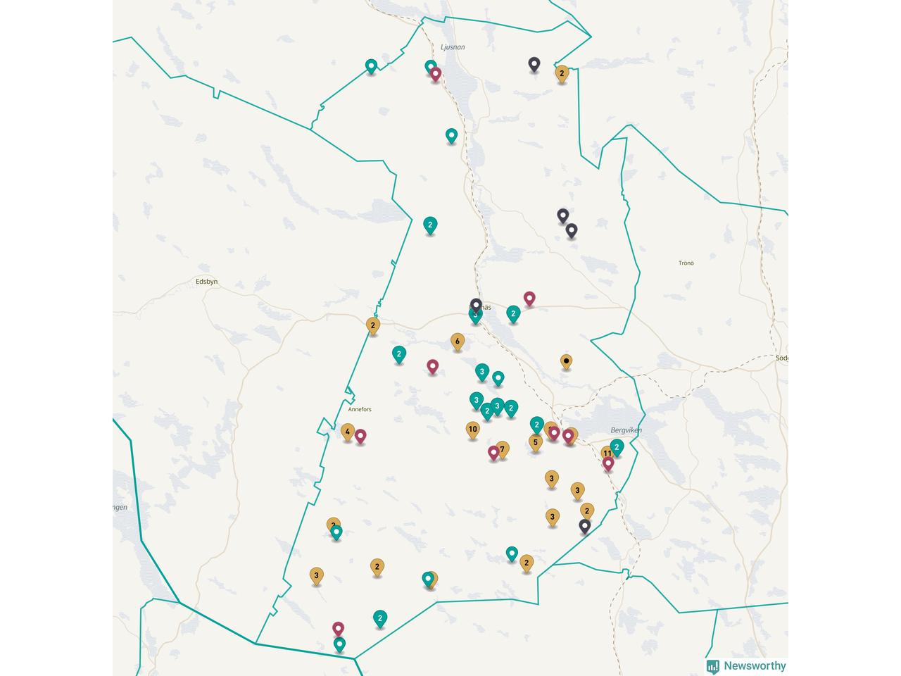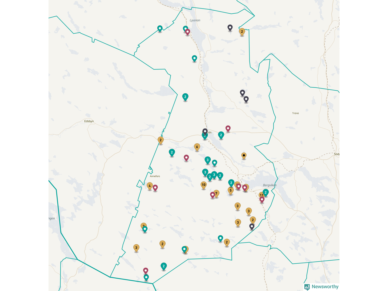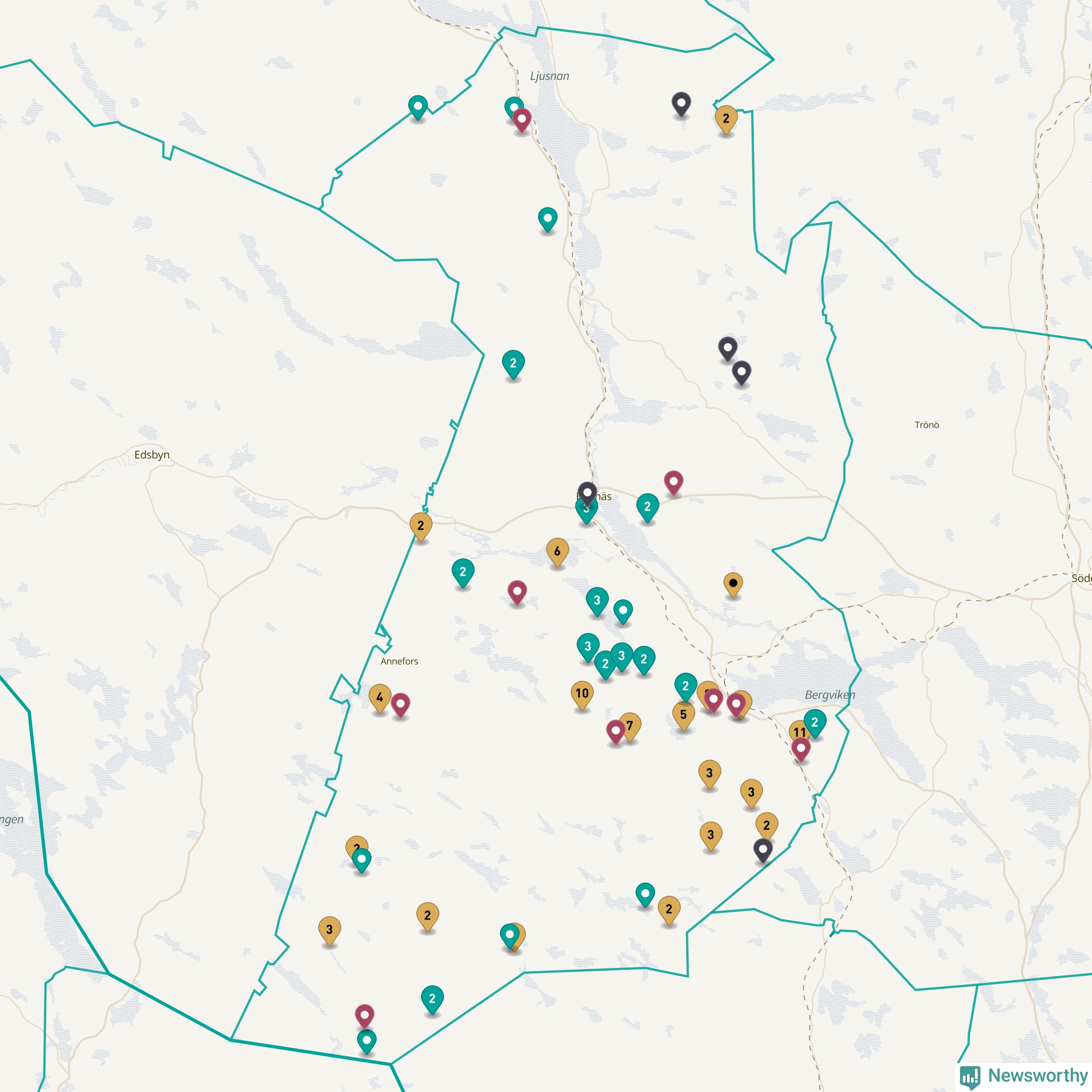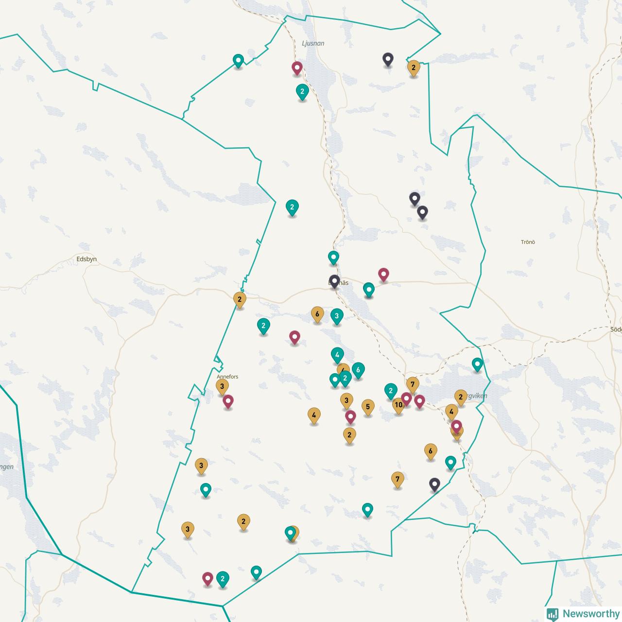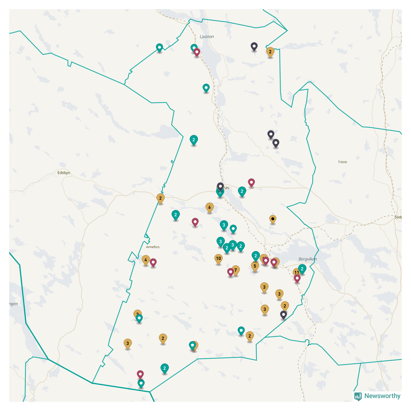 | Nordanstig | 13 (−1) | 0 (−11) | 3 (+3) | 11 (+5) |