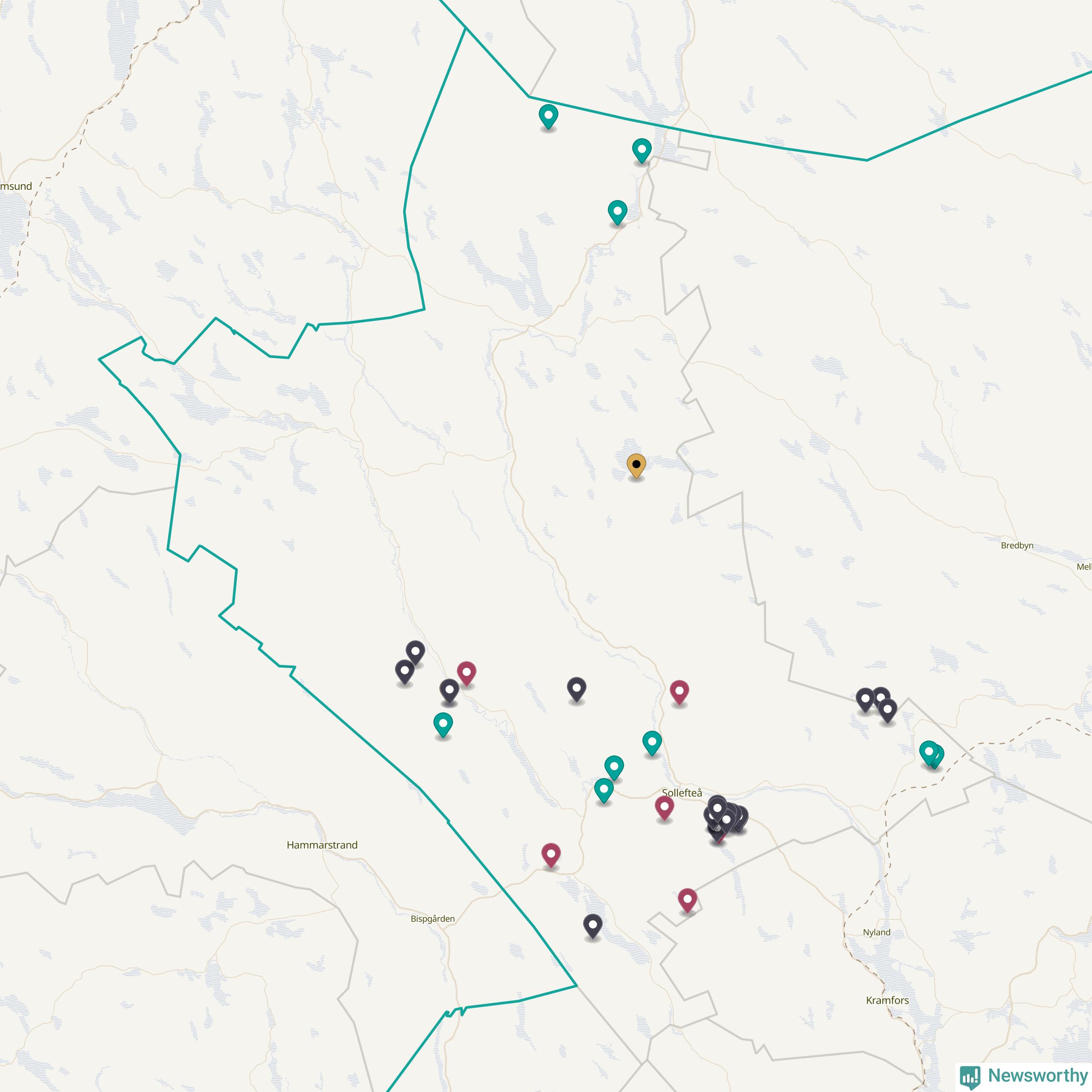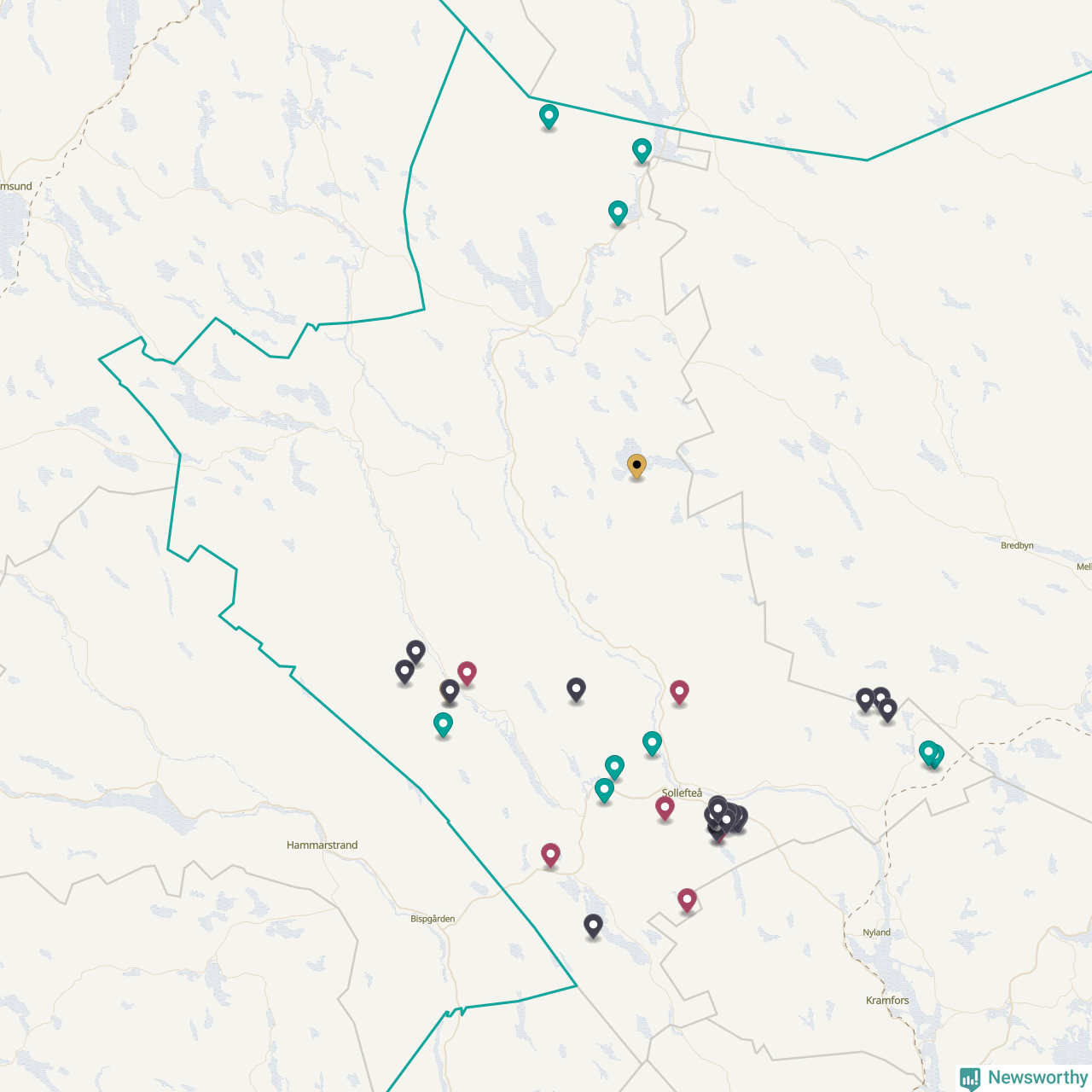 Lodjur har rapporterats tio gånger det senaste året i Sollefteå, vilket är sju färre observationer än året innan. Av observationerna har fyra bekräftats av länsstyrelsen. Även björn och varg har rapporterats i kommunen det senaste året. En av björnobservationerna och två av vargobservationerna har bekräftats av länsstyrelsen.