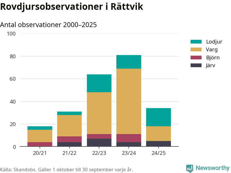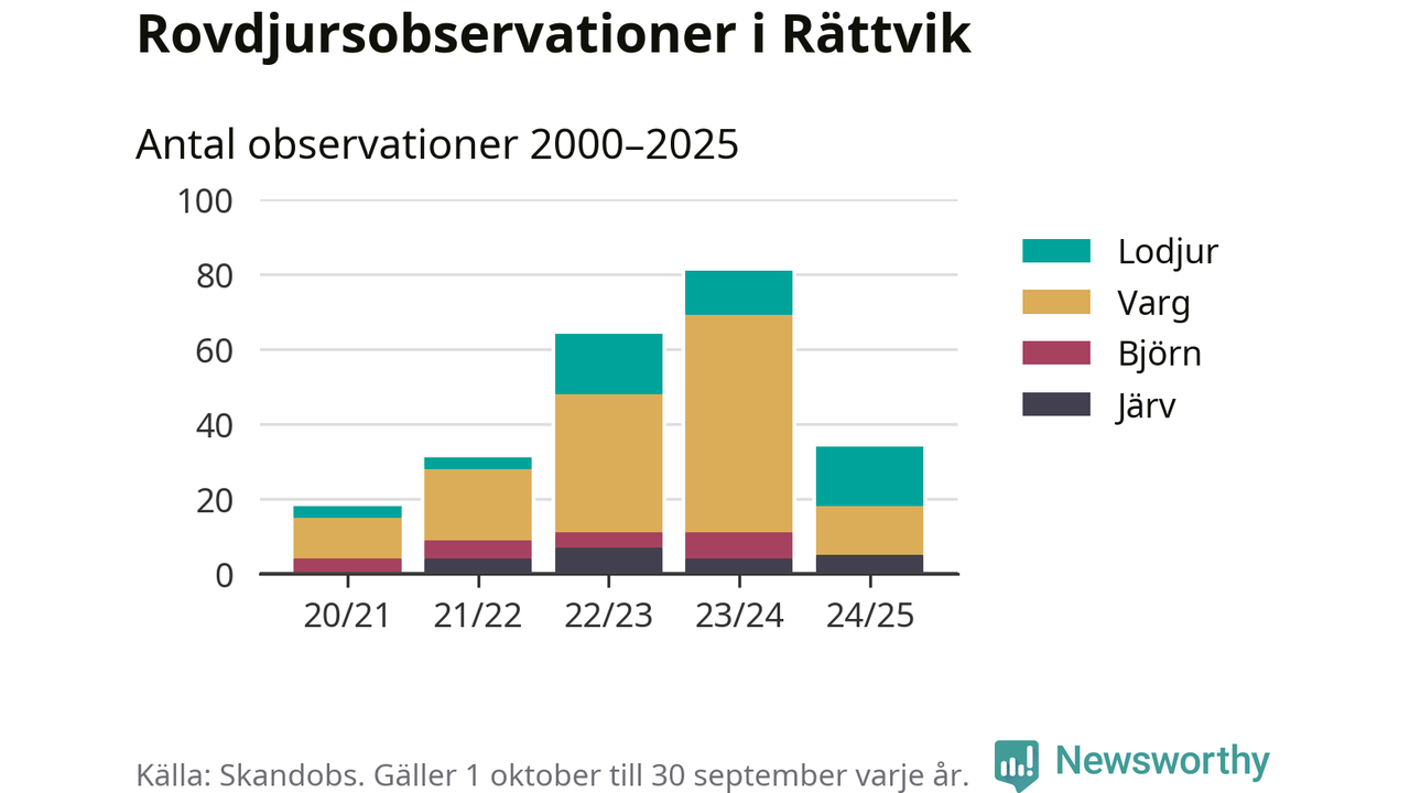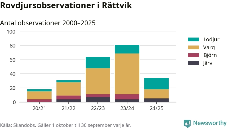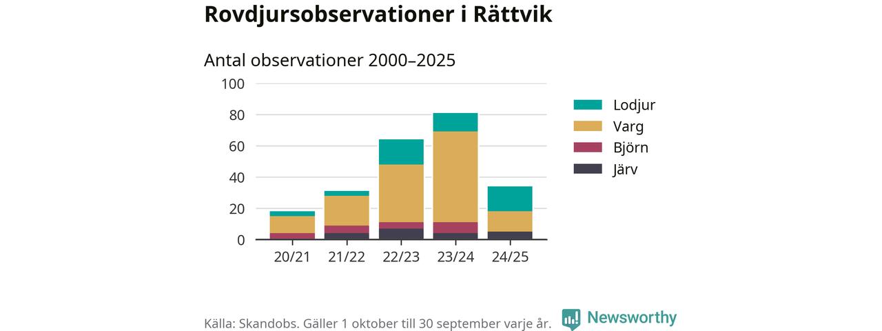 Där kan vem som helst rapportera sina observationer av de stora rovdjuren björn, varg, lodjur och järv. Mellan 1 oktober 2024 och 30 september i år har knappt 10 000 observationer registrerats i landet. Det kan vara synobservationer, foton, spår, spillning, döda bytesdjur eller andra tecken på rovdjursförekomst. I Rättvik handlar det om totalt 34 observationer av lodjur, varg eller järv.