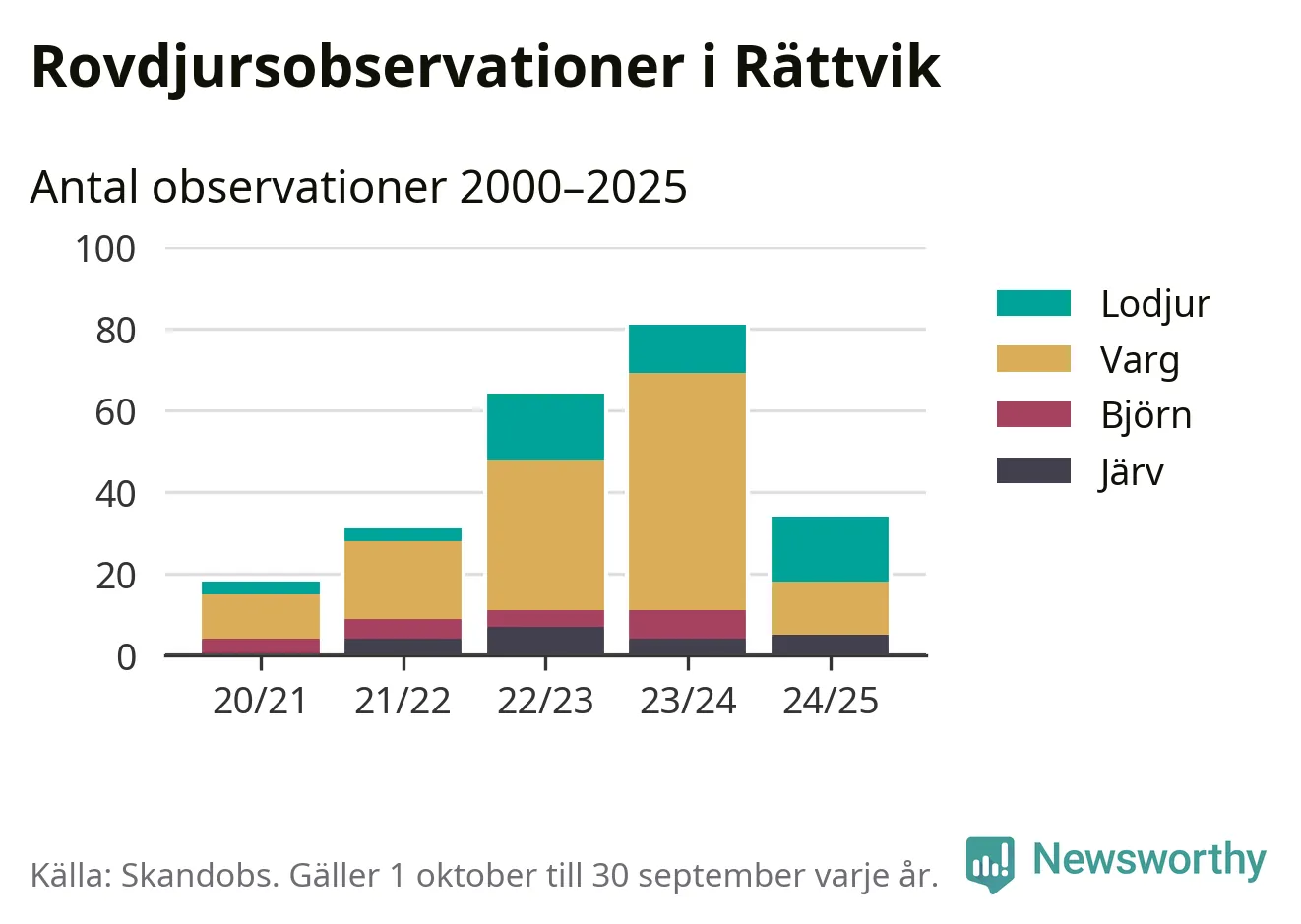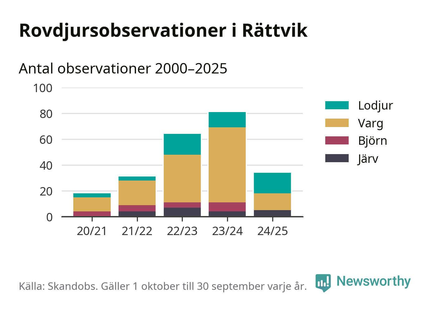 Källa: Skandobs. Observationer mellan 1 oktober 2024 och 30 september 2025.