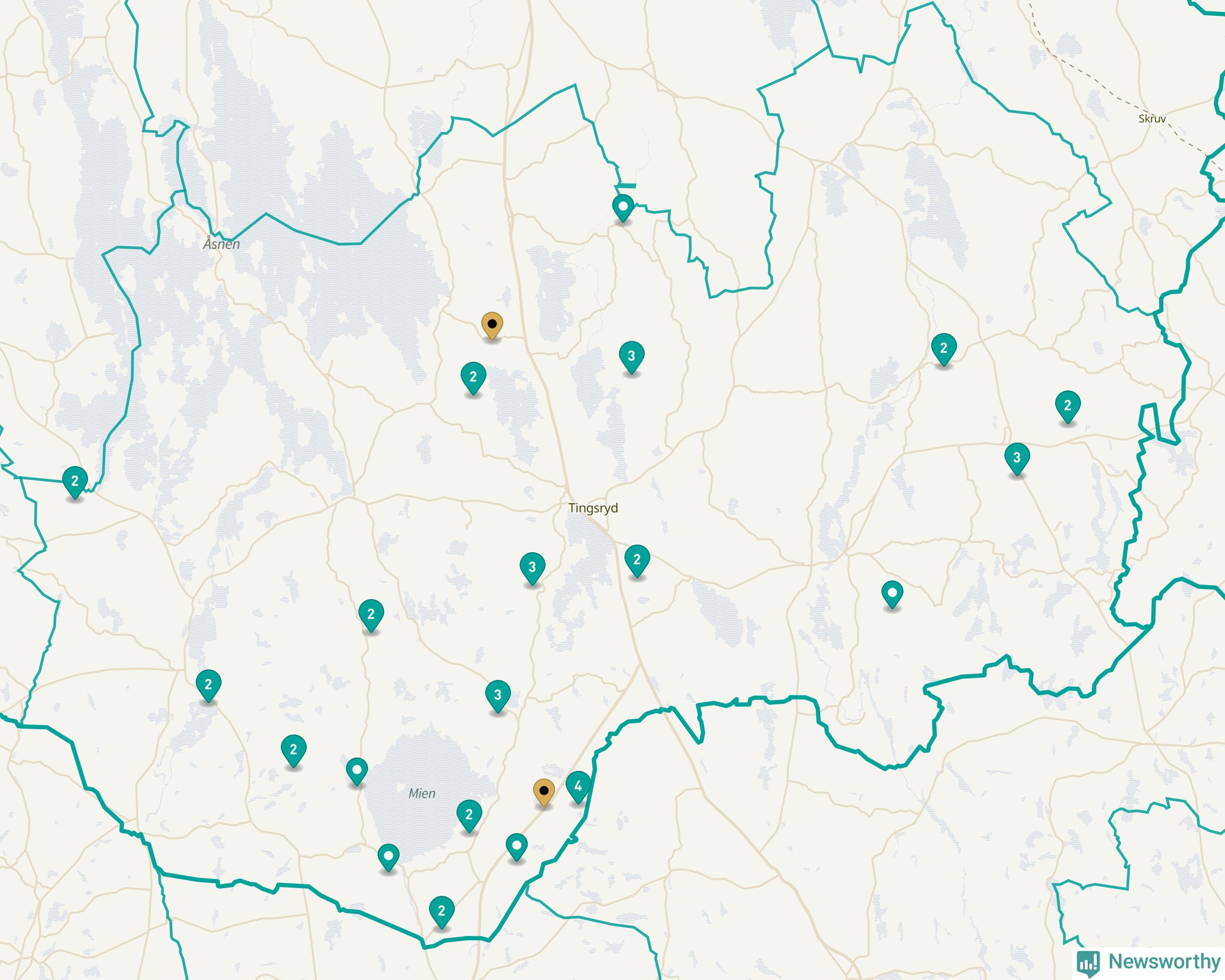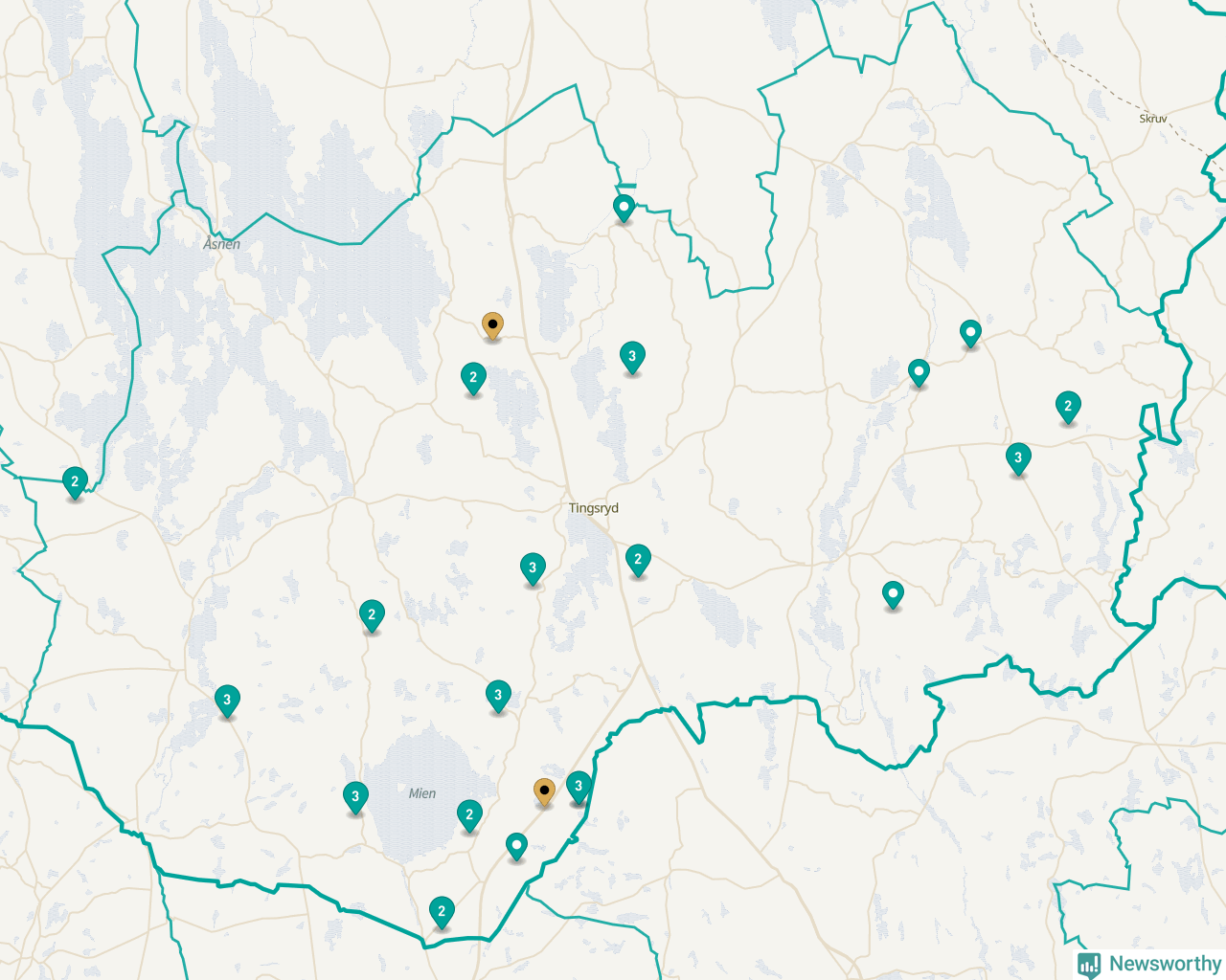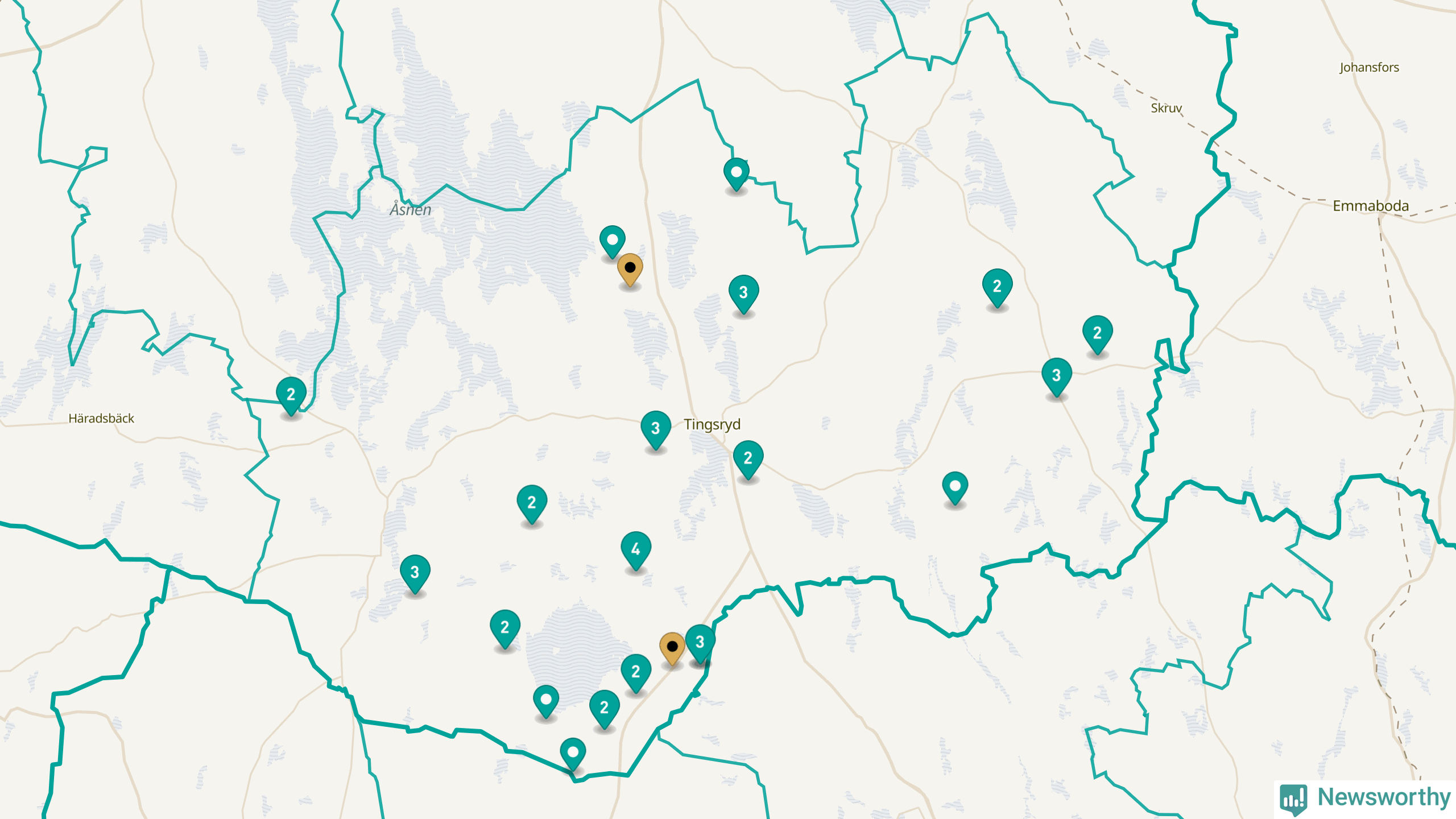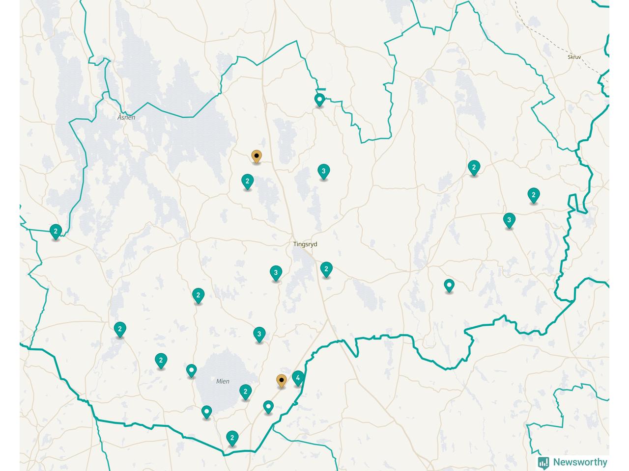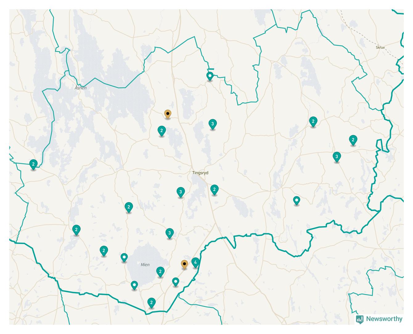 Varg har rapporterats två gånger det senaste året i Tingsryd, vilket är sju färre observationer än året innan. Ingen av observationerna har bekräftats av länsstyrelsen.