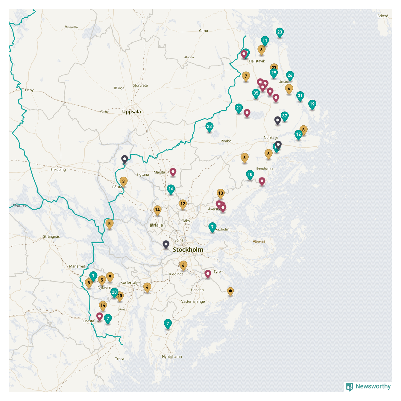 Newsworthy är en nyhetssajt som gör lokal journalistik baserat på data. Vi är datajournalister som analyserar och tolkar världen på siffror, snarare än tyckande.