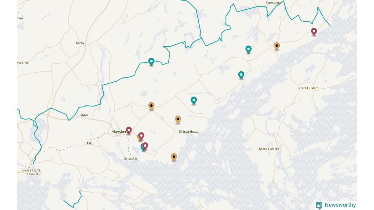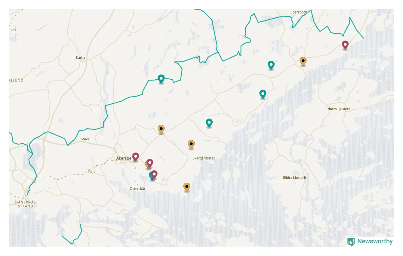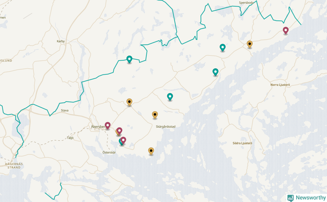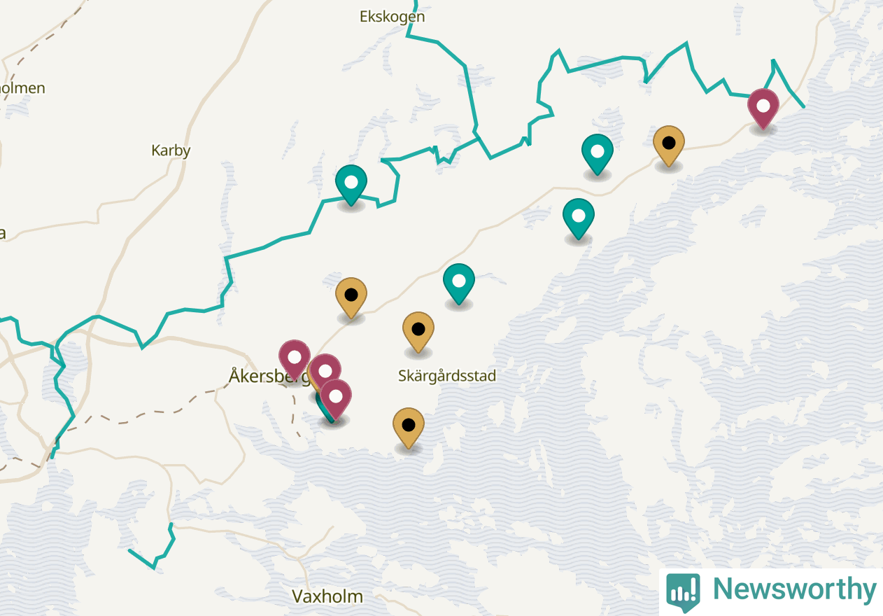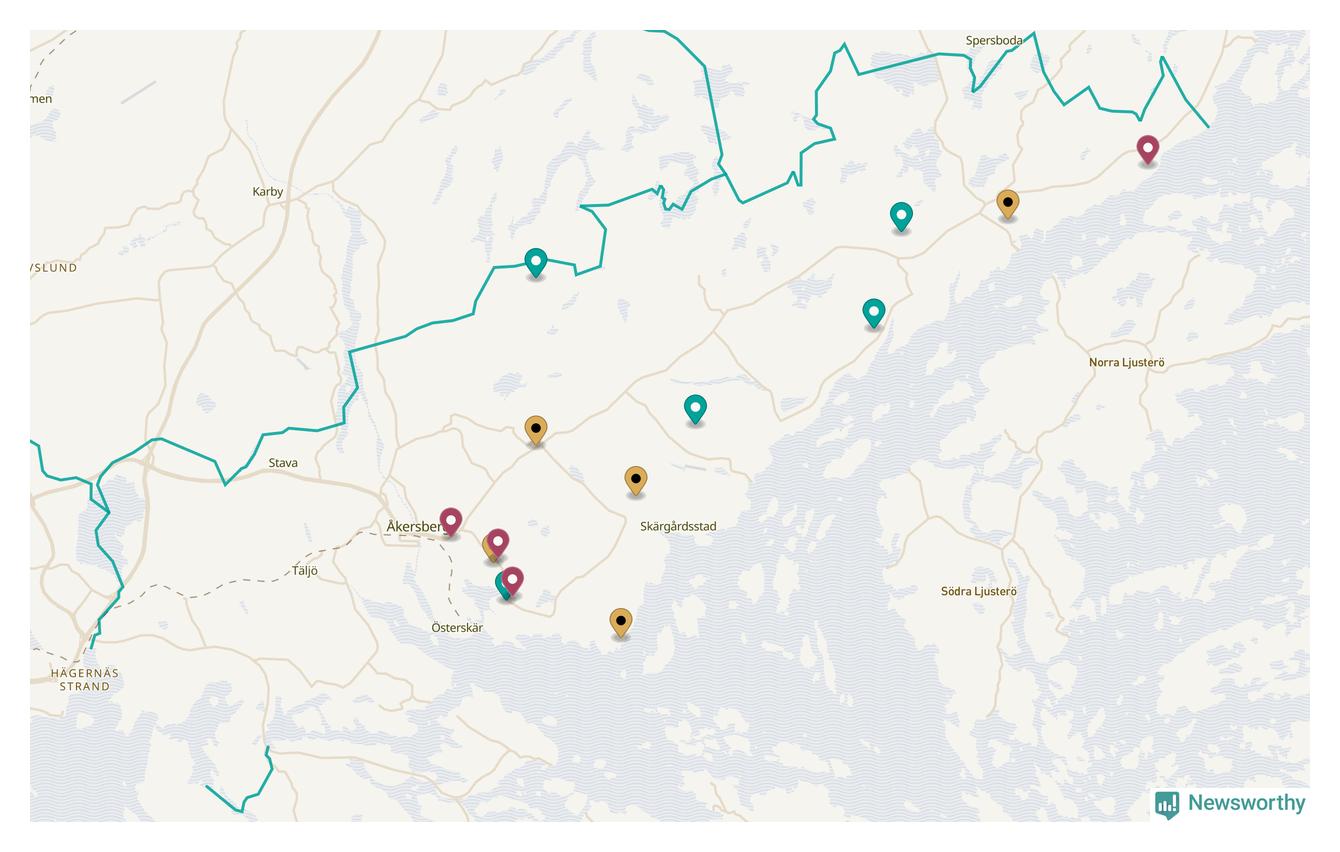 | Norrtälje | 303 (+54) | 65 (−37) | 7 (−20) | 2 (−1) |