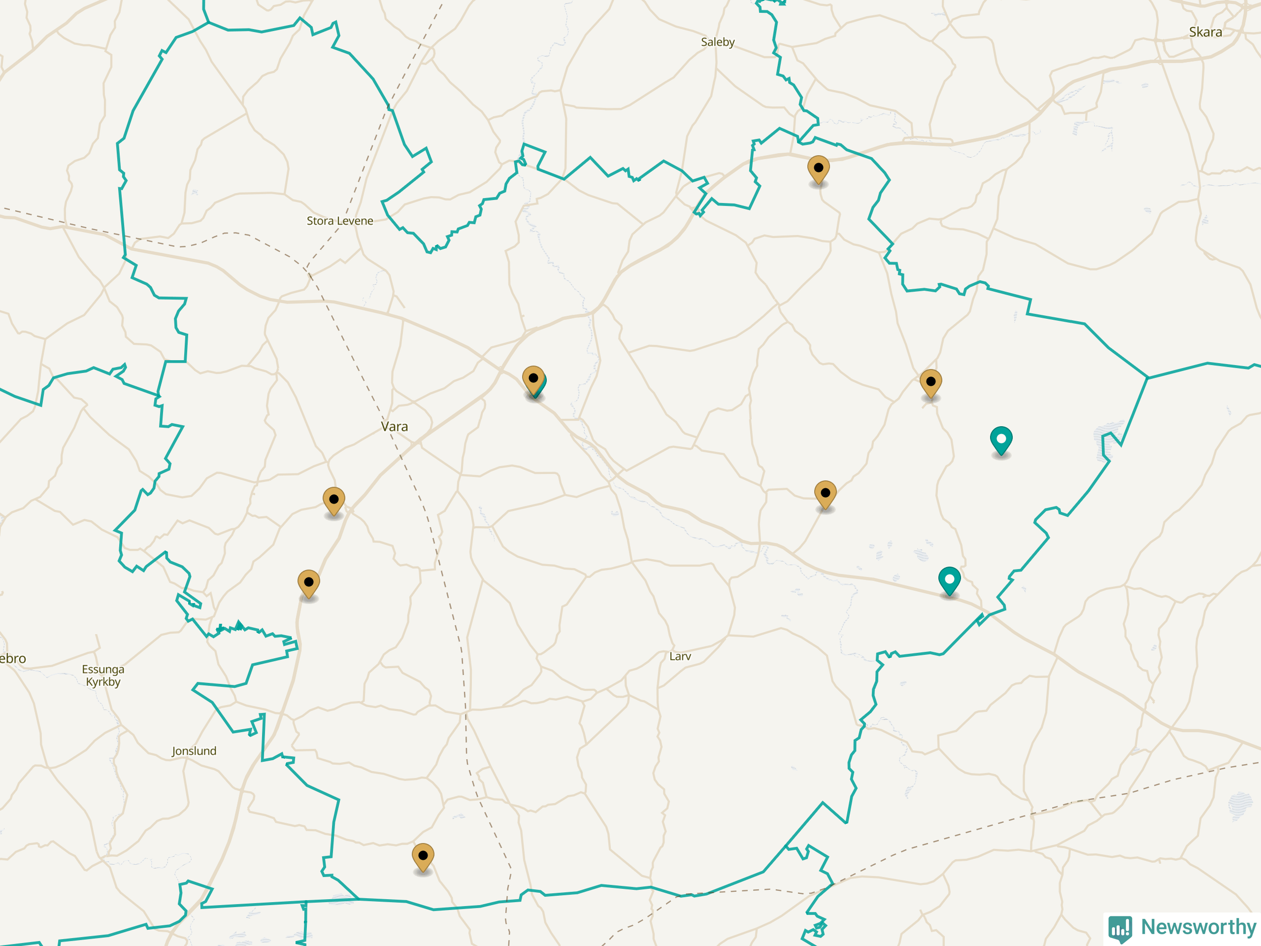 Karta över Vara kommun