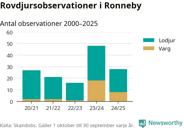 Källa: Skandobs. Observationer mellan 1 oktober 2024 och 30 september 2025.