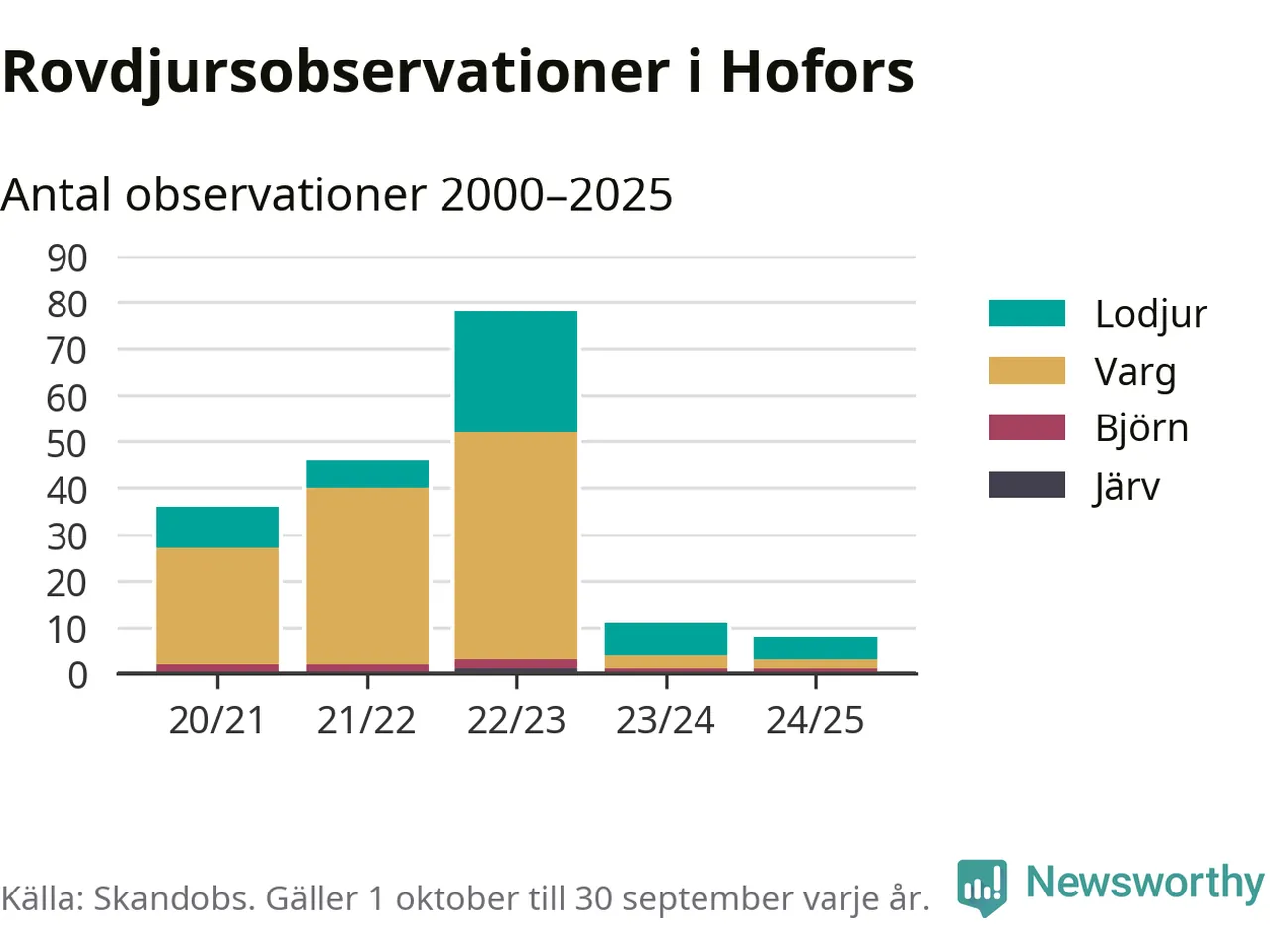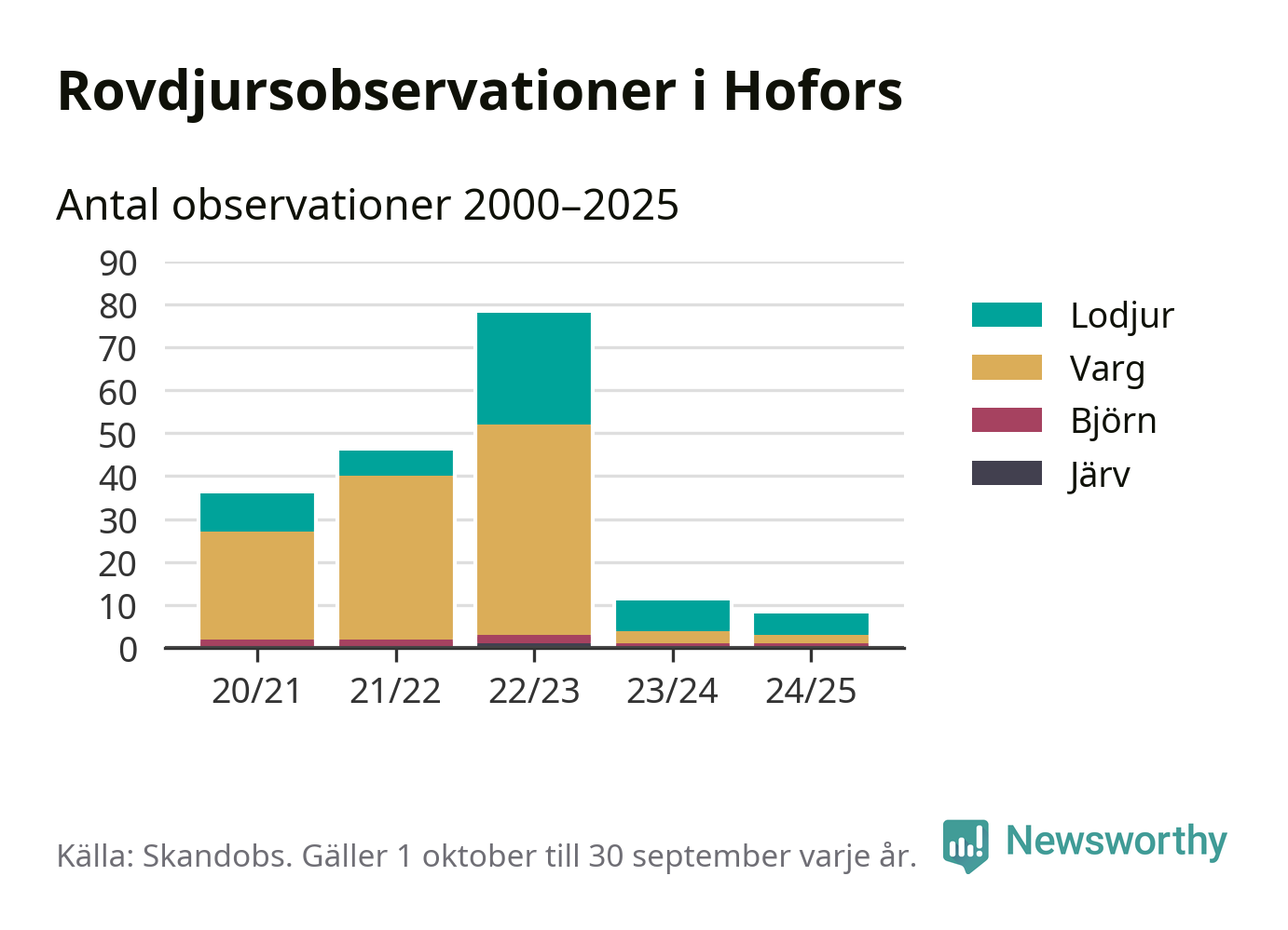 Källa: Skandobs. Observationer mellan 1 oktober 2024 och 30 september 2025.