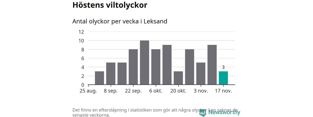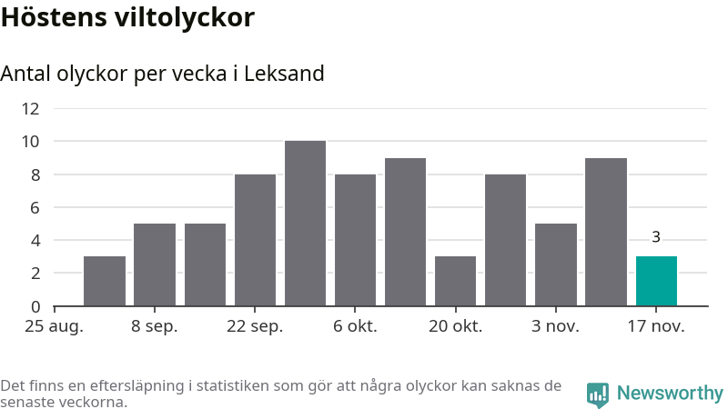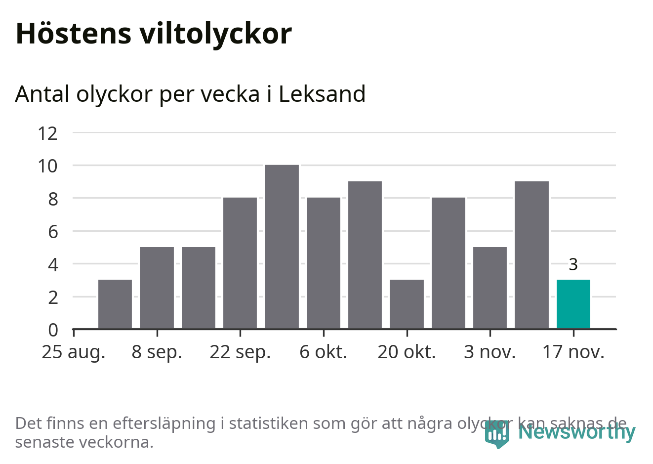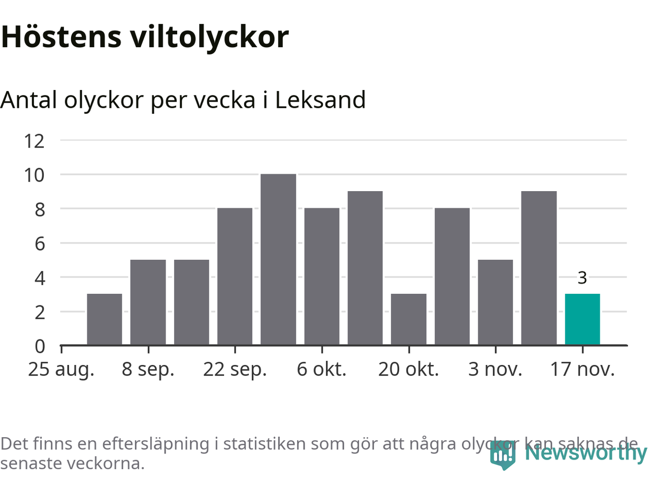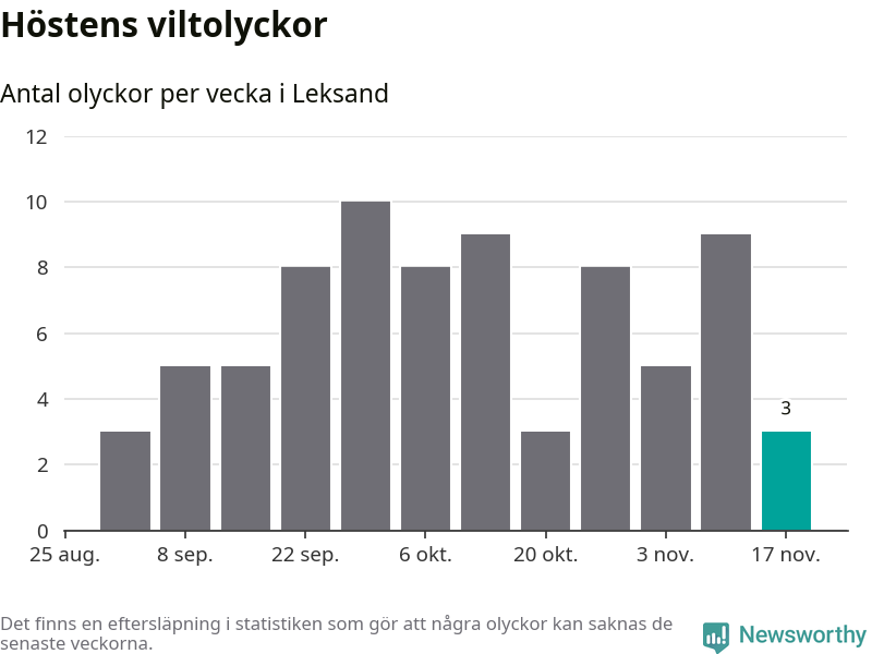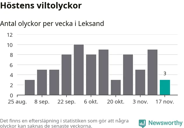 Hittills har tre viltolyckor rapporterats in i Leksands kommun från vecka 47. Se listan här.